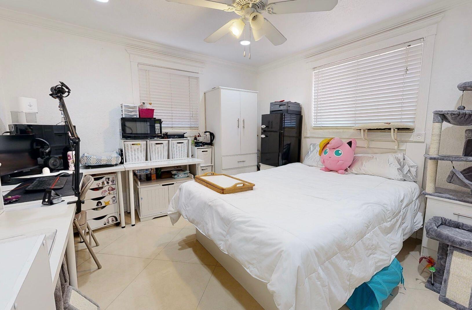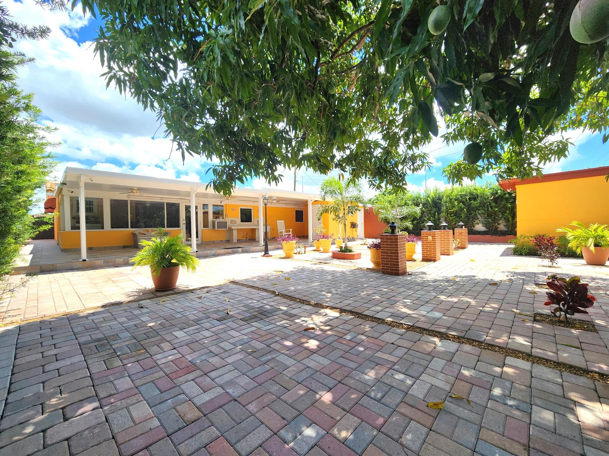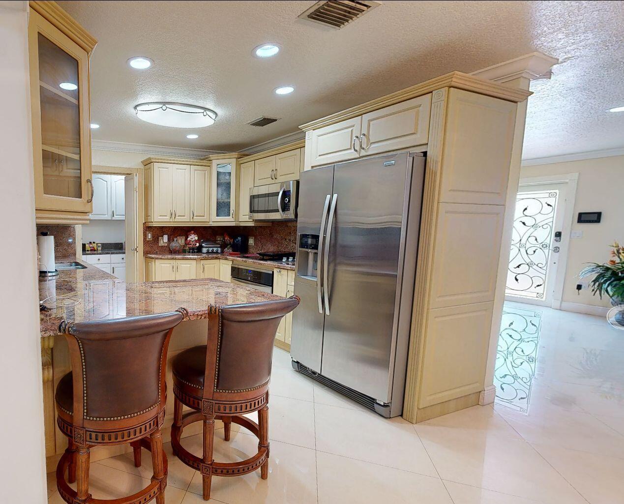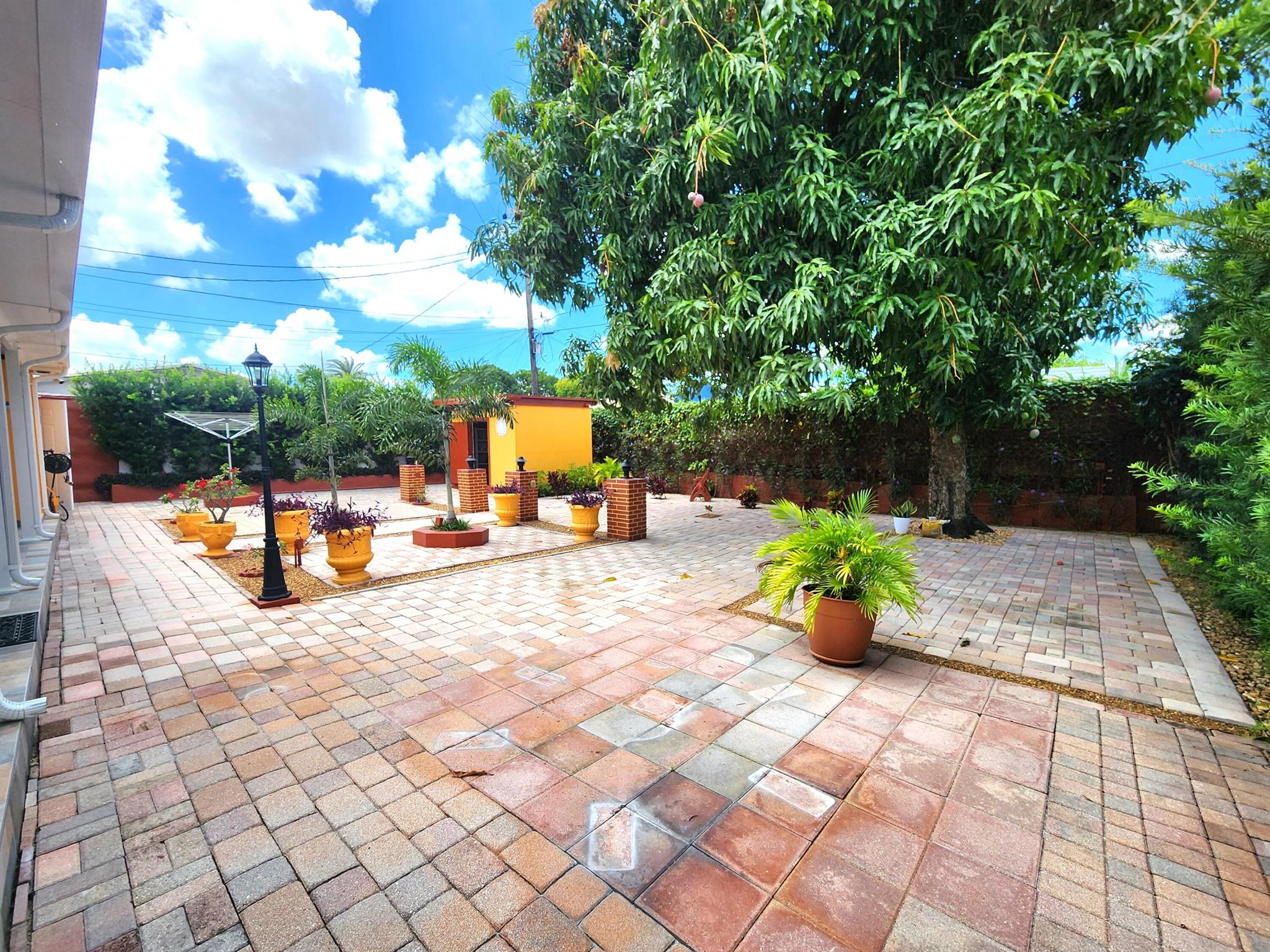 Over 8400 sqft Lot - Beautiful Bright & Airy 4-bedroom, 3.5 full bath Ranch Style home! Centrally located, easy commute to shopping, restaurants, & highways. This lovely home features a large golden oak kitchen cabinetry & earth tones granite countertop w/ stainless steel appliances with open pass through window to Florida room. Large marble-look tile flooring throughout & spacious attic. Hurricane impact windows, A/C 2017, Tankless W/Heater, Updated GE electrical panel, Front loader W/D. 2 utility houses aside of additional storage space. Large, covered patio terrace w/ceiling fans & a fully enclosed private, wooden fenced in backyard for entertainment w/friends & family. Includes 16 turbo HD surveillance cameras surrounding premise, entry intercommunication camera and keyless smart lock.