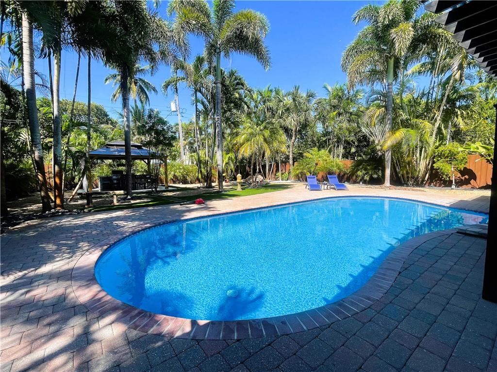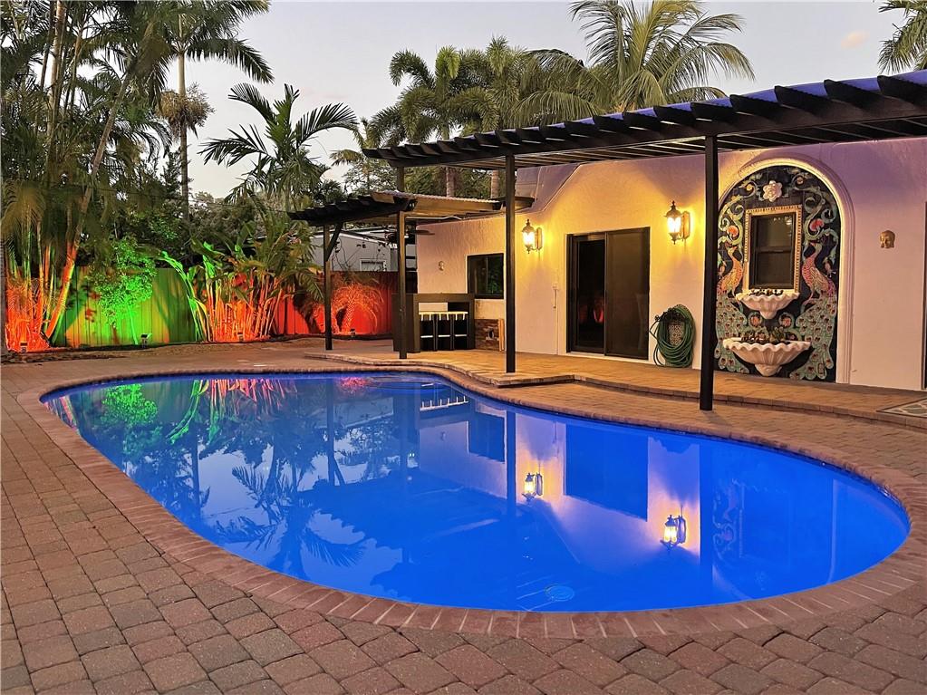 A unique opportunity to own this Poinsettia Height Oasis ideally located 2,5 miles from the beach: The backyard is lush with professional-design landscaping, allowing for the ultimate privacy. The serene lot is completely fenced in, with plenty of entertainment space and open areas to enjoy the renovated heated 35' long saltwater Swimming Pool, BBQ Grill Island, and Outdoor Dining. Brand new European soundproof Insulated Hurricane Windows & Doors. Custom Surround Outdoor Lighting. Each room welcomes light in, with original medieval wooden doors. Quartz kitchen countertops and new appliances. You’ll feel like you’re on vacation every day! Great income potential for a Short Term Rental! Minutes away from Dining, Shopping, George English Park, Boating, and Nightlife. Come see for yourself.