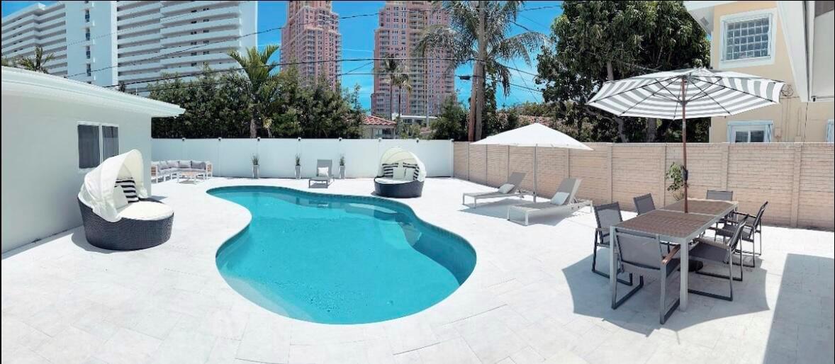 Stunning 4 bedroom, 4 bath home with private pool just 2 bocks from the beach! The property has an upgraded kitchen with quartz countertops, stainless steel appliances and modern cabinetry. Marble tile flooring throughout. The open concept living area is perfect for entertaining, while the private bedrooms offer a peaceful retreat. Step outside to the backyard complete with sparkling pool and plenty of space for lounging and dining al fresco. With its unbeatable location just steps from the sand and surf, this home is the epitome of South Florida Living.