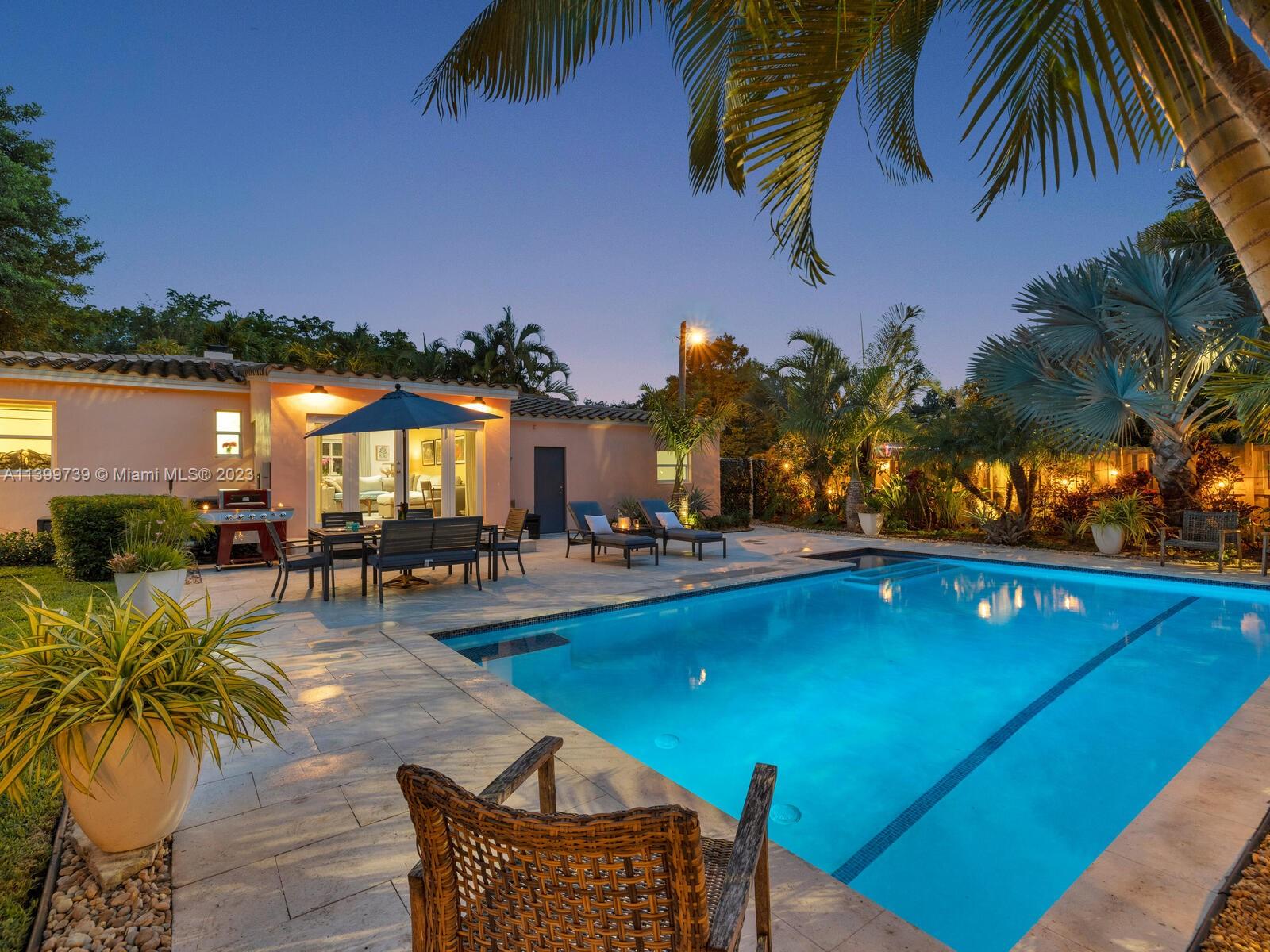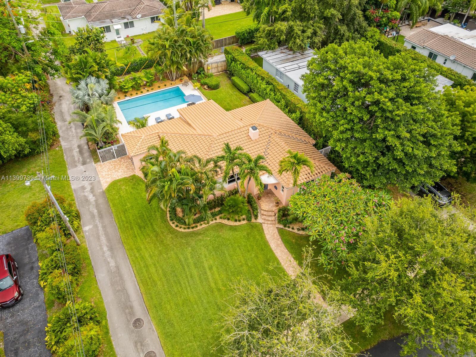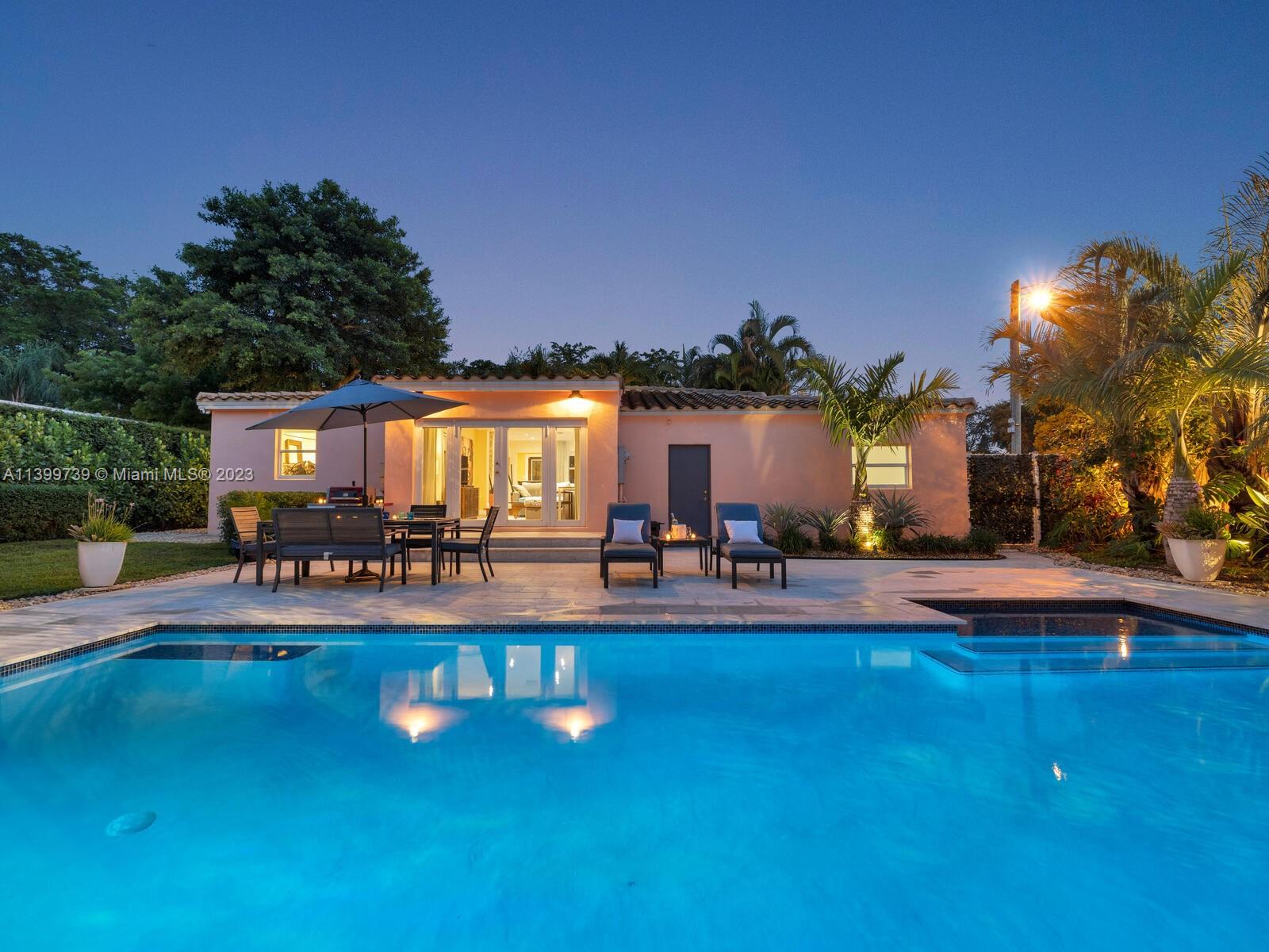 Welcome to Shores Casa Rosa, where everything is coming up roses in this nicely remodeled and updated pool home. Great open flow space with large, formal living and dining, updated kitchen and spacious media room with doors to the spectacular backyard. You’ll feel like you’re viewing the world through rose-tinted glasses when you marvel at the fabulous heated pool, large entertainment patio, and lush landscaping throughout— your own private oasis! Unwind in the lovely main ensuite retreat with updated bath, plus a guest wing with updated bath and two spacious guest rooms. All situated on a corner lot with a side alley garage entry (spacious one-car garage), new roof, new AC, impact windows-doors— in a non-flood zone, just a few blocks to the shops and restaurants of Downtown Miami Shores.