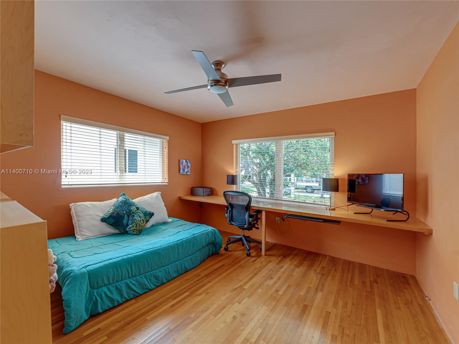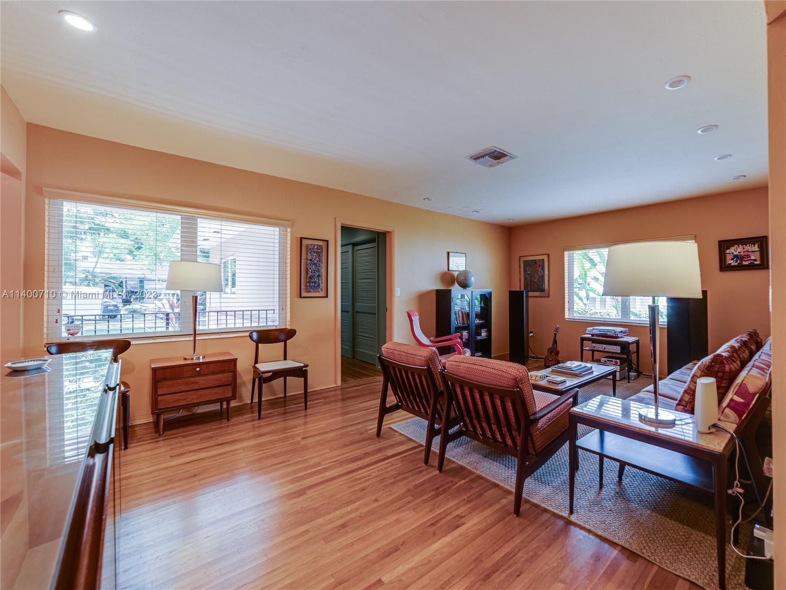 New Listing. Adorable 3 bedroom 2 bath home west of Le Jeune on a tree-lined street within walking distance to the Mile. Located in the Coral Gables Prep school district. Enter the courtyard to the covered porch then into a foyer with the living room. Master bedroom in front. The kitchen opens to the dining room. Two bedrooms and a hall bath beyond. Hardwood floors throughout. Spacious family room with wrap-around porch in the rear and fenced-in yard. Oversized garage. Impact windows and doors. 50 solar panels on the roof provide significant savings on electricity bills. 1,861 adj. sq. ft on a 6,000 ft. lot. The seller would like to close later or lease back through September. Full price or higher expected.
