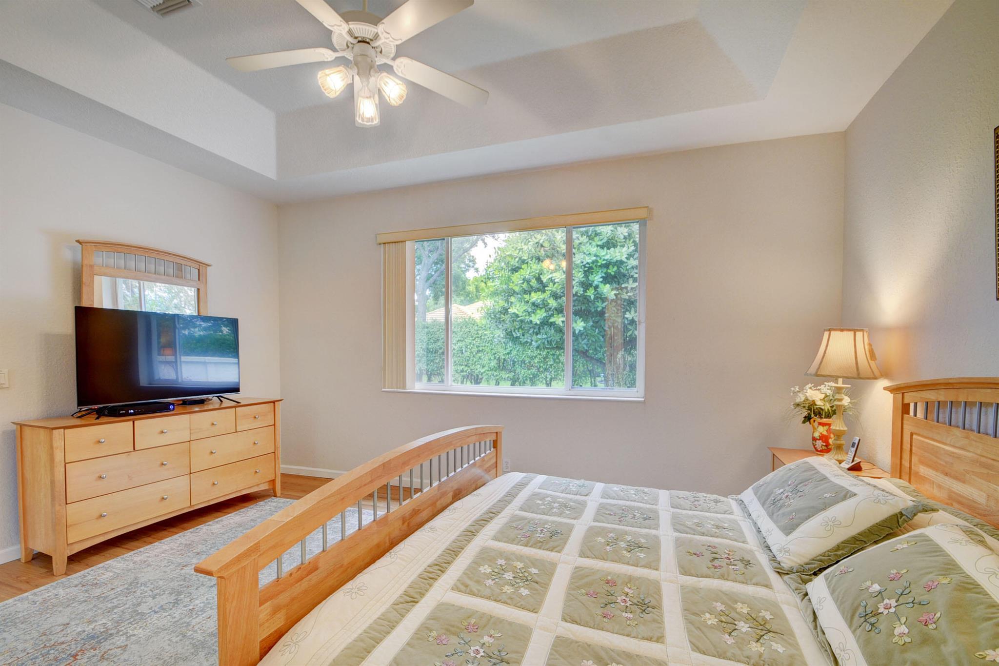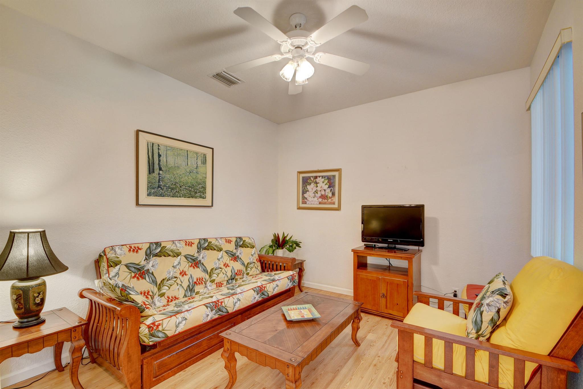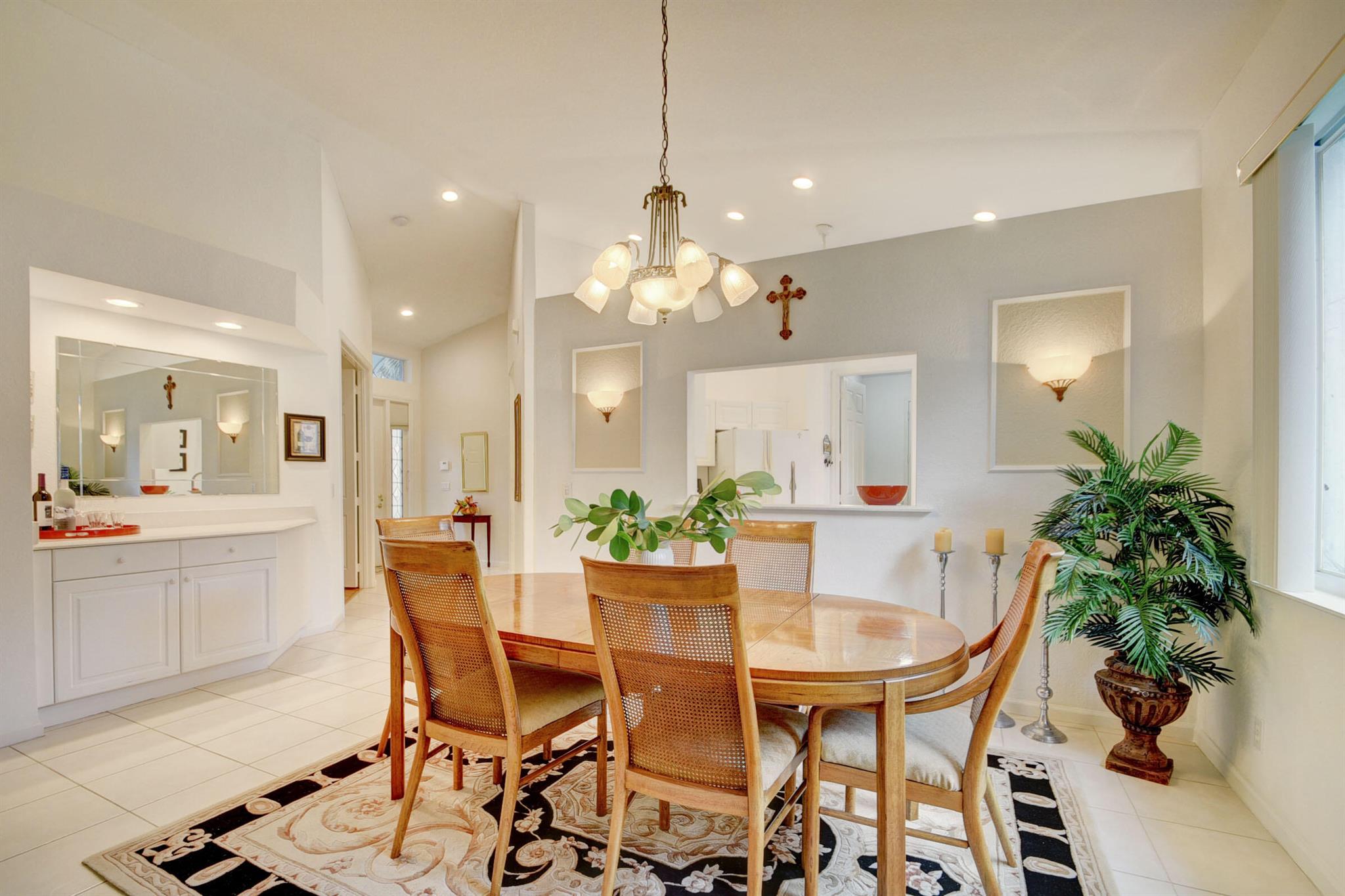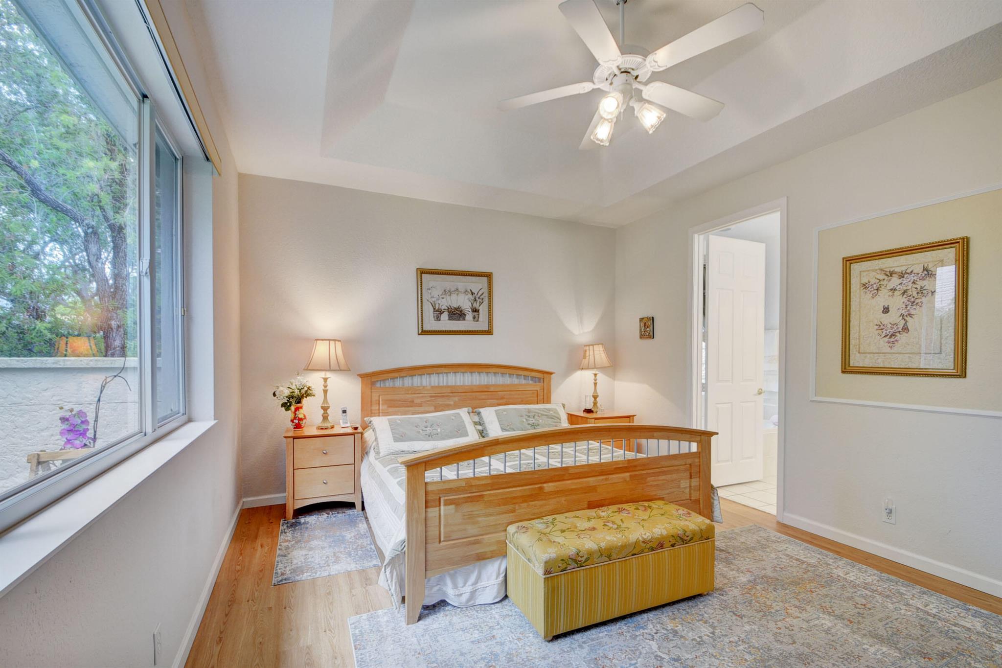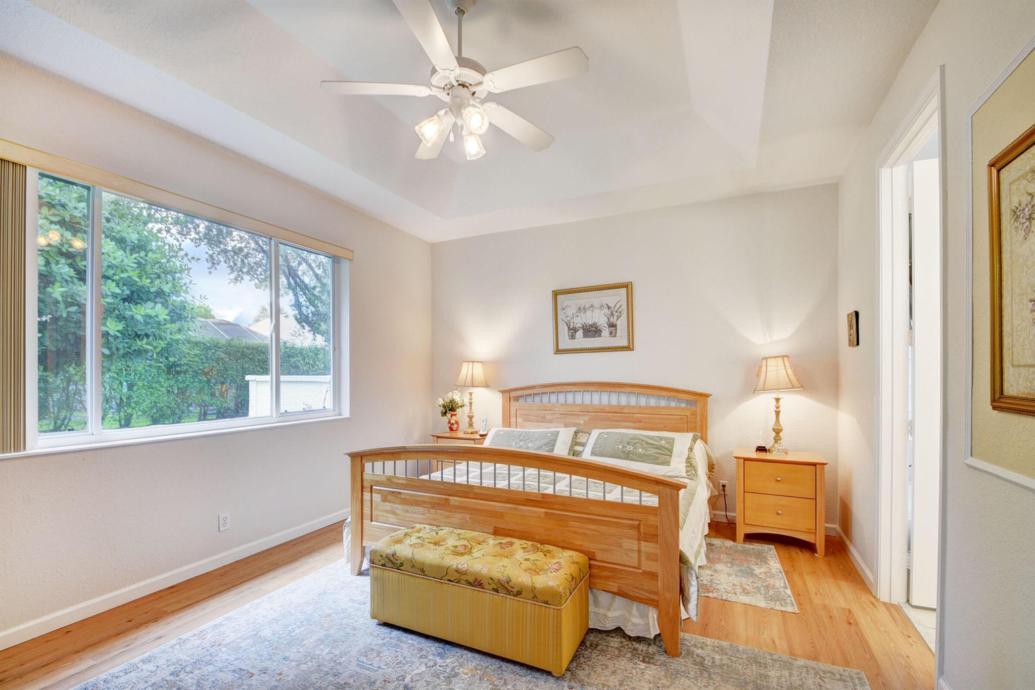 This is a perfect home to retire or down size in. Very active community with Club house, Pool, Tennis and Fitness center with activities, and community gatherings. Pride of ownership is found in this home. Meticulously cared for, well maintained by the owners is displayed throughout. Generous floor plan, interior laundry room, and private back yard and garden area. Inside offers newer kitchen counters, & interior paint, that bring out a bright and light space in the kitchen which hosts a casual eat in nook w/ table & chairs. Tiled living area & wood flooring in the bedrooms. This 3/2 floorplan offers a generous Master Suite highlighted by a coffer ceiling with a large walk in closet & ensuite bath & is set apart with serene green garden view. See supplement for more info.