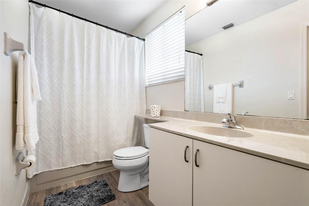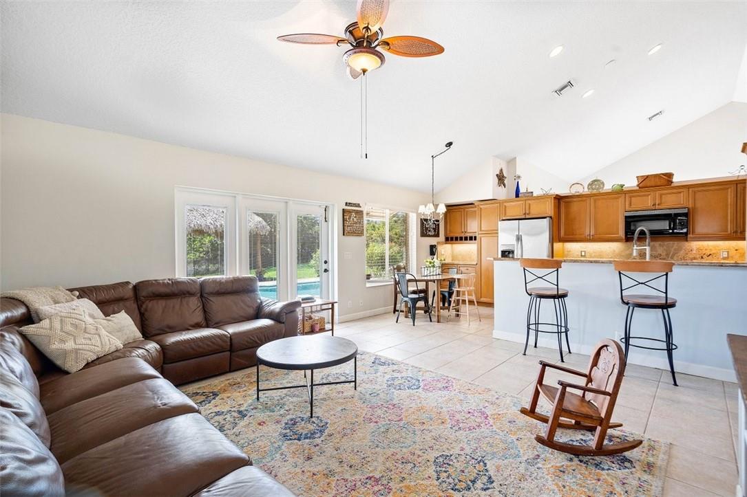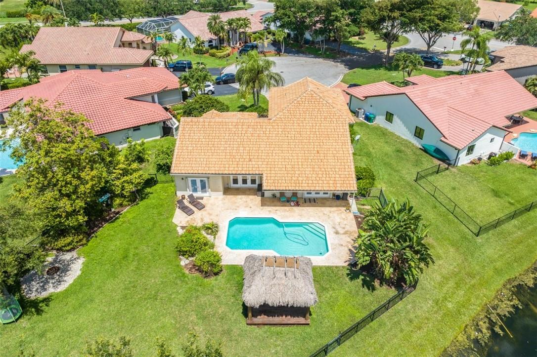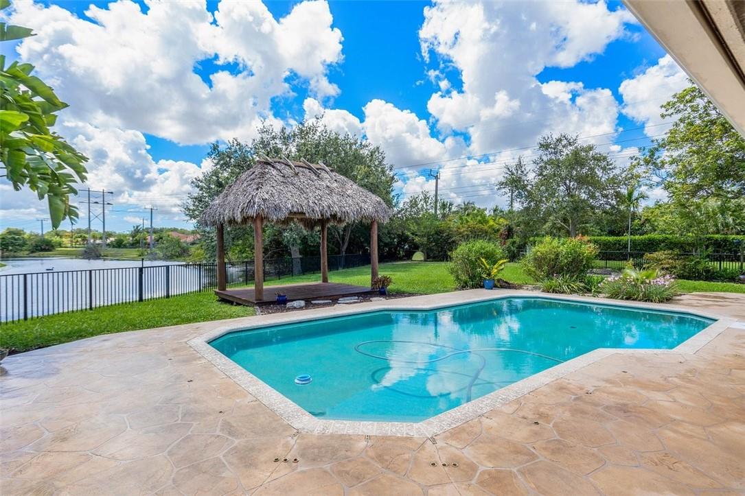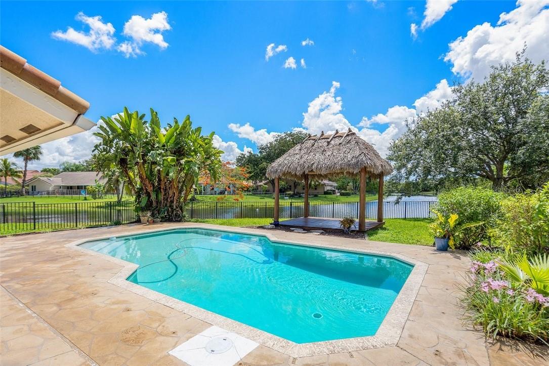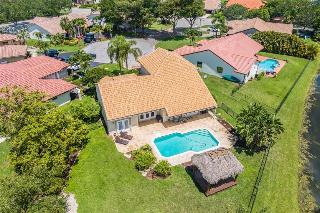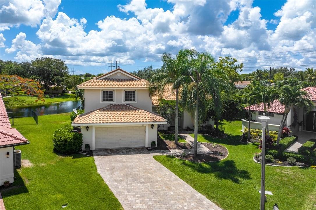 From the paver drive and walkway enter this charming two story, 4 bedroom, 3 bath home located in the desirable BROOKSIDE neighborhood. This home boasts a 1/3 acre site featuring an open pool and patio, tiki hut and firepit in a large fenced backyard with long water views facing east. Access the rear from french doors installed across the back of the home. The interior has volume ceilings, ceramic tile and wood floors, updated kitchen with granite counters and backsplash and updated main bathroom. The open stairwell takes you to a loft and two bedrooms with an adjoining bath. Walk to Betti Stradling sports park that includes a playground and water feature. The neighborhood has excellent schools and easy access to major thoroughfares.