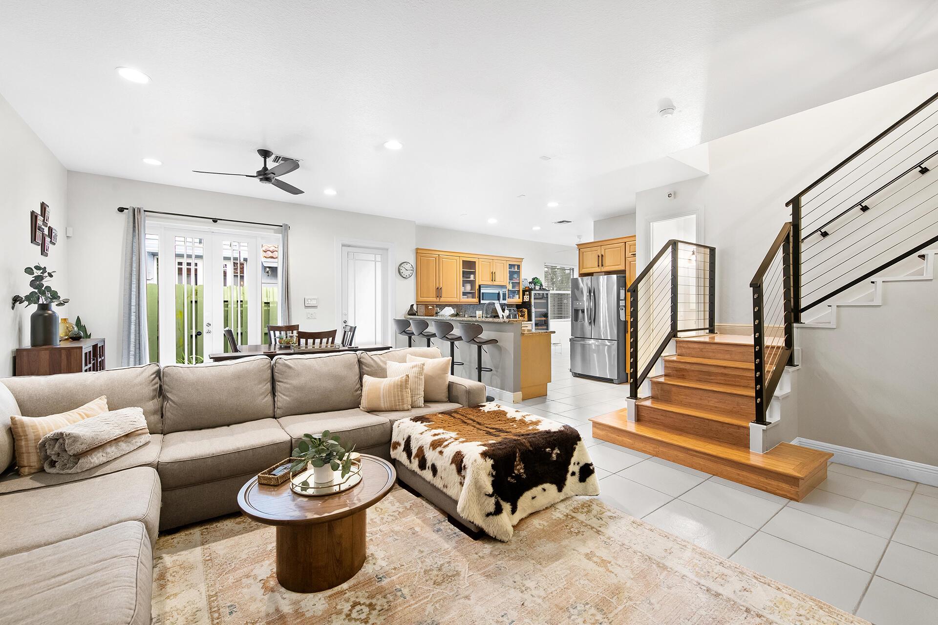 Welcome home to this beautifully updated & renovated fully furnished 2 story townhouse fantastically located in Ft. Lauderdale w/ downtown living at its finest. Property features 1,804 sq ft, 3 BR's, 2.1 BA's, 2 car garage, complete impact windows & doors, newer AC unit & all new light fixtures, ceiling fans & hardware throughout. Custom black steel railing staircase leads you upstairs where you will find 3 BR's, including a spacious primary suite w/ bamboo flooring & 2 walk-in closets. Family room is open to the kitchen w/ newer appliances & french doors open to the outdoor patio space which is perfect for entertaining. Fully lined and AC attic has been renovated for an office/bonus room. This property combines comfort, convenience, and style in a sought-after location