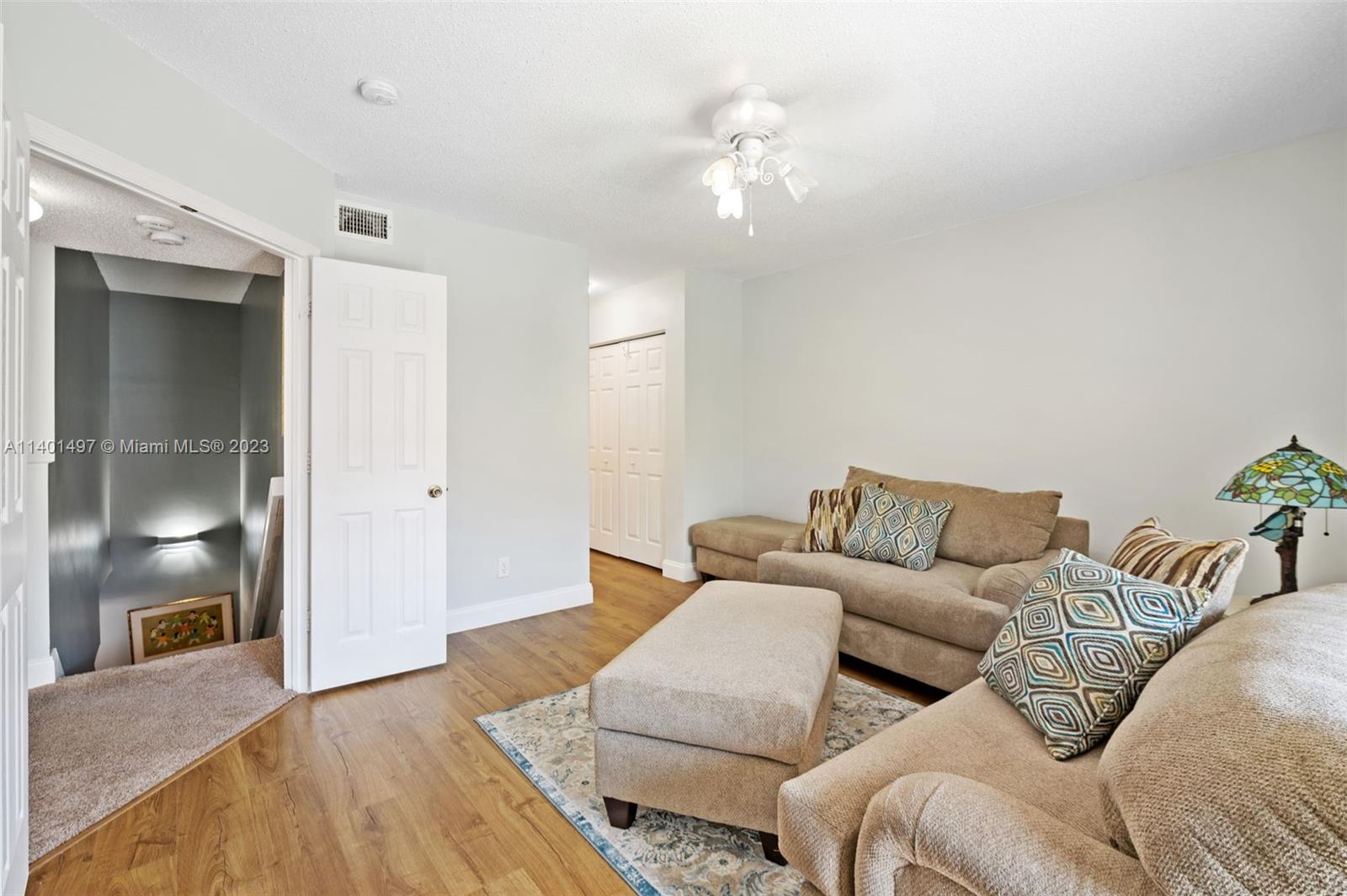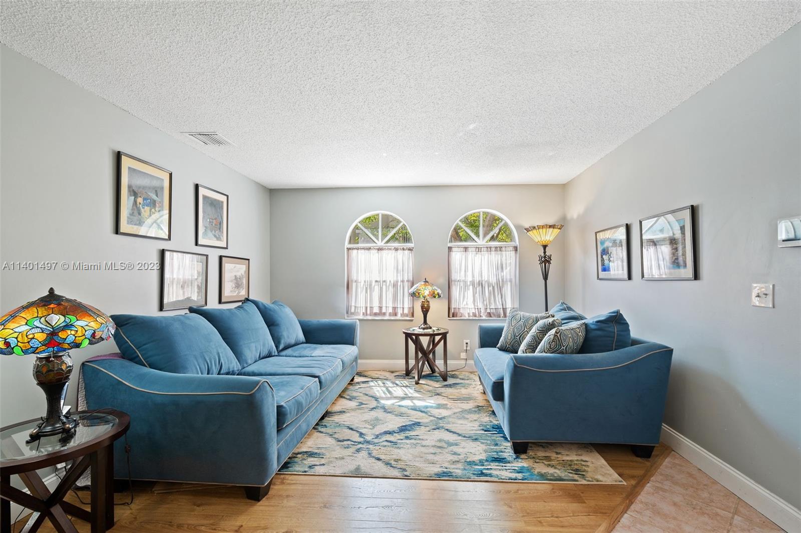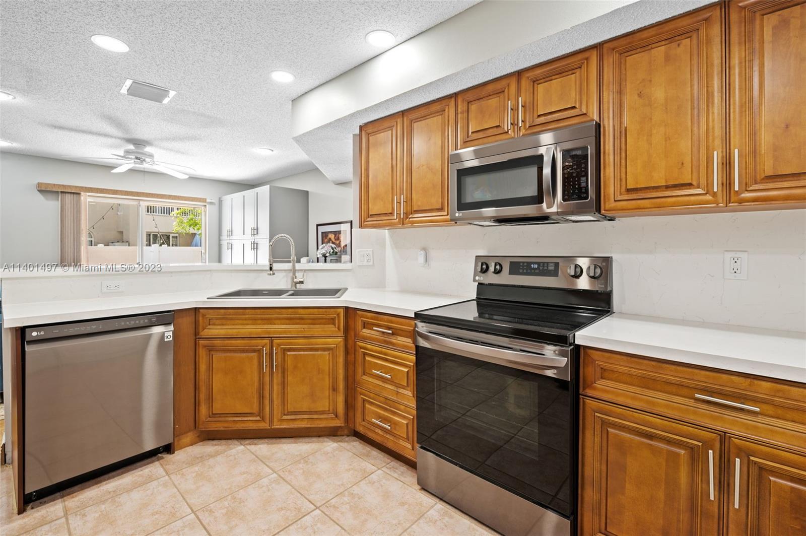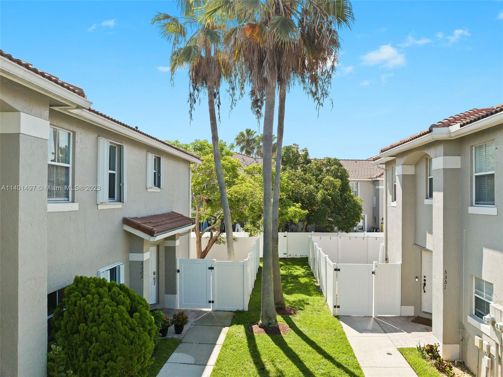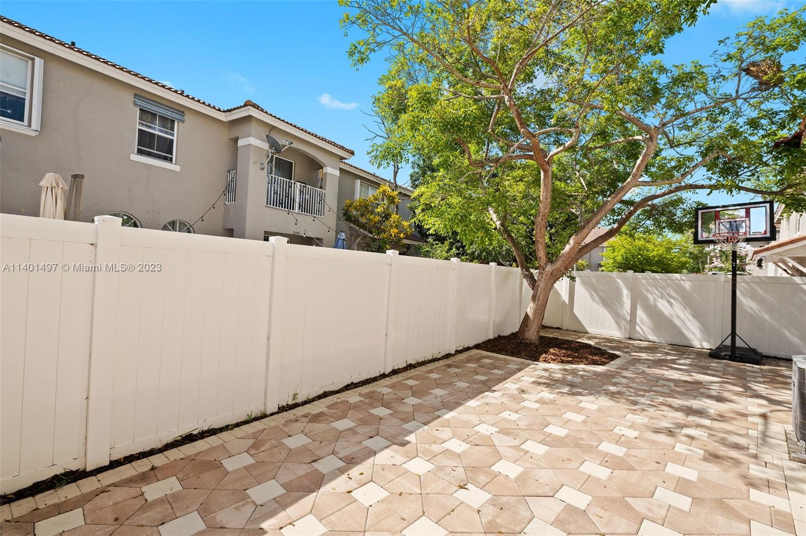 Welcome home to this gorgeous lovingly maintained 3 bedroom 2 ½ bathrooms townhouse. Beautifully remodeled kitchen (2021) with quartz countertops, stainless steel appliances and matching custom cabinetry in the adjacent family room. Newer AC 2020. Water heater 2023. Tile and wood flooring on the first floor. Accordion shutters. Located on a large fenced in corner lot. Community pool. Immaculately maintained community. Centrally located close to highways, shopping and schools.