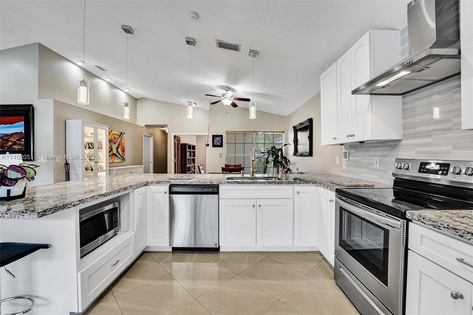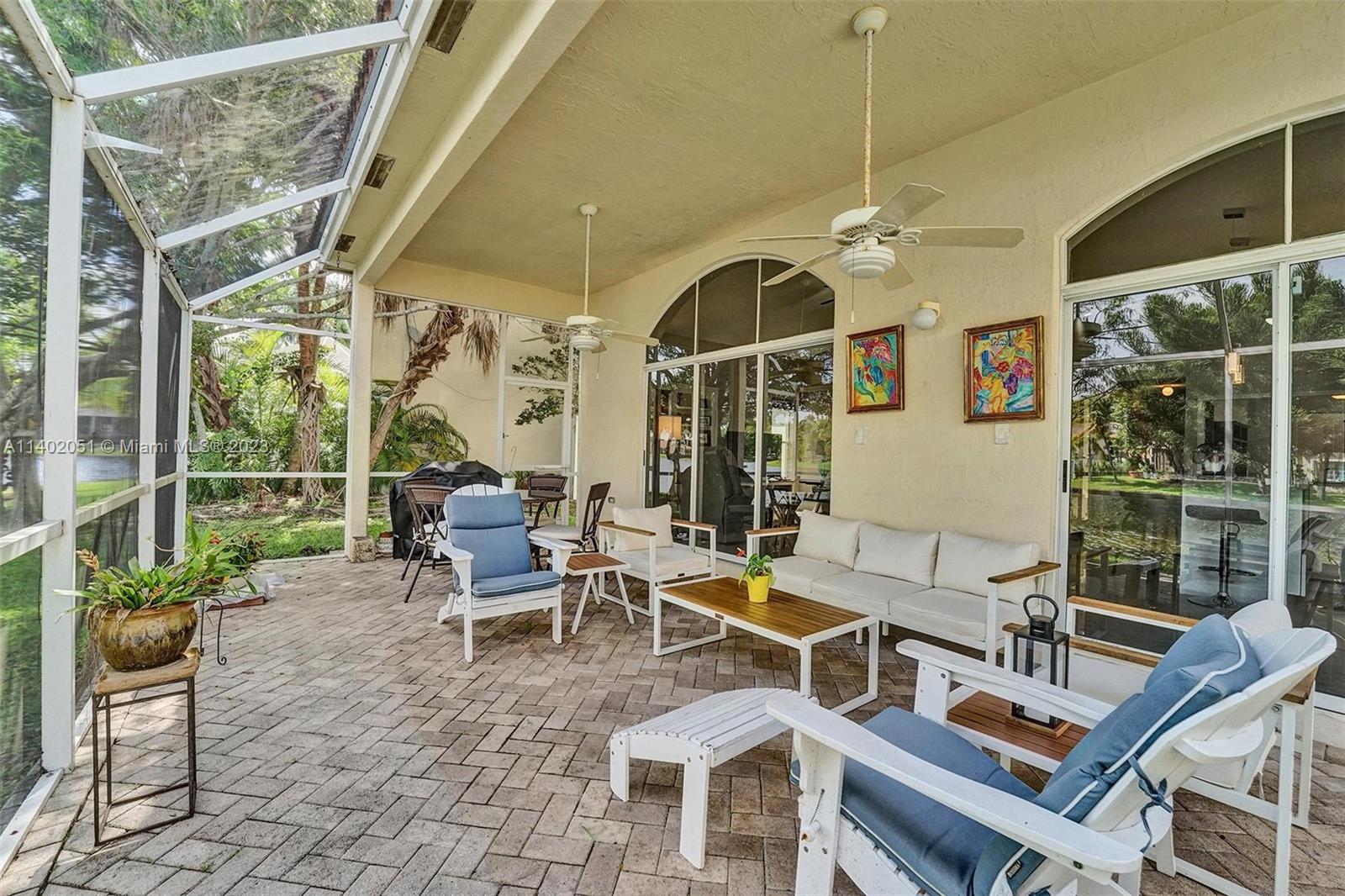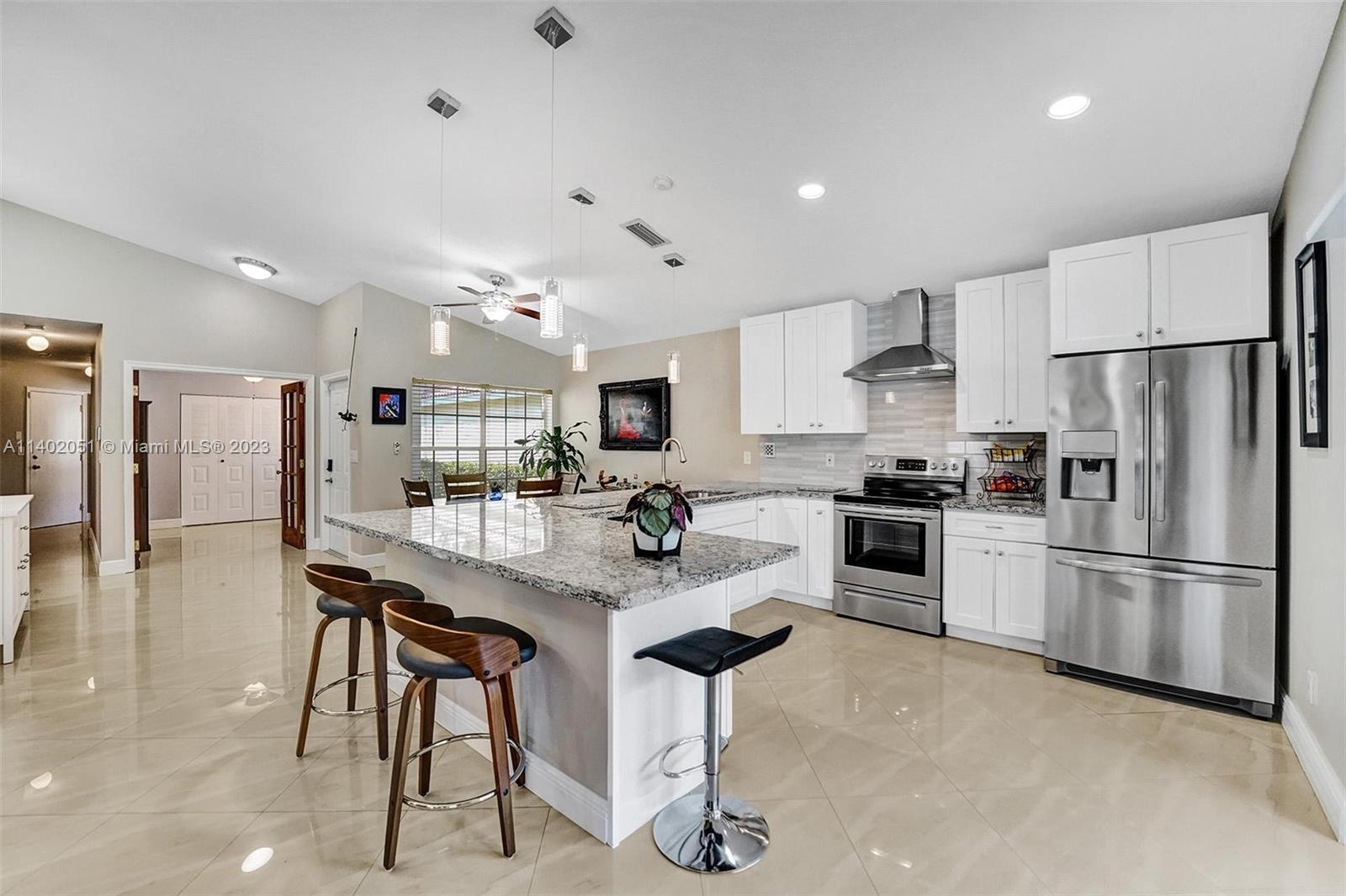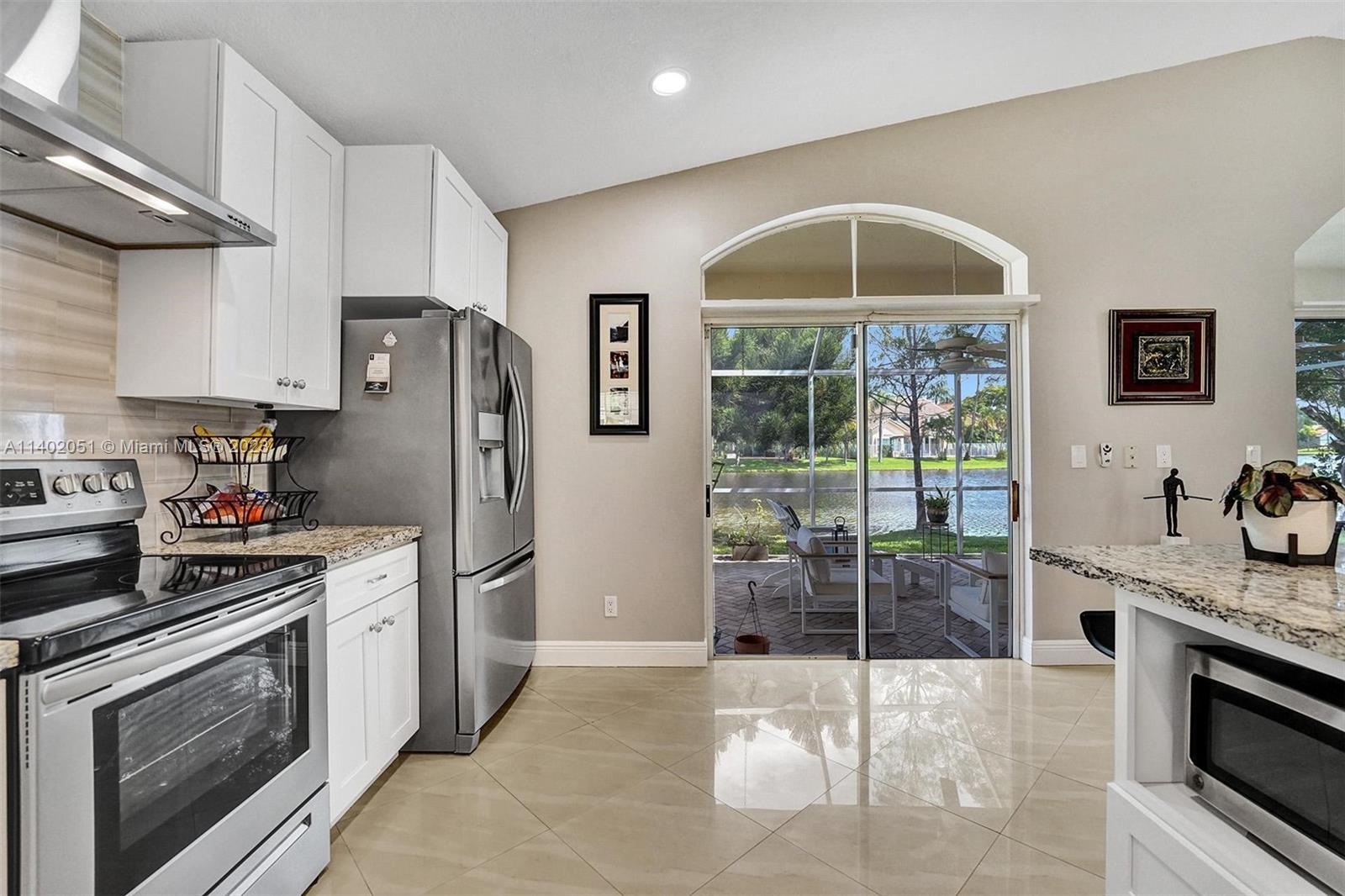 This tastefully updated waterfront home offers the comfort & convenience of 1 level. Featuring porcelain tile throughout, renovated bathrooms, and a beautifully updated kitchen with stainless appliance package & stone counters. Relax & unwind year-round in your spacious screened lanai, overlooking the serene waterfront & lush greenery. Recent updates include a new water heater & laundry appliances. Centrally located at Emerald Isle, a gated complex with a community pool & within a short distance of Tequesta Trace Middle School, Indian Trace Elementary, parks & houses of worship.