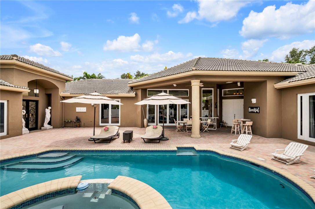 WANT A TRULY MOVE IN HOME? PICTURES SHOW WHY. TRULY A 5/3 W/ONE A GUEST SUITE W/KITCHENETTE/FULL BATH. REALLY BEAUTIFUL/HUGE 54X42 POOL/SPA/PAVER PATIO W/NIGHT LIGHTING & ROOFED AREA. CUSTOM REMODELED KITCHEN W/QUARTZ COUNTERS,VIKING FRIG/DISHWASHER,CUSTOM EUROPEAN CABINETS+42" CABINETS+11 PULL OUT DEEP DRAWERS,140 BOTTLE WINE FRIG,BIG WALKIN PANTRY,3 SEAT COUNTER OPEN TO FAMILY ROOM/BREAKFAST AREA. ALL GREAT VIEW OF POOL/PATIO. DINING ROOM 2 STEPS FROM KITCHEN & LIVING ROOM-BOTH WIDE VIEW VERY PRIVATE BIG BACK YARD. MASTER W/HARDWOOD FLOORS/UPGRADED BATH/2 DOOR VIEW OF POOL&PATIO/2 WALKINS W/MANY SHELVES. ALL HOME IMPACT/ACCORDIONS WINDOWS/DOORS. 24X24 MARBLE FLOORS. ALL KNOCK DOWN WALLS/CEILINGS. LAMINATE BEDROOMS. 4TH BDRM MARBLE FLOOR. ASK YOUR AGENT FOR 4 PAGE EXTRA INFO FULL DETAILS.