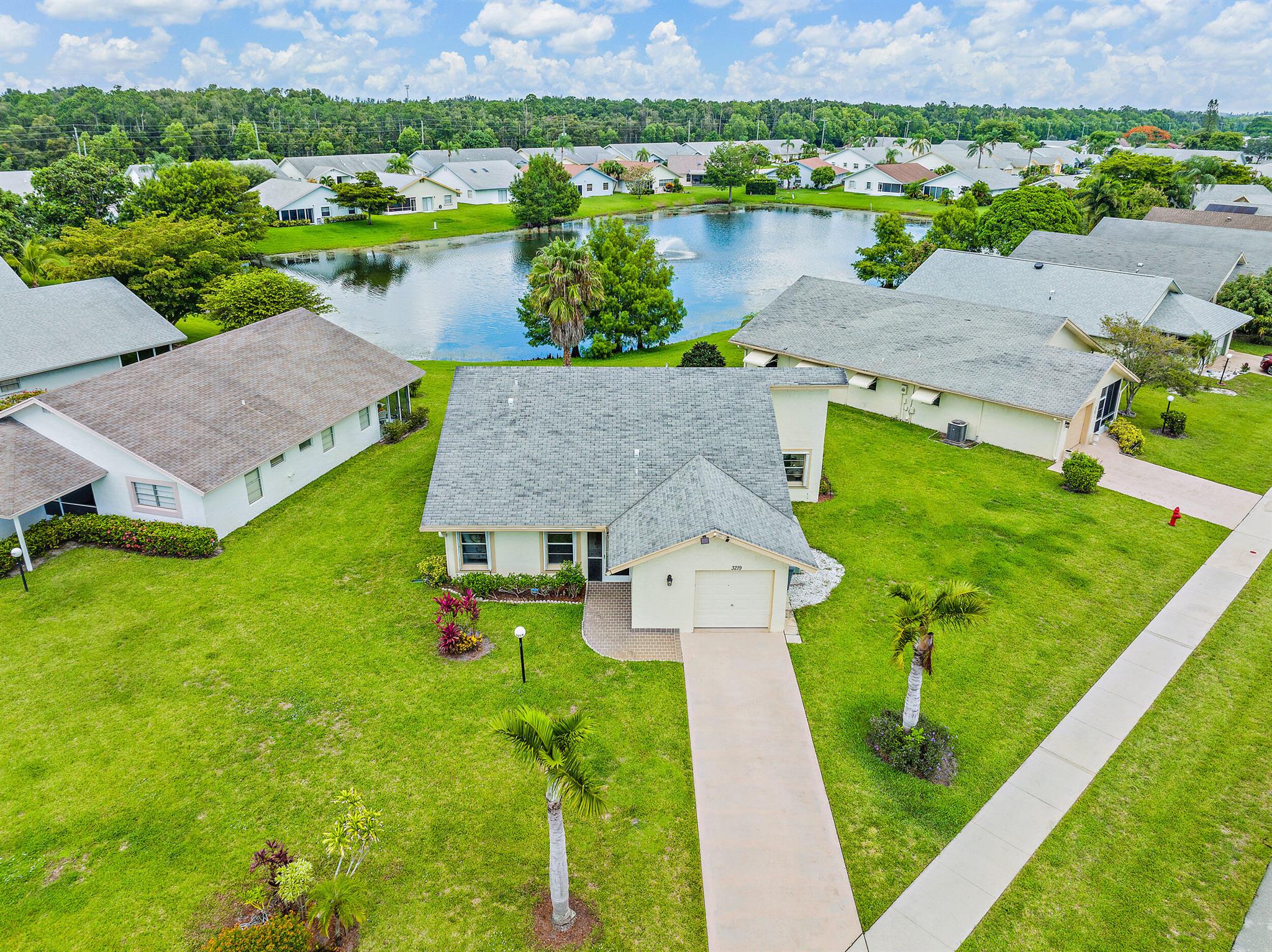 CUSTOM-BUILT, oversized corner lot - boasting 2BR/2BA + Great Room & Florida Room. OVERLOOKING PRISTINE LAKE VIEWS. Designed with an open concept & vaulted ceilings. Freshly Painted interior. This 55+ dream home has stunning features all around. The ample set of windows gives tons of natural light and creates picturesque views from every room providing a feeling of peace and tranquility. The kitchen includes all new appliances, an abundance of cabinets and plenty of countertop space for cooking. Custom cabinet lighting installed. The master bedroom features a large walk-in closet and walk-in shower for easy access. While the guest bedroom has two closets and a separate full bathroom with a tub for any family or guests who visit your beautiful Florida home! Brand new washer and dryer.