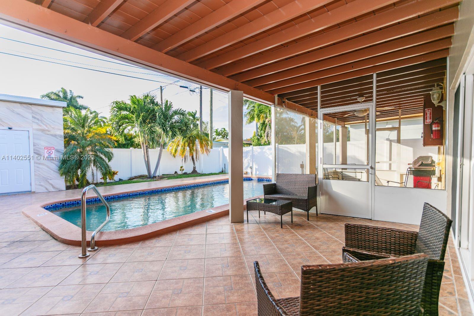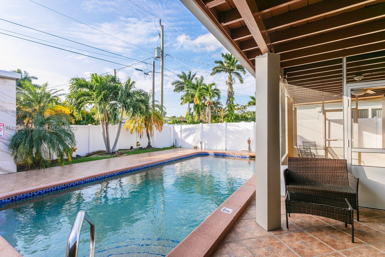 AMAZING HOUSE WITH BEAUTIFUL POOL, 3 BEDROOMS-2 BATHROOMS, OPEN CONCEPT, GIGANTIC ISLAND IN THE KITCHEN, PERFECT FOR ENTERTAINING FAMILY AND GUESTS, SPACIOUS AND UPDATED KITCHEN WITH POOL VIEW. IMPACT WINDOWS AND DOORS. NEW FLOORING IN EVERY BEDROOM. CALSO HAS NEW A/C 2021, FENCED YARD WITH AMAZING POOL, TRAVERTINE MARBLE DECK AND SCREENED PATIO WITH BARBEQUE AREA. CIRCULAR DRIVEWAY. CALL THIS HOUSE YOUR NEW HOME OR DO AIRBNB FOR INVESTORS. HOUSE IS FULLY EQUIPPED AND FURNITURE NEGOTIABLE. PLEASE CALL LISTING AGENT FOR PRIVATE SHOWING.