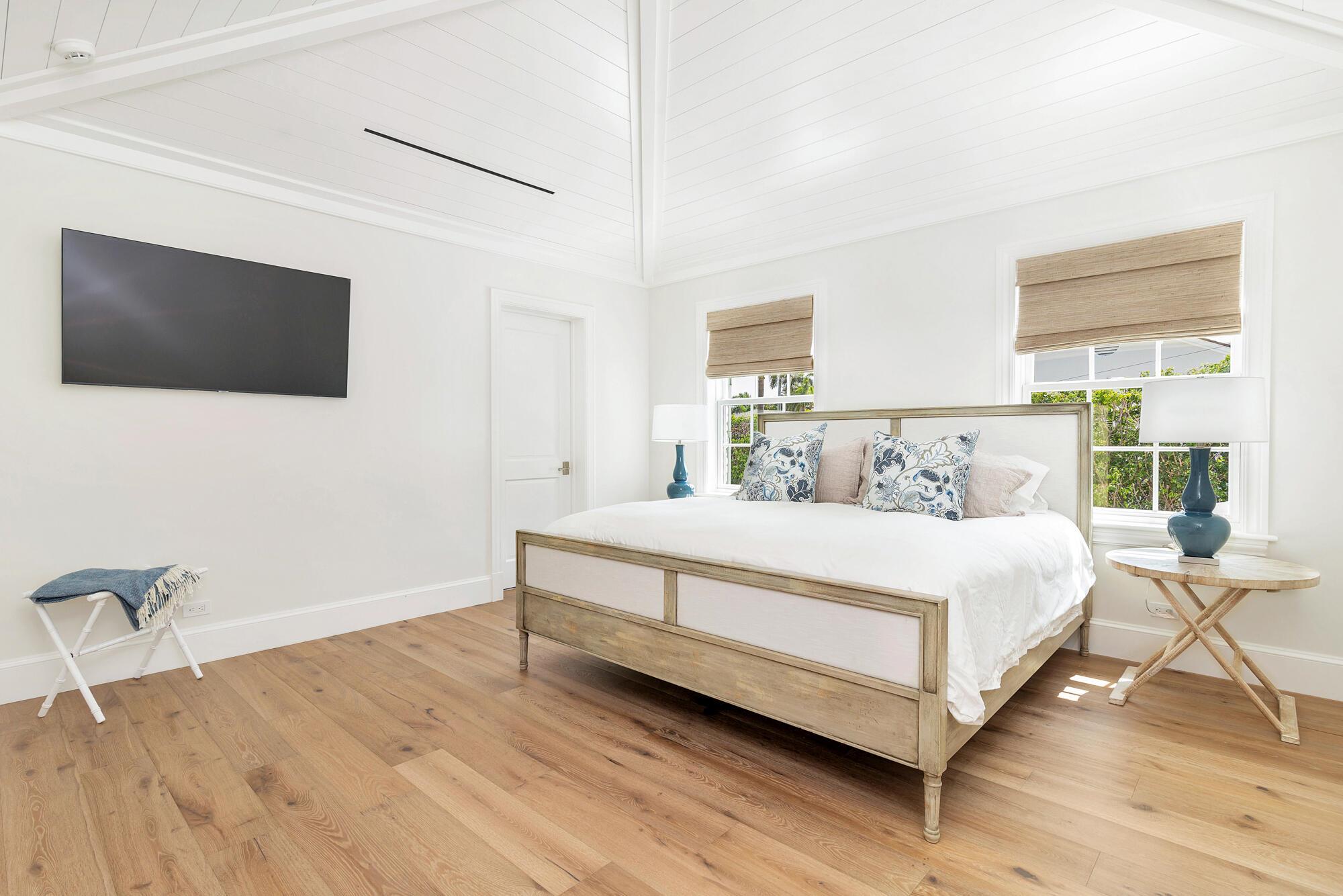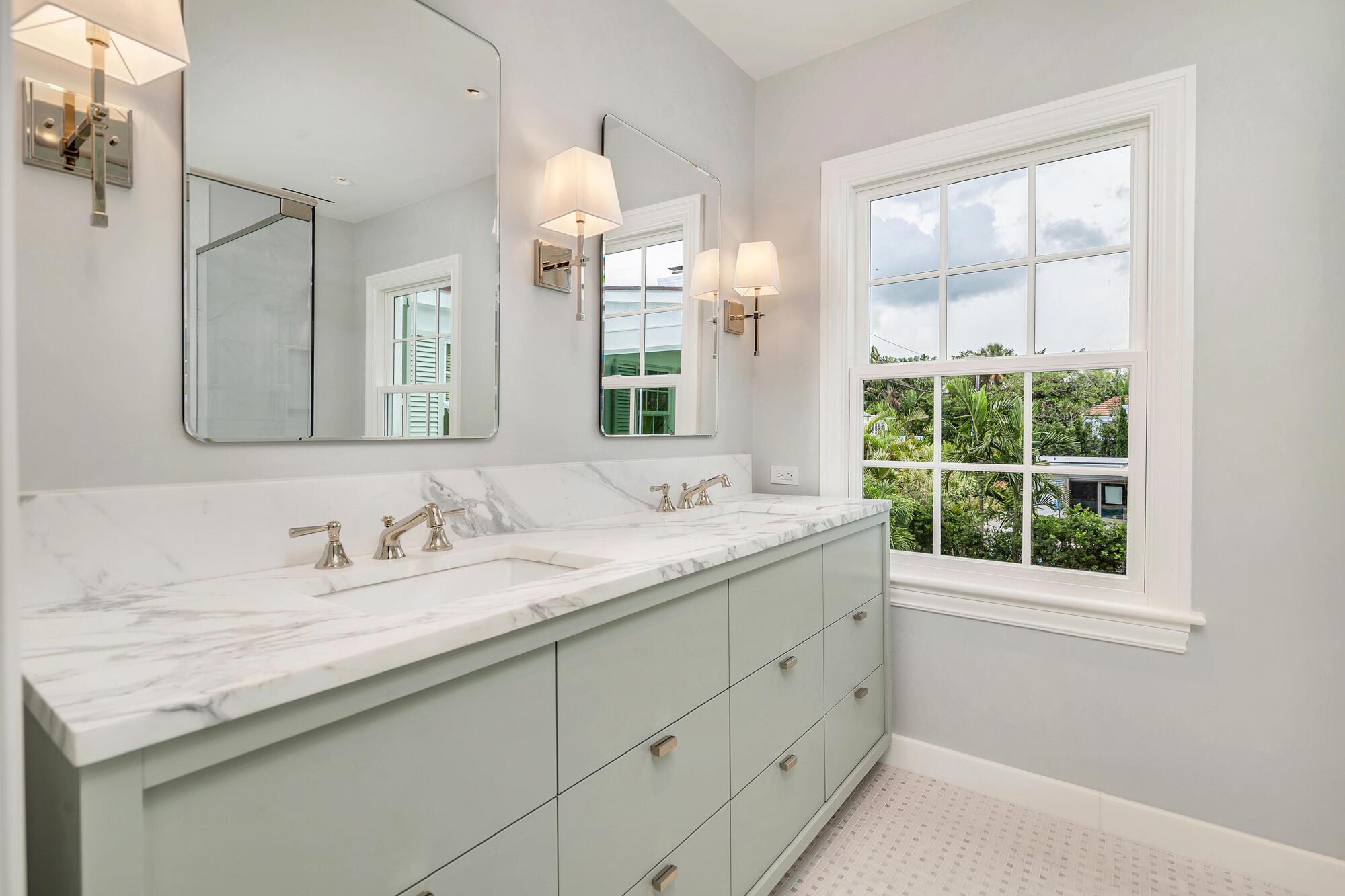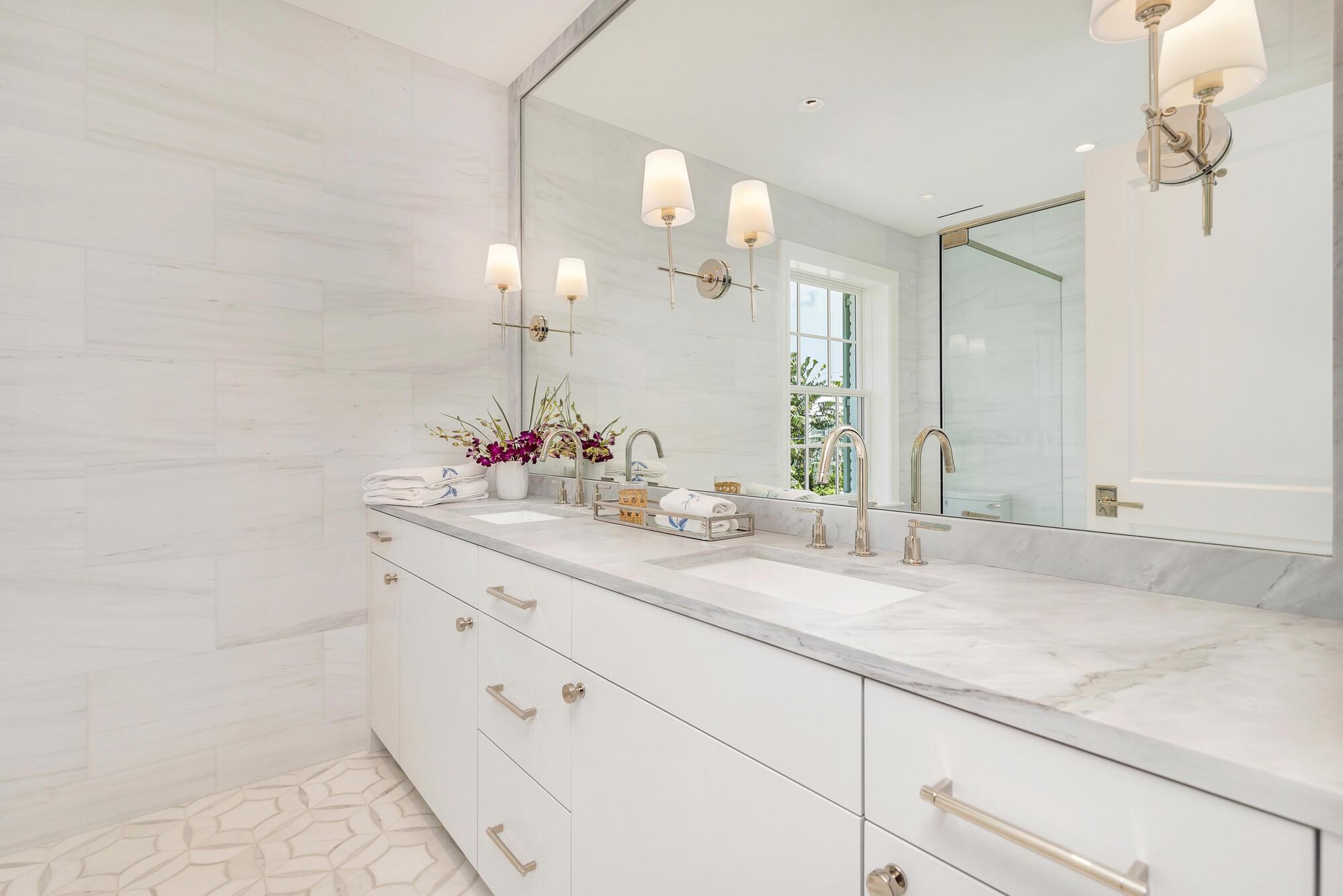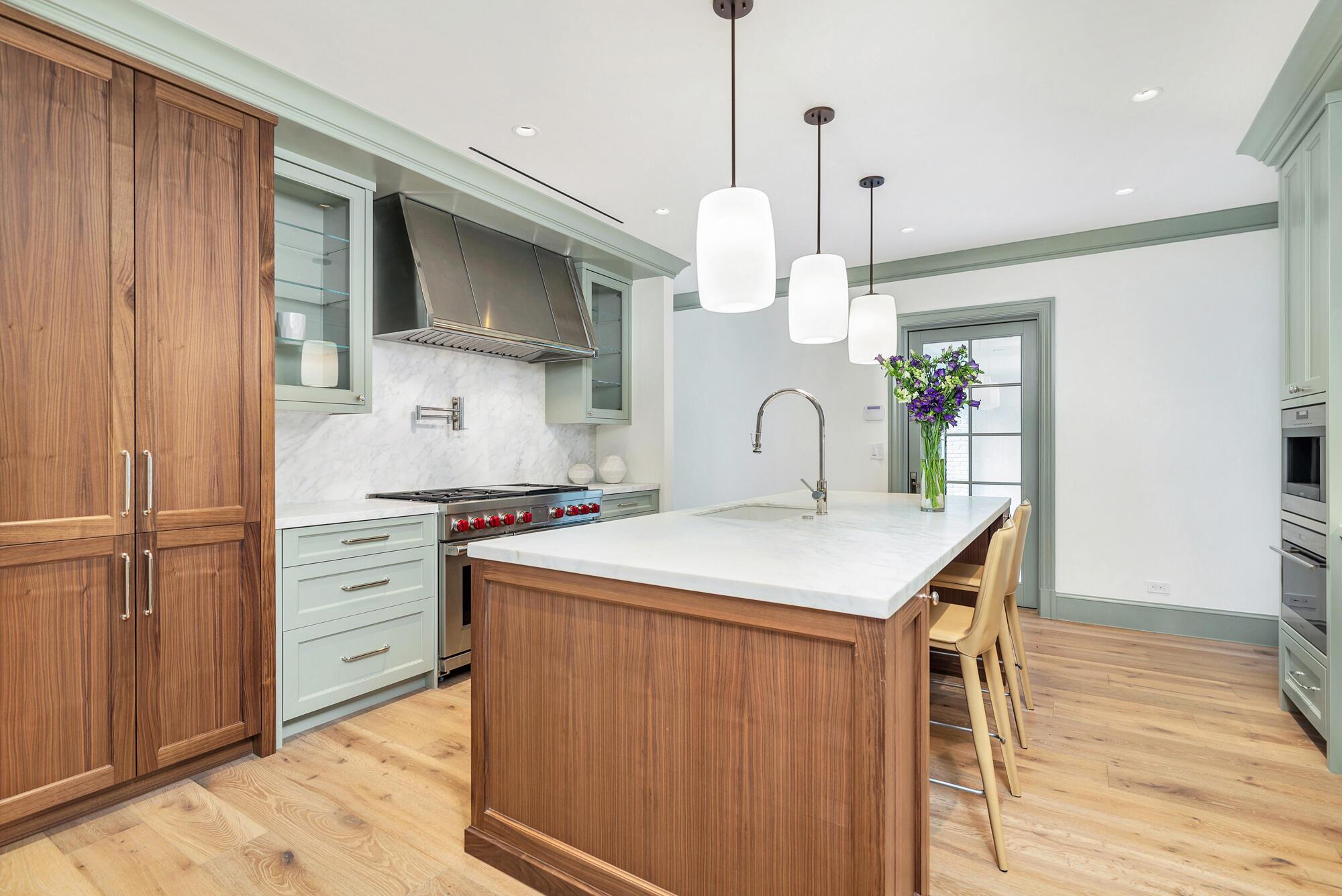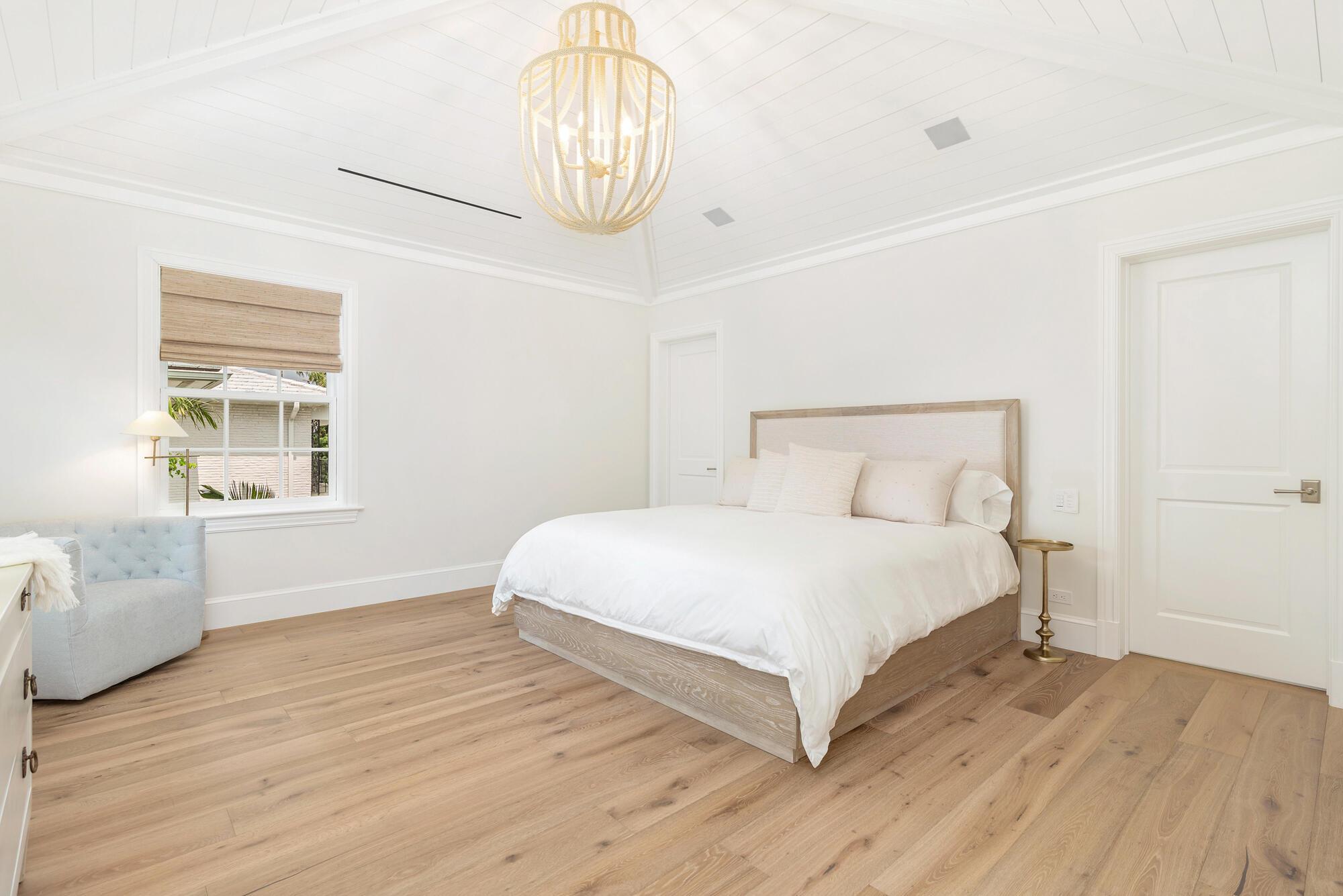 Located on a desirable in-town street, this 4,500-square-foot Palm Beach Island residence was originally designed by Gustav Maas and reimagined by Smith Kellogg Architecture with interiors by Carolyn Roy of CR Studio.Upon entering, the foyer opens to a formal living room with a fireplace, which flows into a bright sunroom overlooking the backyard. Adjacent is a dining room with a bay window that frames views of the pool and landscaped grounds.The kitchen is equipped with top-of-the-line appliances, including a full-size Sub-Zero refrigerator and freezer, gas range, and custom range hood, and pendant lighting reclaimed from the Netherlands. A walk-in butler's pantry with a wine refrigerator and additional storage sits directly behind. A door leads from the kitchen to the backyard