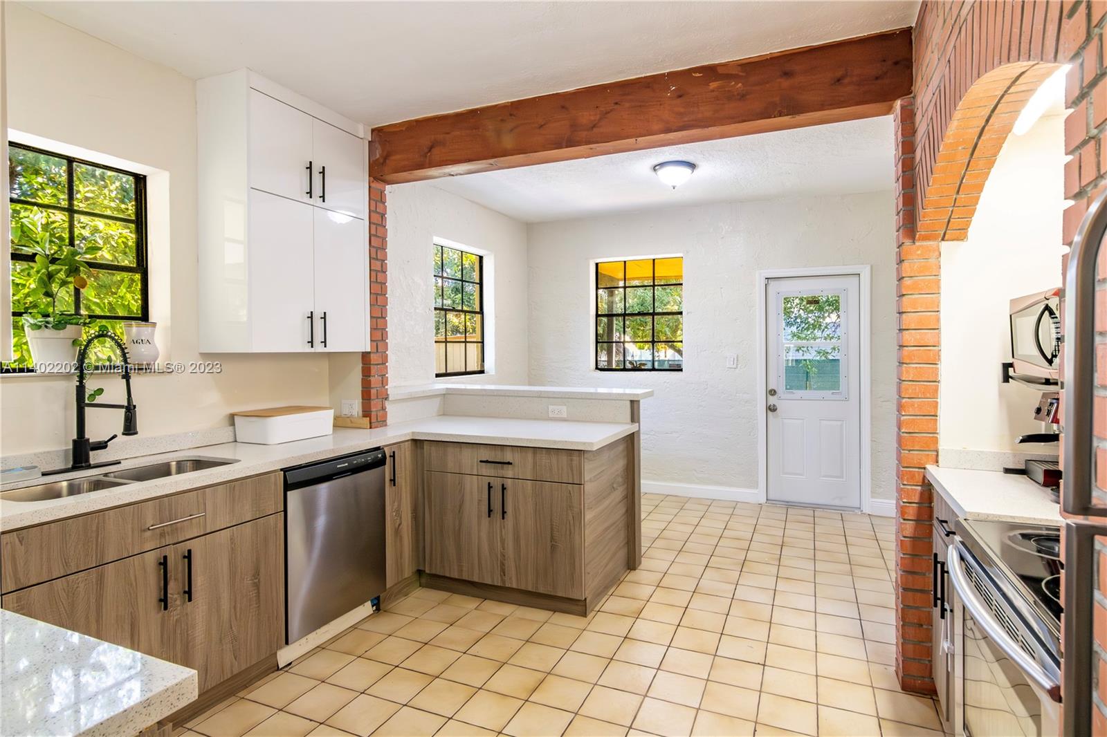 Charming 1920s Spanish-style home in the beautiful and historic Griffing Park neighborhood of North Miami. 3/2 with newly updated modern kitchen and bath, large primary bedroom as well as additional living space with separate entryway leading to the expansive front yard. This home has unique, well-maintained original features including a fireplace, stained glass windows, original wood floors and Mexican tile as well as brick accents. The house sits on a large yard making it easy to expand. Tropical foliage surrounds the property and a large avocado tree that provides peaceful shade. Close to a newly revitalized downtown, adjacent to Biscayne Park and Miami Shores. 15 minutes from the beaches and 3 minutes to I-95 puts you right near all that South Florida has to offer.