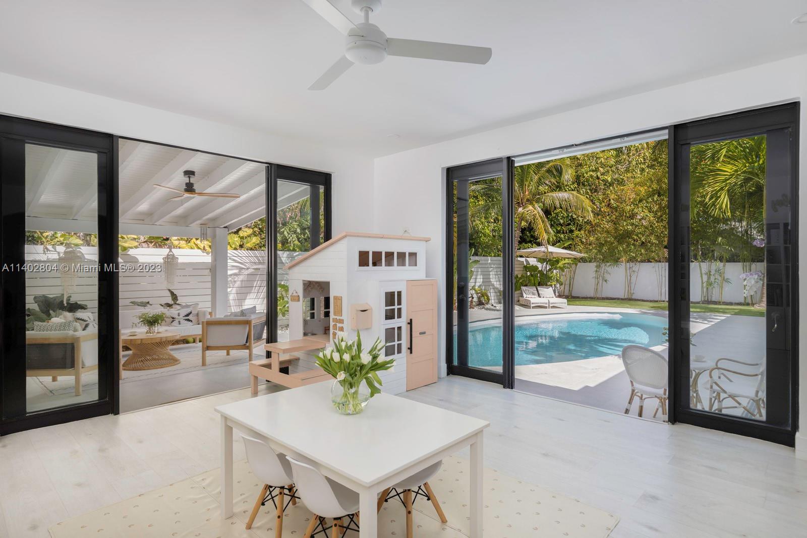 Classic, ultra-private gated home in lush South Coconut Grove. Light-filled living spaces include formal living/ dining & family room + 5 BR’s & 4 BA’s. Major renovation includes new flooring, modern style bathrooms & large custom kitchen with white wood cabinetry and stone countertops. Enjoy outdoor living & entertaining in the expansive garden that features covered terrace & tropical pool. Walk or bike to the Grove villages galleries, boutiques, cafes and bayfront parks & marinas.
