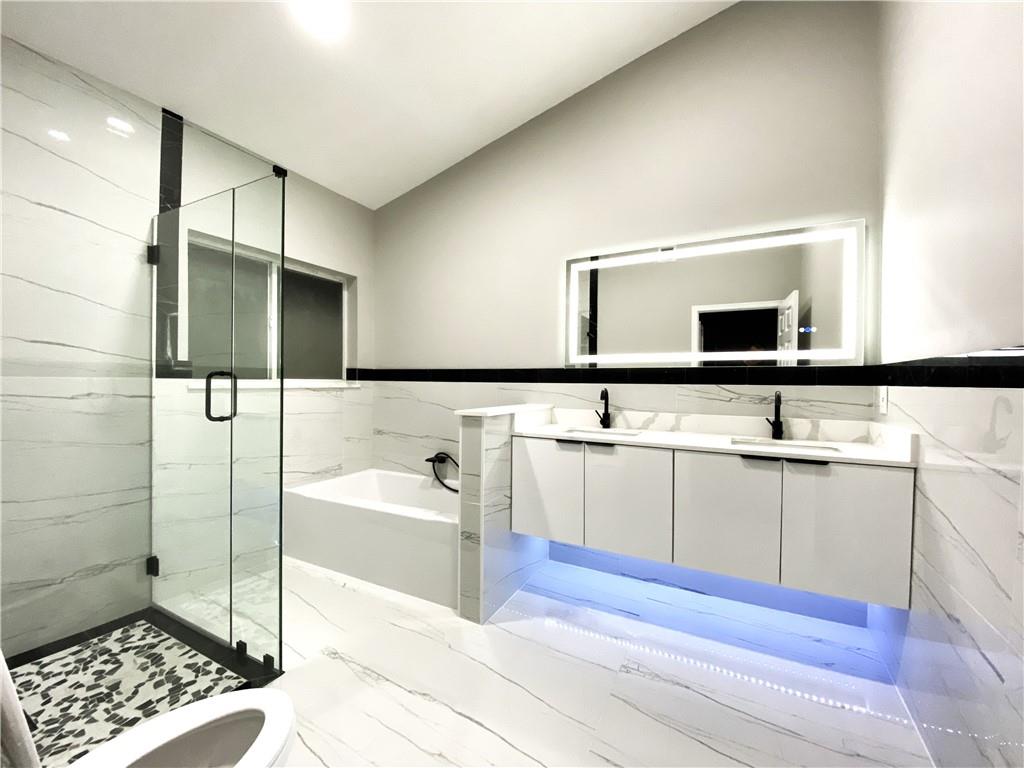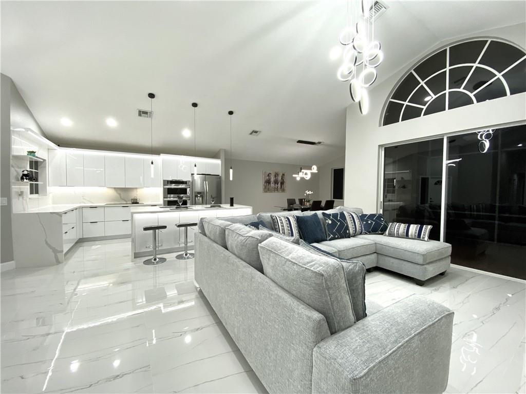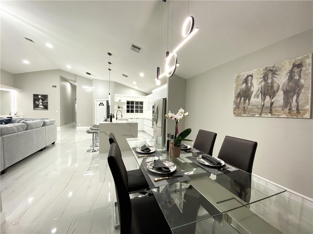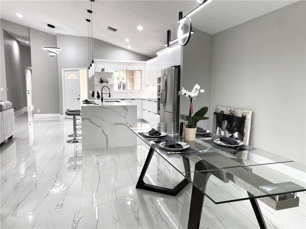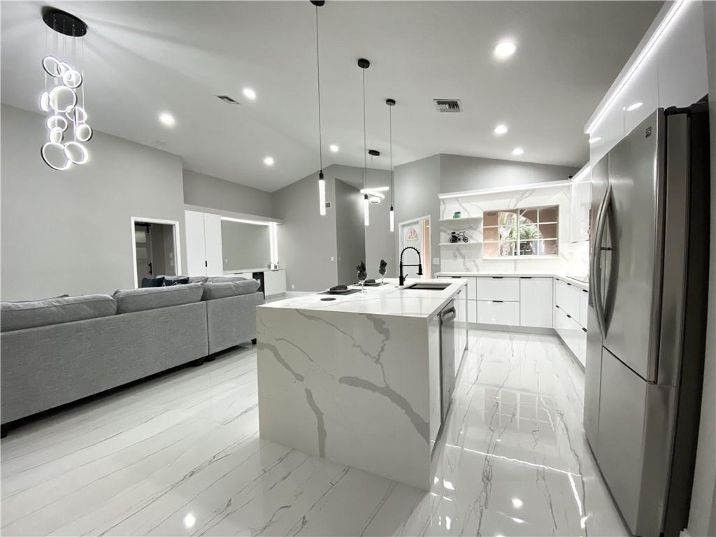 New Renovated 1-Story Home! Low HOA Fee w. lawn care, common area & a community pool! Bright Open & Split Floor Plan, Vaulted Ceilings, Tile & laminate floors, LED lights for the entire house. Modern kitchen has high-gloss cabinetry, quartz countertops & walls, 2-basket trash drawer, energy saving induction cooktop, touchless hood, SS appliances, self-clean oven, waterfall breakfast island has auto retractable outlets, & much more. Master suite features dual-sink vanity, custom-made closet has sensor lighting. Fresh painted exterior & interior. Window has UV protection films. Tropical Lush backyard w. screened Patio! An utility sink in laundry! 2-Car Garage w. Hurricane Impact Door. Roof 2007. AC 2014. WH 2020. A+ Rated Schools, no effect on the rezoning, Stoneman Douglas High School zone!