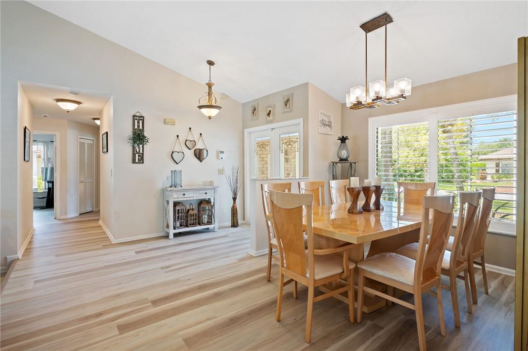 Absolutely Stunning 4/2 Pool home -All the bells/whistles-For the pickiest of buyers! Vaulted ceilings thru-out except Guest Br's. Features Include: IMPACT GLASS thru-out entire home/doors, recently extended (3/2023) pool deck with Travertine Marble, New pool tiles & Diamond brite, Updated Kitchen & New Appl (2021), Both Baths Remodeled, All New vinyl laminate plank flooring (4/2023) thru-out except Baths, 4-1/2 Ton AC (2016), New Roof 2012), Plantation Shutters in DR, LR, & Brkfst Rm, Electric Blinds in Master Br & Fam Rm, 7 ceiling fans, new garage door opener (2020). Garage door has bracket for shutters. EXCLUDE: Bistro lighting, Washer/Dryer - Pride of OWnership - A MUST SEE - WILL NOT LAST.