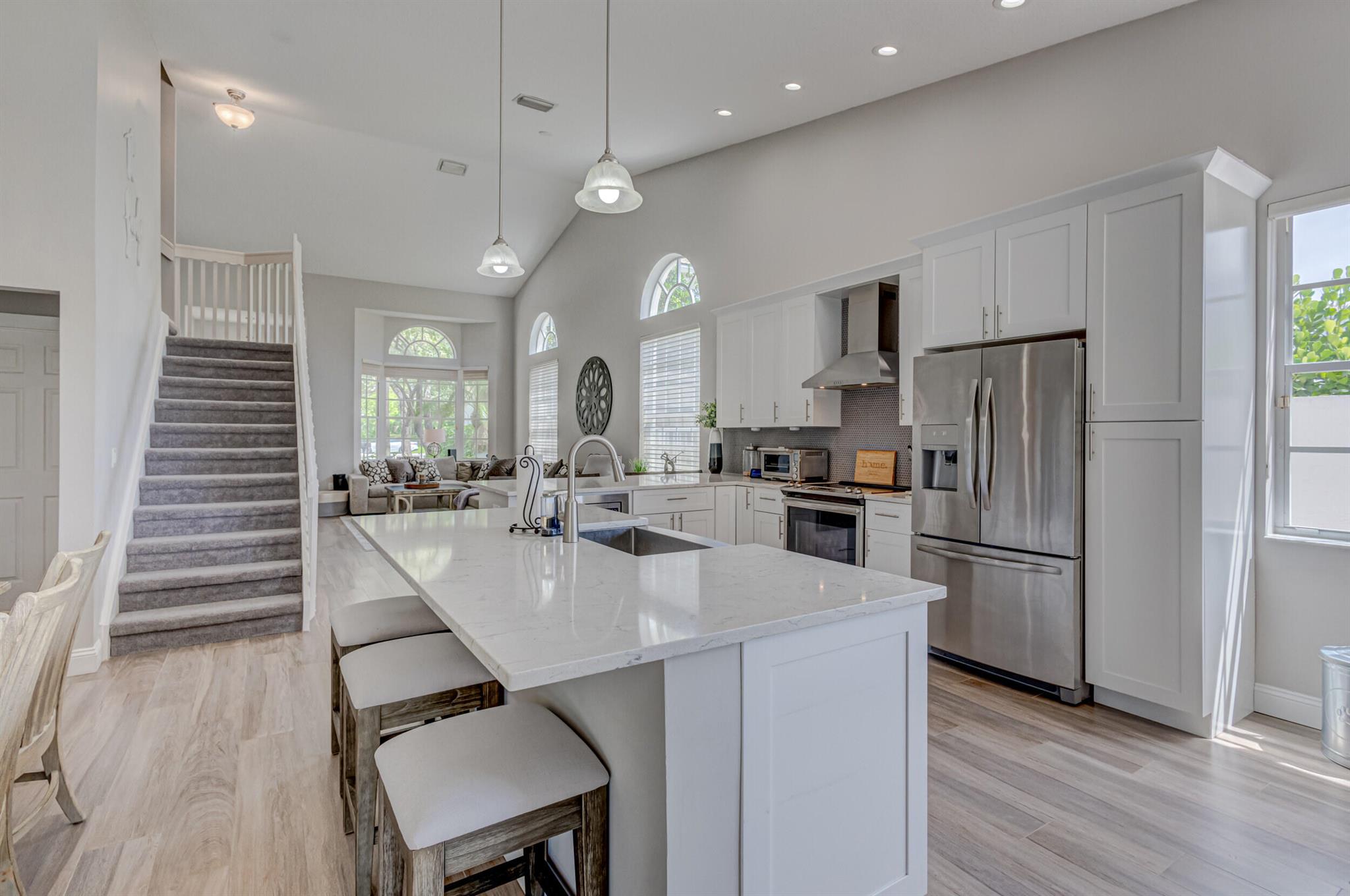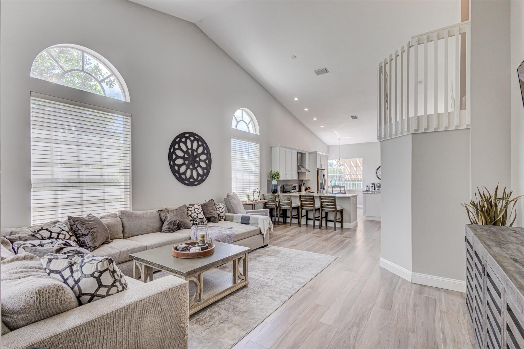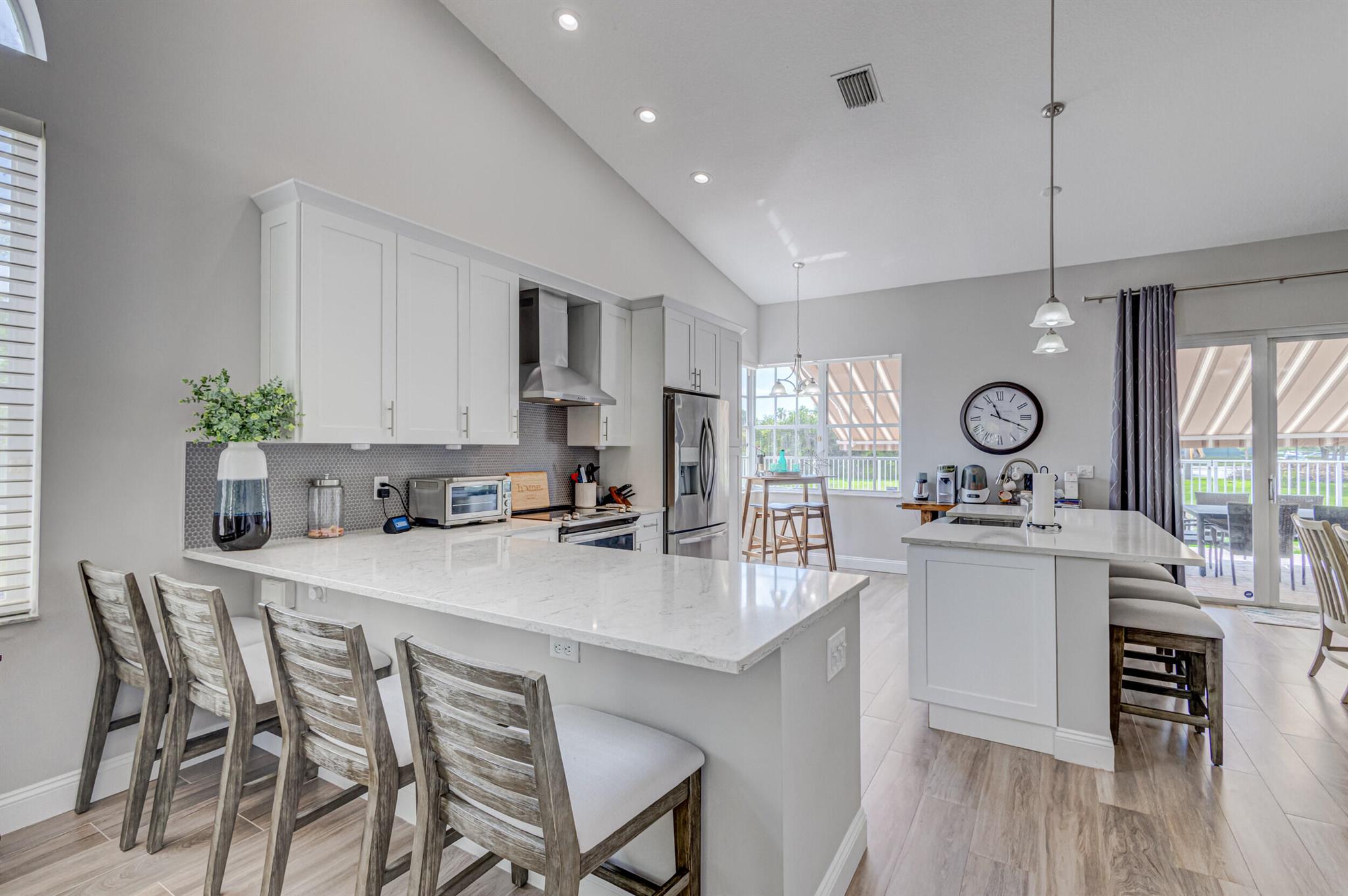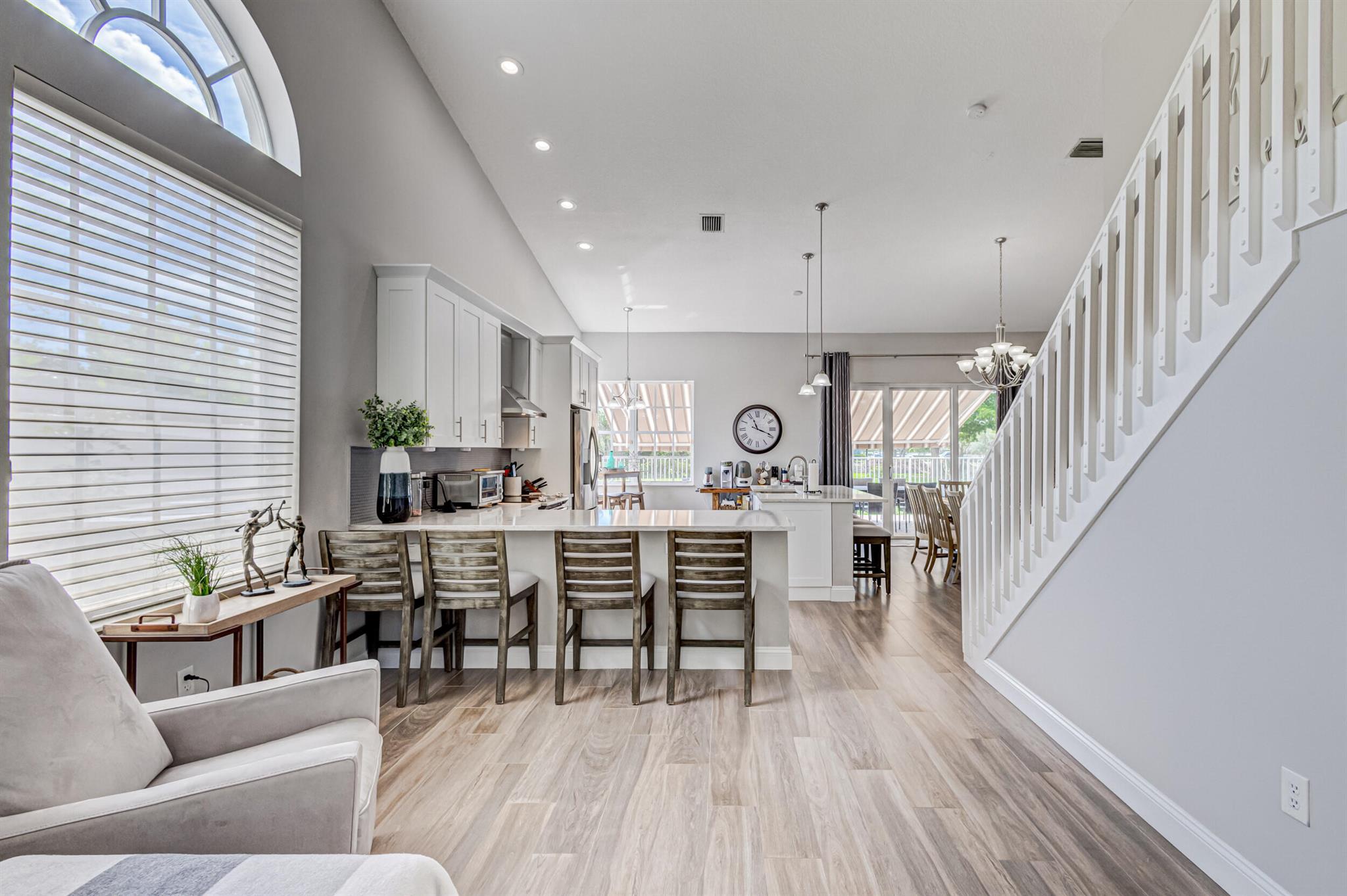 Spectacular 4 bedroom, 2.5 bath, 2 car garage corner lot with beautiful lake and golf views located in the private gated community of The Classics at Bear Lakes! This inviting open floor plan offers all new interior paint, tons of natural light, and renovated powder room with custom vanity. With over 2,100 SF, your 1st floor living area boasts luxury wood look tile floors and knockdown ceilings. Stunning kitchen completely renovated with 42'' cabinets capped with crown molding, elegant Argento Quartz counters extended throughout for an abundance of bar seating, decorative tile backsplash, GE stainless steel appliances with decorative hood, built-in microwave drawer and oversized single bowl sink. Separate breakfast area and oversized dining/family room with hurricane impact sliders