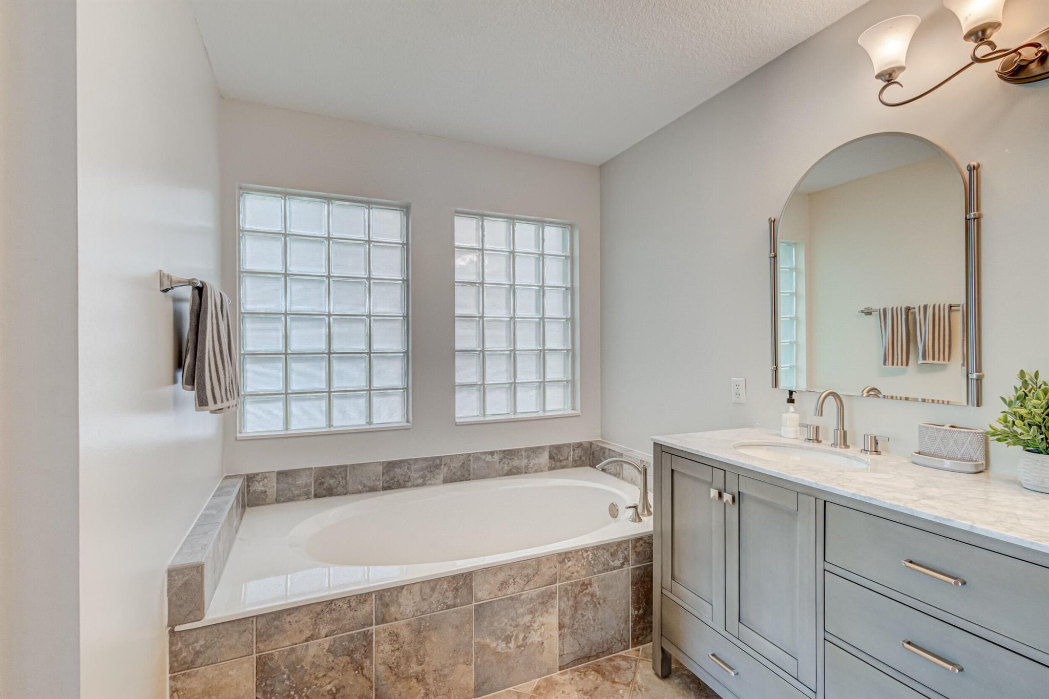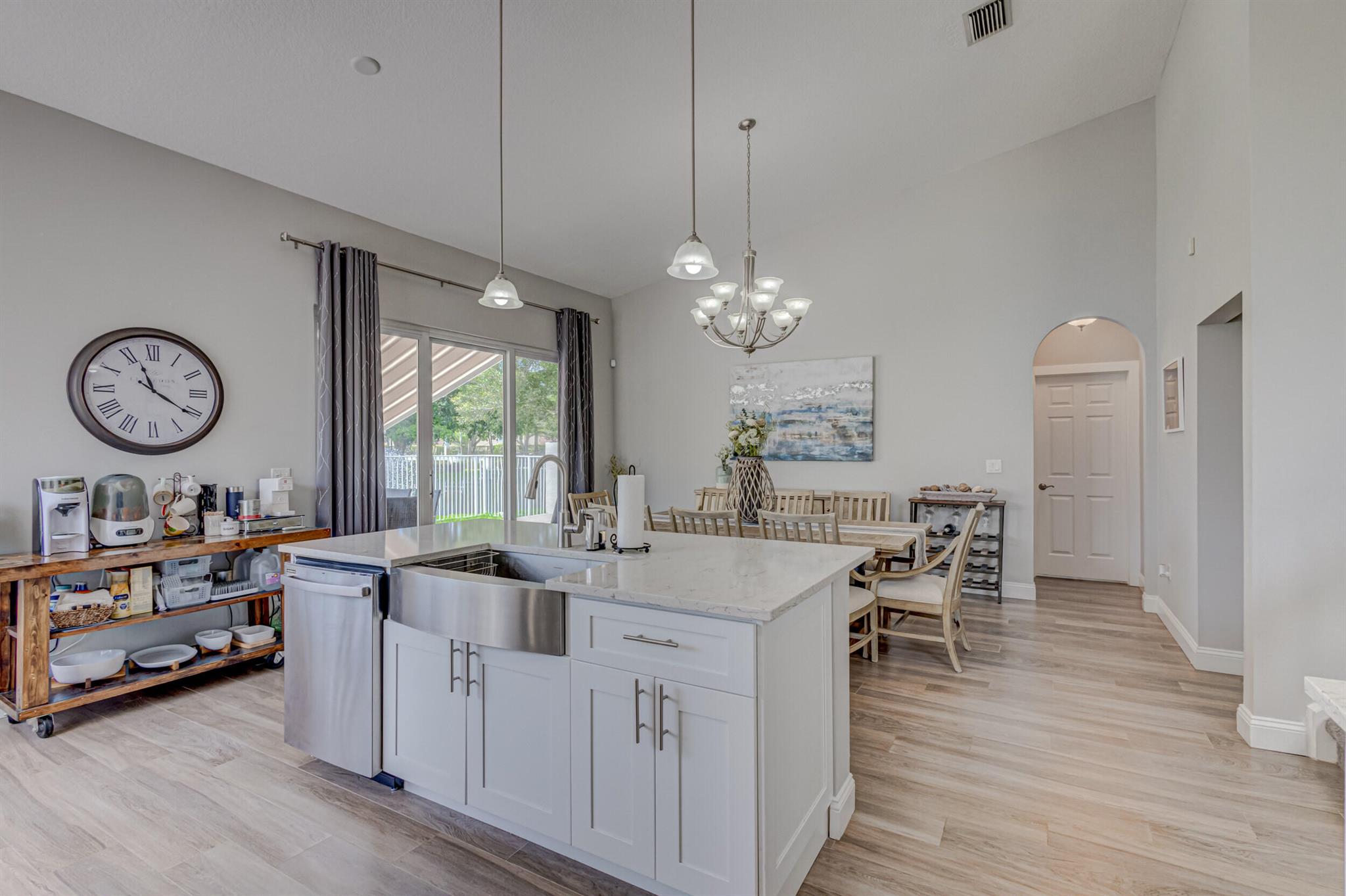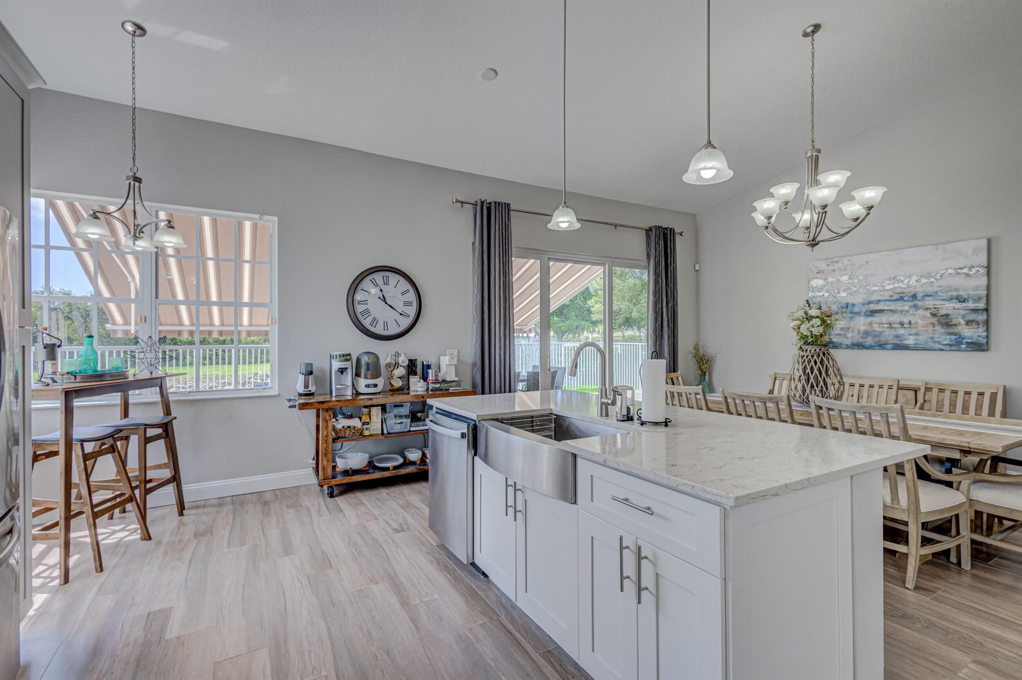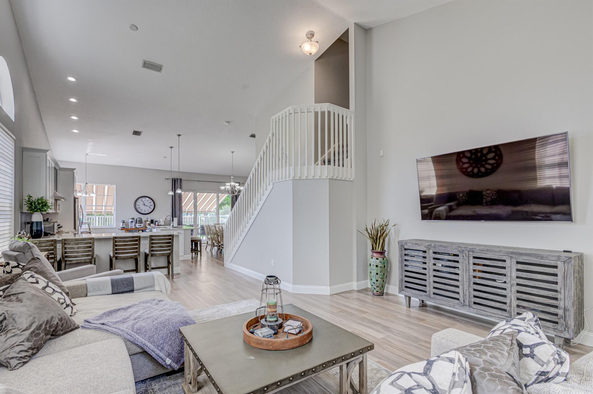 Spectacular 4 bedroom, 2.5 bath, 2 car garage corner lot with beautiful lake and golf views located in the private gated community of The Classics at Bear Lakes! This inviting open floor plan offers all new interior paint, tons of natural light, and renovated powder room with custom vanity. With over 2,100 SF, your 1st floor living area boasts luxury wood look tile floors and knockdown ceilings. Stunning kitchen completely renovated with 42'' cabinets capped with crown molding, elegant Argento Quartz counters extended throughout for an abundance of bar seating, decorative tile backsplash, GE stainless steel appliances with decorative hood, built-in microwave drawer and oversized single bowl sink. Separate breakfast area and oversized dining/family room with hurricane impact sliders