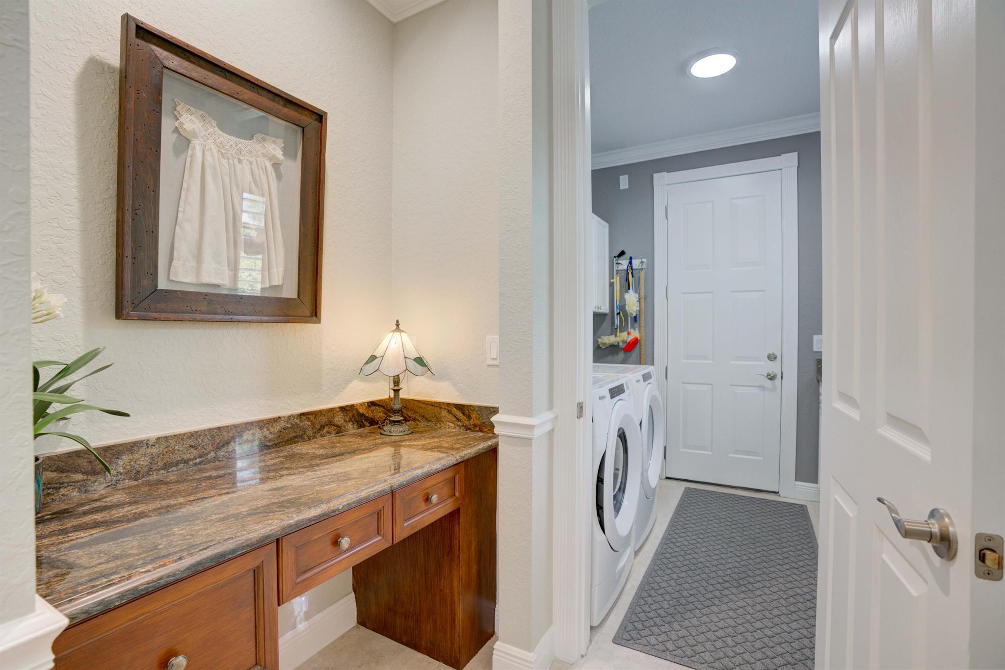 Move in Ready Prestine home in gated non mandatory golf course community. Highly sought immaculate 3bd, 3.5 bath, Plus office. New Roof, New whole house generator, 500 gallon Propane tank, New electric pool heater, New electric water Heater, New Hurricane Accordion Shutters, New Plantation Shutters, New Kitchen Appliances, NEW GAS Cooktop, Updated Irrigation System, New Custom Landscaping, New Lighting throughout, New Toilets & bathroom hardware, New fresh paint Ext. & Interior. New Outdoor built in grill. Enter through double doors into a grand foyer and formal living room with 12' ceilings, crown moulding. The gourmet kitchen is spacious , light & bright, featuring 42'' wood cabinets w/ all new appliances. Walk in pantry & separate butler's pantry. Large primary Suite w/walk in closets
