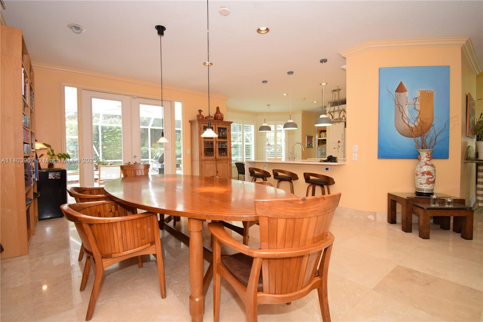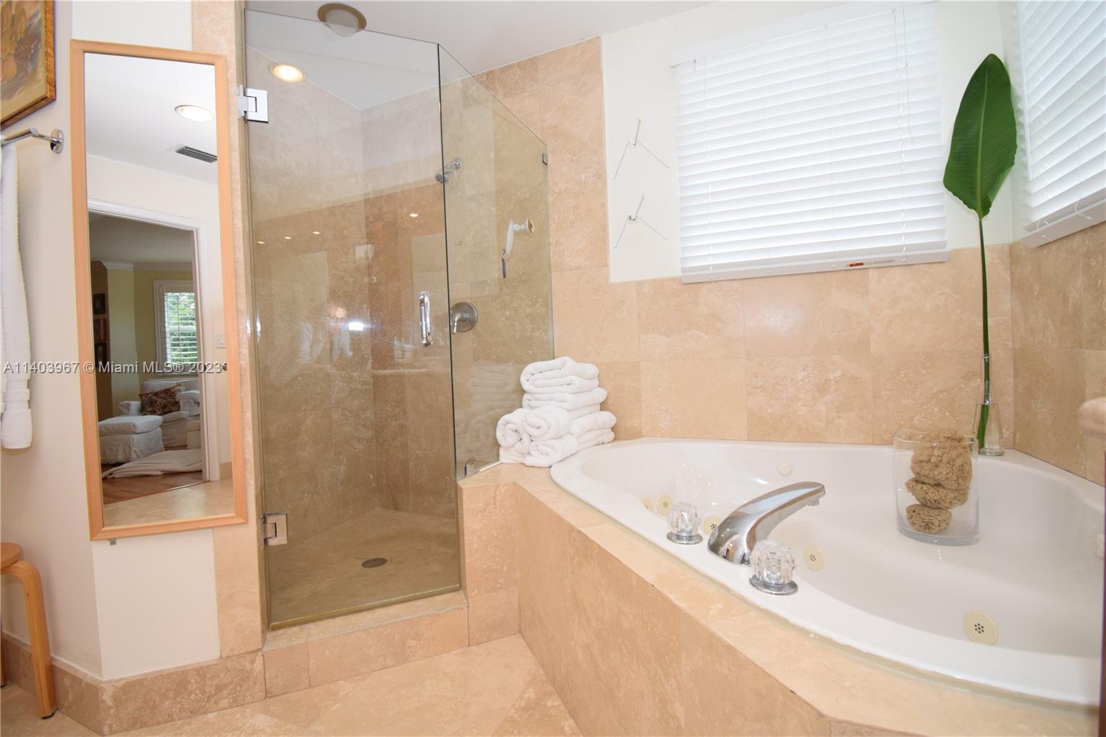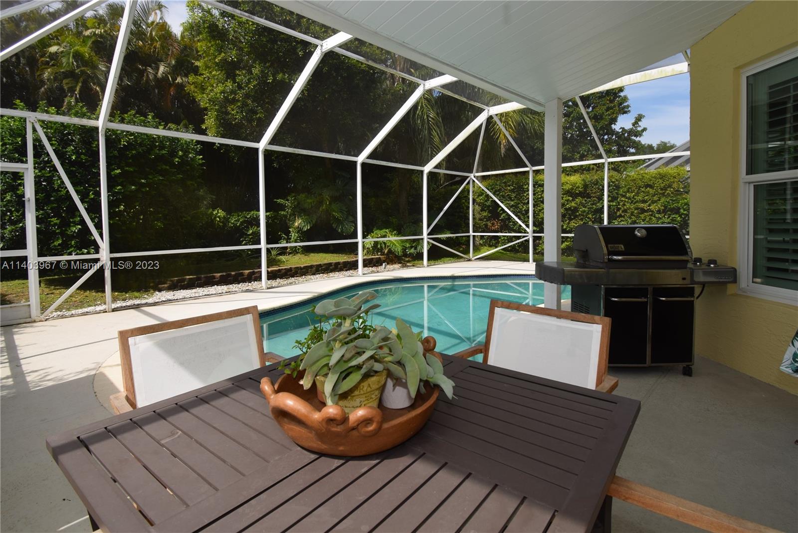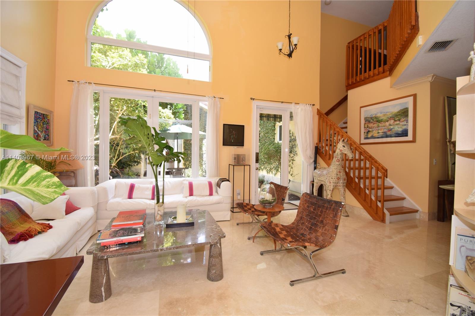 Walk into the gates of this 4 bedroom, 3.5 bath Courtyard home and feel transported into an Italian Villa! Located in the desirable resort-style neighborhood of Mission Bay, every corner of this home has been tastefully renovated with travertine and hardwood floors, custom-made bathrooms with Carrara marble countertops, a gourmet kitchen with quartz countertops, a Subzero refrigerator and plantation shutters. Oversized 2nd-floor master suite with sitting area, 2 walk-in closets, and a spa-like travertine bathroom with jacuzzi. Screened heated pool with no neighbors on the back for true privacy. Charming guest house suite with private entrance. Laundry w/storage, 2021 roof, most windows impact. Mission Bay Club amenities include sports courts, gym, group classes, kids' play area, and more.