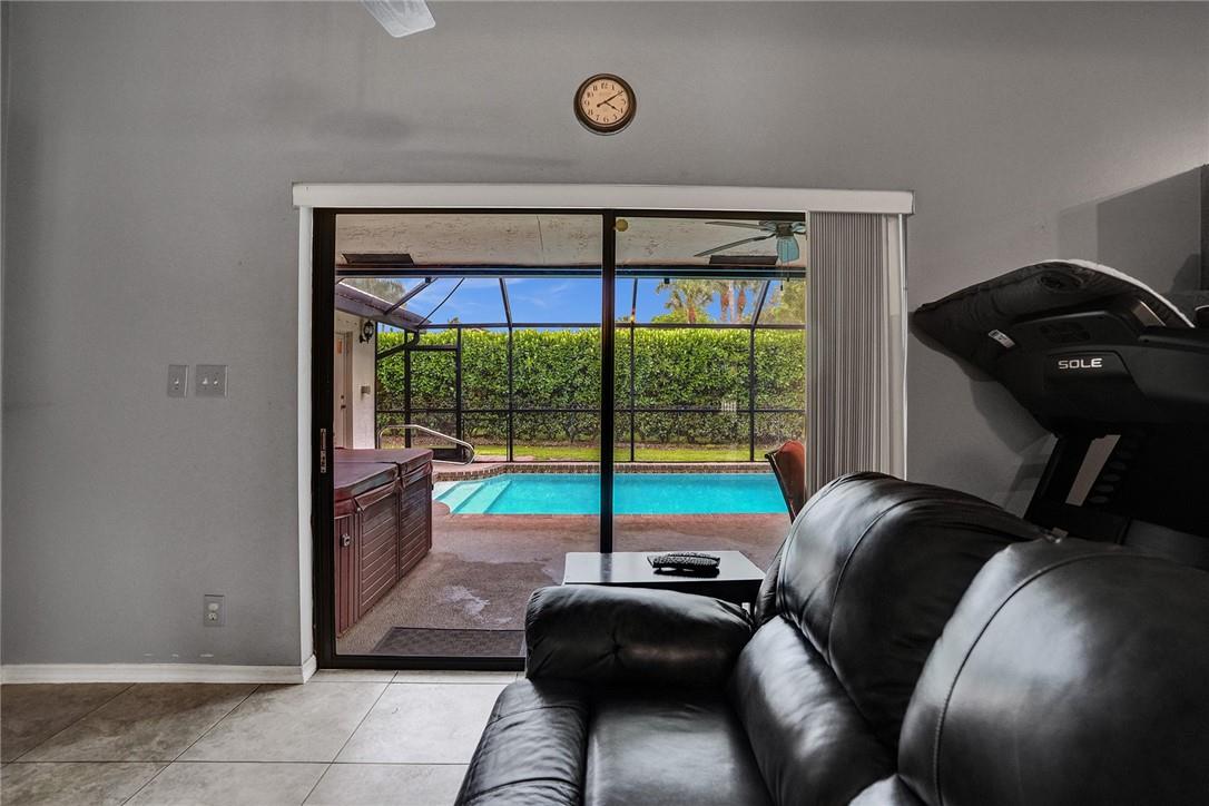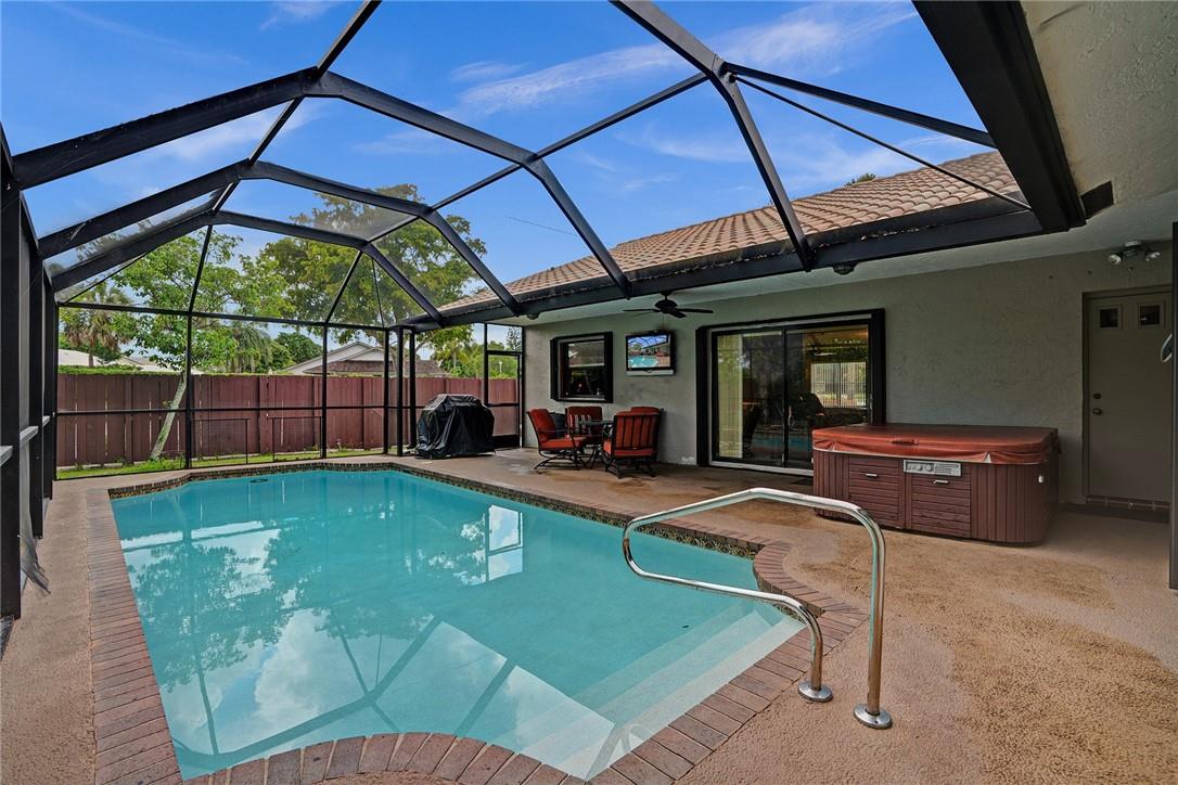 Enjoy a very private poolside oasis in this four bedroom, two bath home in The Crossings of Coral Springs, a conveniently located community close to schools and shopping. Recently painted with a newer AC, sprinkler pump and timer, and recently resurfaced pool, featuring hurricane accordion shutters, a spa, a large pool enclosure, mature landscaping, and a very private backyard. There is plenty of room for family activities, and a home office. The floor plan designed for entertaining, opens to the pool area. The large bedrooms have spacious closets, and both bathrooms can serve as cabana baths for the poolside area. The fourth bedroom currently used as an office with a wet bar open to the entertaining area, can easily convert back to a bedroom.