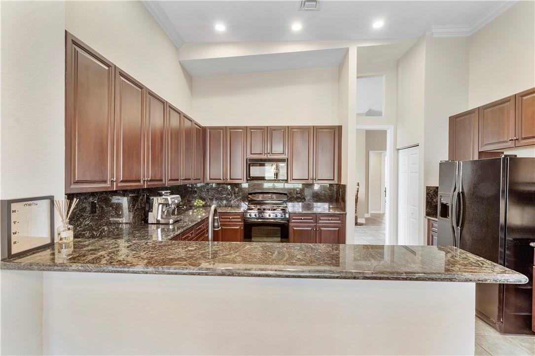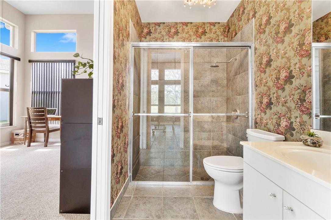 Heron Bay 1 story open floor plan with nearly 3000 square feet under A/C, 4 bedroom split, 1 guest room with en-suite bathroom on one side of house & 2 bedrooms with 2 en-suite bathrooms on the other, (great for Mother in law suite) Master bedroom is at the back of house, large kitchen with granite countertops & cherry cabinets & Gas cooking, Lots of light, Screened private pool & patio overlooking the lake & Nature preserve that stretches for miles, This floorplan is an easy home for entertaining with a huge family room & living room surrounding kitchen, Heron Bay community boasts 2 clubhouses with full service state of the art Gymnasium's & weight room's, Tennis, snack bar, heated pool's, softball, basketball, Walk to parks & shopping and A+ Schools with school bus drop-off