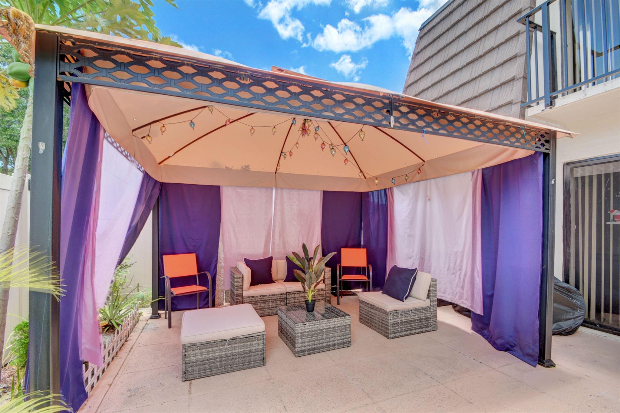 Welcome Home! Very desirable & spacious 2-Bedroom,2.5-Bath Townhouse in prime location:solid concrete construction community by DiVosta.NEW roof (2023), new fence (2022), brand new stove & microwave, refrigerator & dishwasher (2019), washer & dryer (2021), with private fenced patio, 2-assigned parking spots, & half bath on first floor & central vacuum. Most rooms freshly painted. Large sliding glass doors in living area & kitchen open onto the private patio. Each bedroom has its own en-suite bathroom and balcony. HOA includes basic cable, water, roof & building insurance,no special assessments,no rental restrictions,pets ok (<30lbs). This unit is located right across from community pool and within walking distance to tennis courts, walking trails and more.