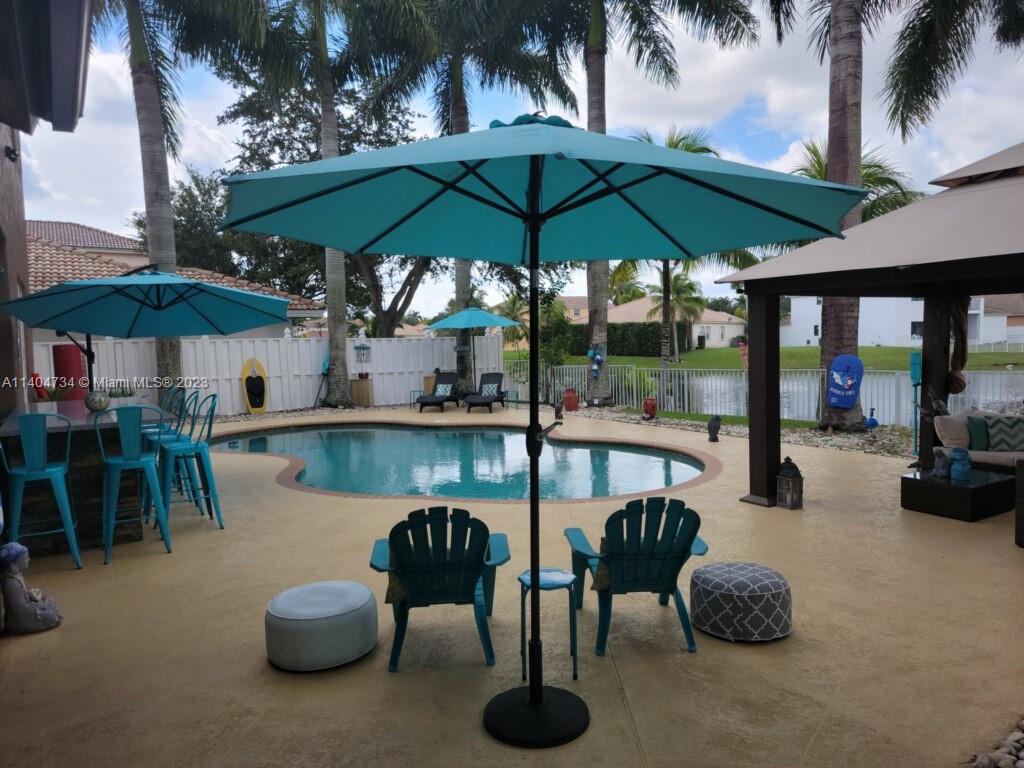 Gorgeous home in Windsor Palms, New permitted CPVC Pipping in entire home done in 2022. Modern kitchen and bathrooms. Large bedrooms. Resort style yard with outdoor bar overlooking beautiful royal palms, pool and lake. New water heater, new garage door opener. Easy to show and move in ready. Wonderful neighbors!!! Don't delay to see this perfect home.