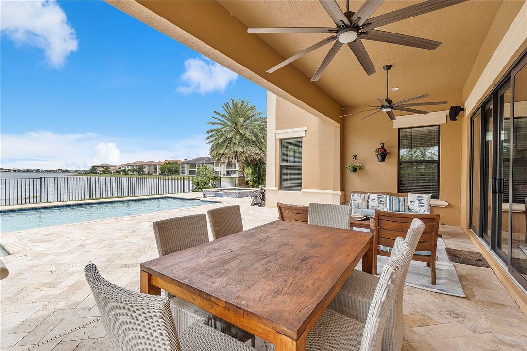 Stunning & spacious 6 bed+office+bonus room, 4.5 bath Barrington model w/3 car garage, 1/2 acre corner yard, pool w/spa & spectacular long lake views! This contemporary masterpiece w/ large living areas has over 5300 sq ft. Upgraded & open Kitchen w/ stainless range hood, gas stovetop, oversize fridge, double oven, large center Island & walk in pantry. Custom built-ins in dining room. Upstairs Master Suite w/2 Custom built in walk in closets w/ sitting area. Wood staircase. Marble & wood floors, upgraded fixtures, fans & window treatments plus impact glass throughout. Must see to believe this amazing home w/ volume ceilings, crown moulding, natural gas & fenced backyard, Maintenance includes lawn care. Enjoy amenities including resort pool, clubhouse, gym, tennis & more!