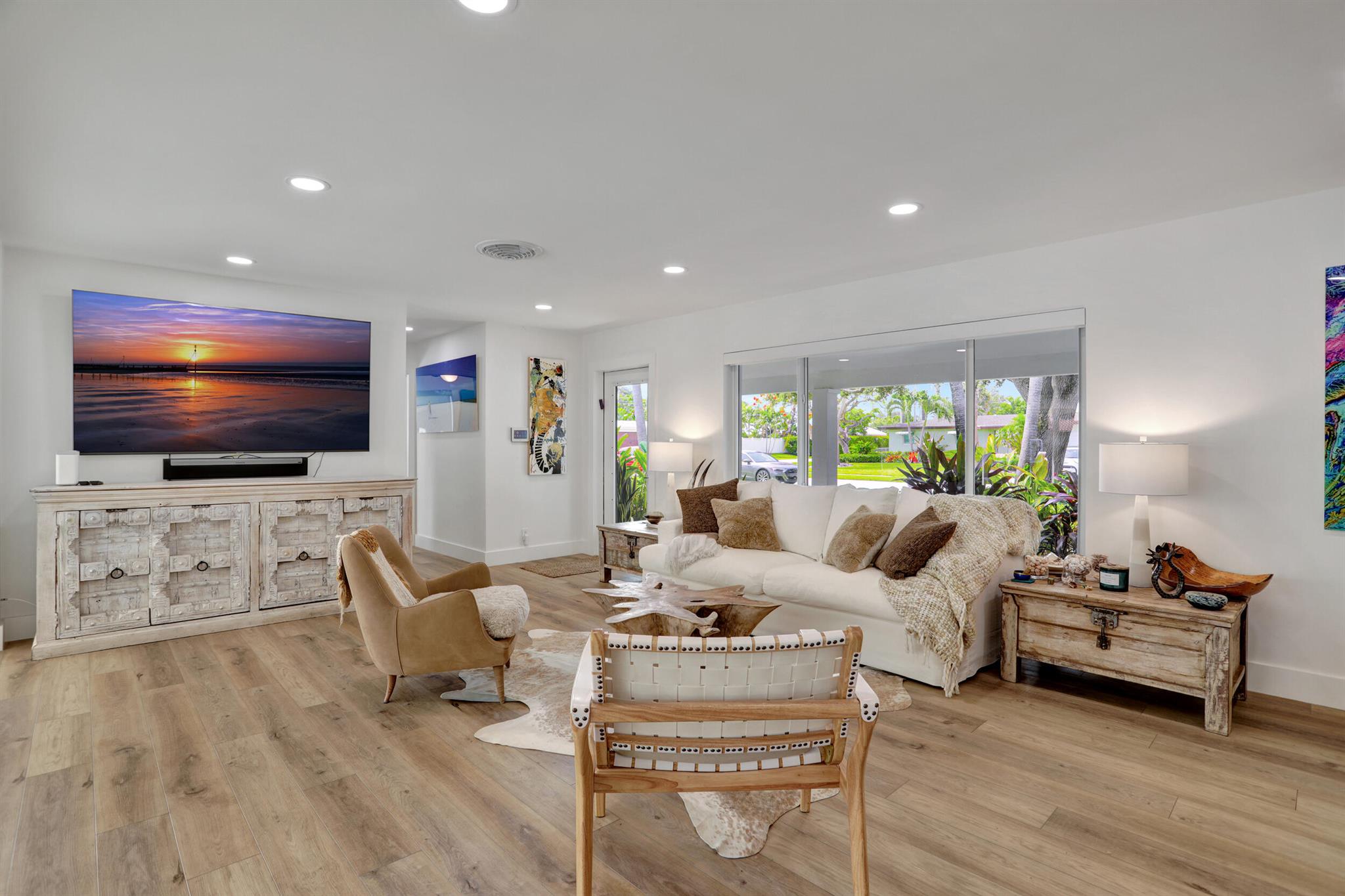 MOTIVATED SELLER! NO HOA. Beautifully remodeled home tucked away in Royal Oak Hills East Boca. ! As you walk in this exquisite home, the first reaction is that you feel you're on vacation in St Barths. This 3 bedroom and 2 full bathrooms will take your breath away when you enter the home. This house features: Open Floor Plan,Split floor plan, remodeled Gourmet Kitchen with spacious kitchen island and quartz countertops, brand new wine cooler in kitchen and Washer/dryer 2023. New Garage Epoxy Floors. Impact doors and windows throughout, Large plank luxury vinyl floors, New Custom Shades throughout. Outdoors feature: Outdoor and Indoor of home repainted. Extensive outdoor covered patio sitting area overlooking the pool and landscaping -plenty of room for a party of 50! Roof 8 years old.