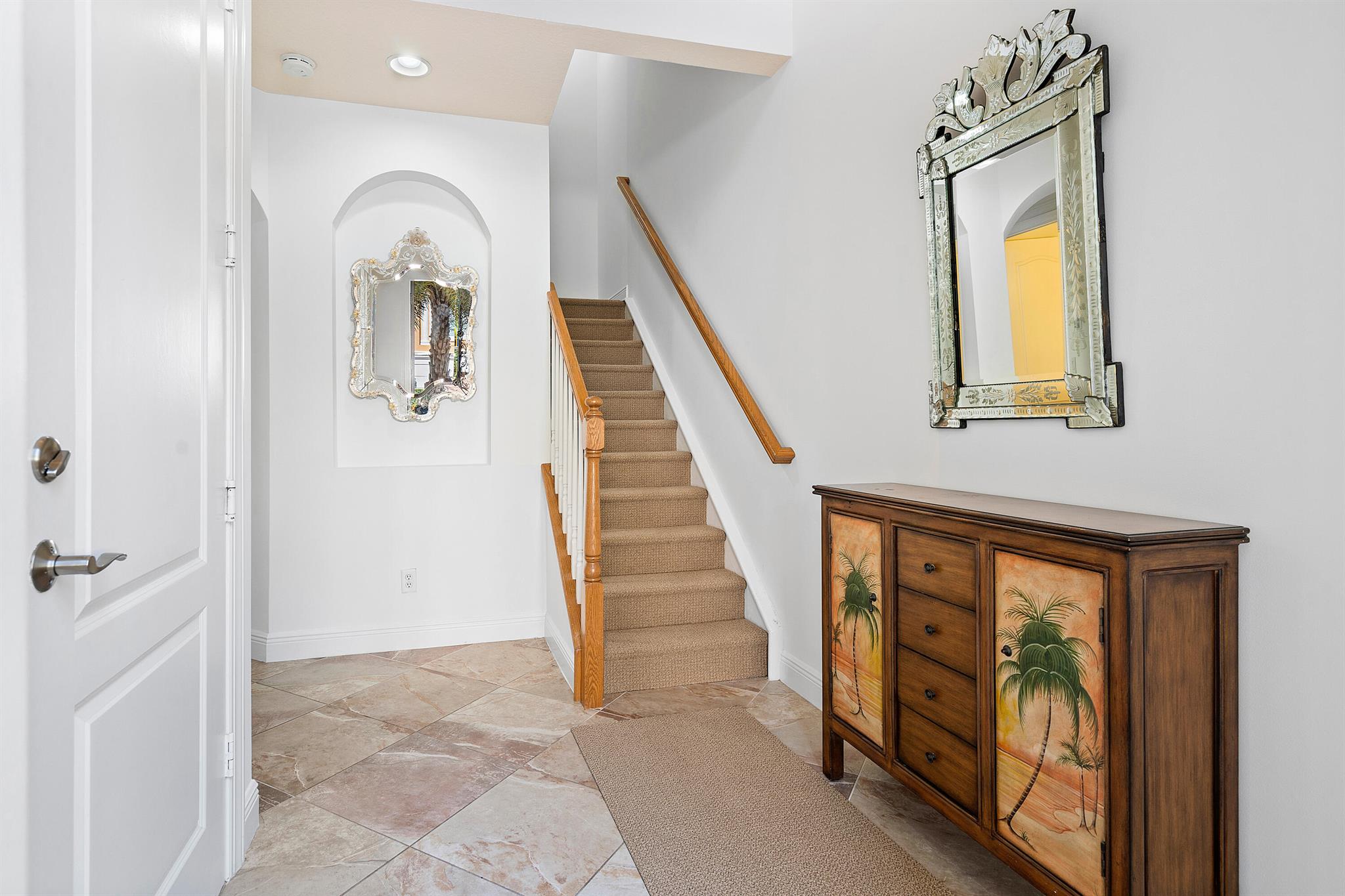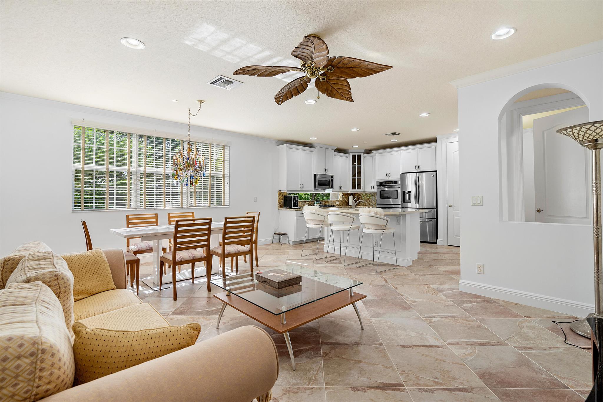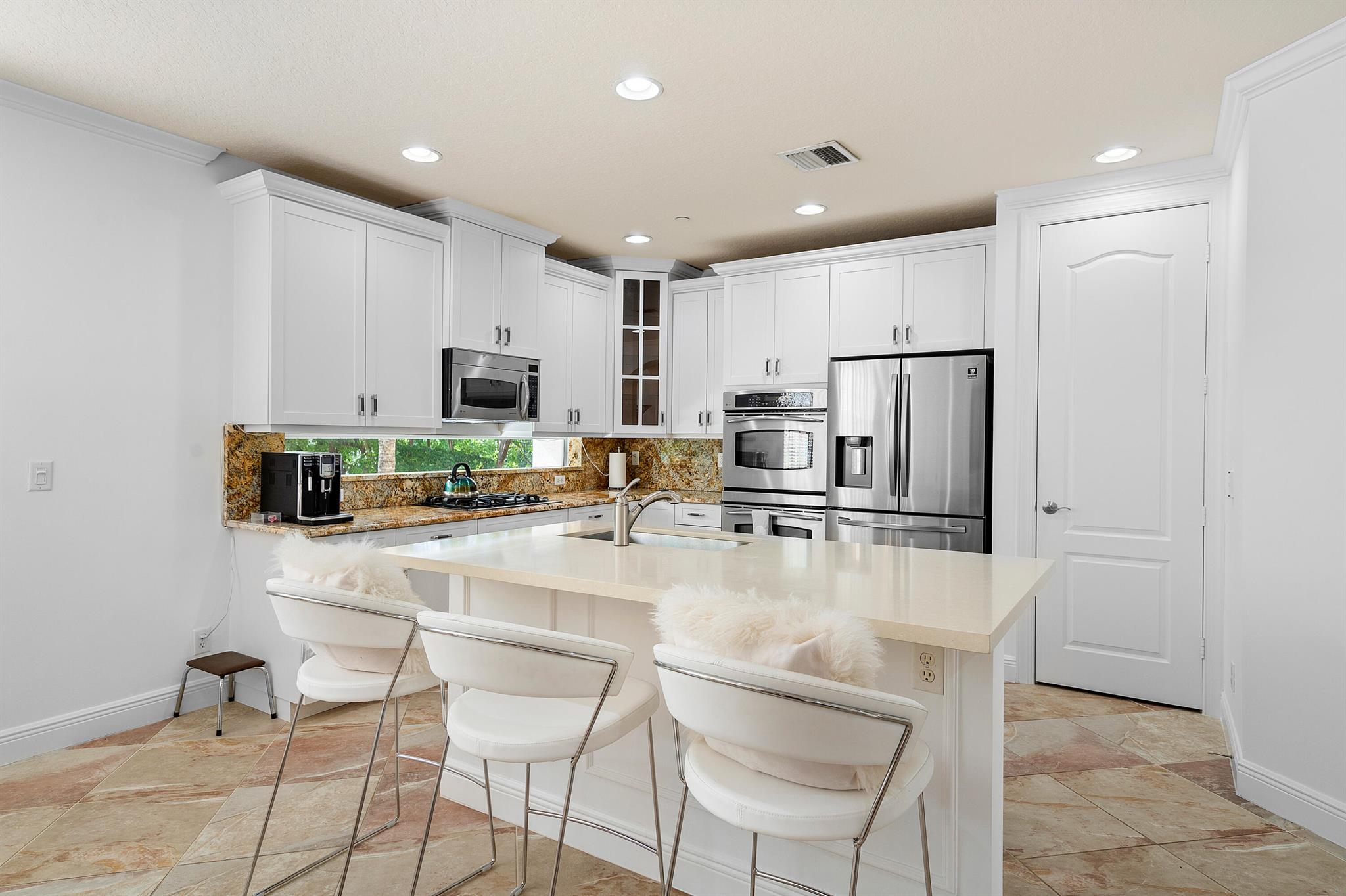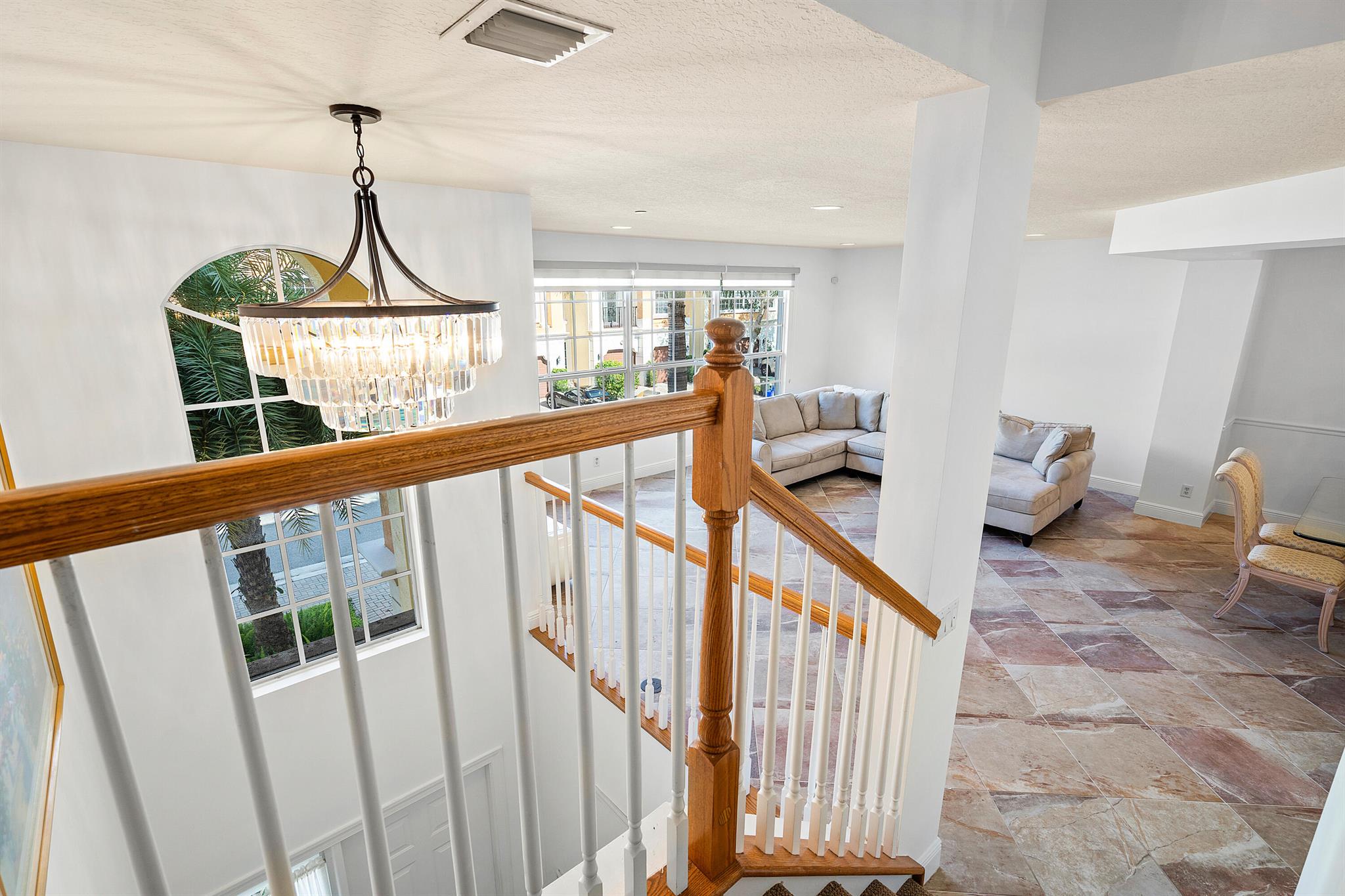 Introducing an exquisite 3-Story townhouse w/elevator that offers a perfect combination of elegance & functionality. Located in a desirable neighborhood w/close proximity to shopping & entertainment. This townhome is a rare find & features 4 beds, 3 full & 2 1/2 baths. Impact glass, newly painted, renovated kitchen, & new carpeting. Enter into the foyer & you will find a private guest suite, full bath & closet. Ascend to the main level which showcases a spacious living room & family room allowing for separate areas to relax & unwind. The renovated kitchen seamlessly connects to the family room & creates perfect space to socialize & host gatherings. With modern appliances, ample counter space, stylish cabinetry, & breakfast bar, this kitchen is a haven for culinary enthusiasts.