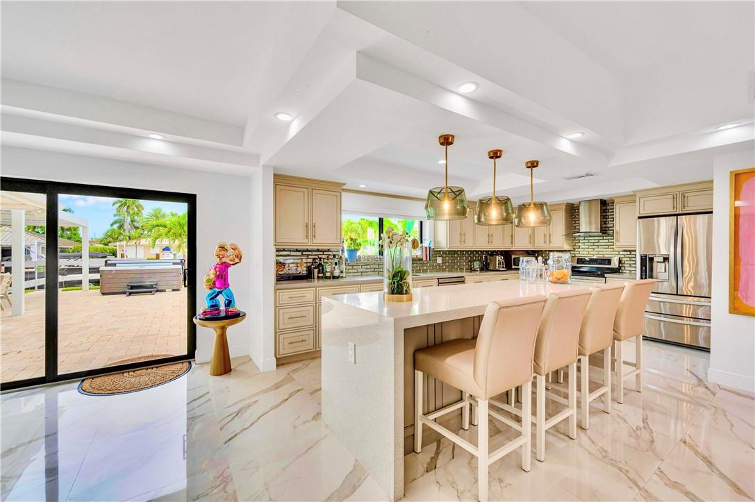 Introducing an exquisite waterfront residence in Pompano Beach's prestigious Harbor Villages. This impeccably remodeled 3-bed, 3-bath property boasts unparalleled elegance. Marvel at the flawless marble flooring, the sleek Quartz countertops, and throughout impact windows that bathe each room in natural light. Step into the backyard oasis adorned with beautiful pavers and the recently installed pergola that adds a touch of charm and provides the perfect setting for entertaining with family and friends. Featuring 80 FT of water frontage, a brand-new dock, sea wall, and boat lift. Newer A/C system, stainless steel appliances, treated Picote coating on the pipes, this home offers perfection in every aspect. Minutes to restaurants, shops, entertainment, golfing, fitness centers and the beach.
