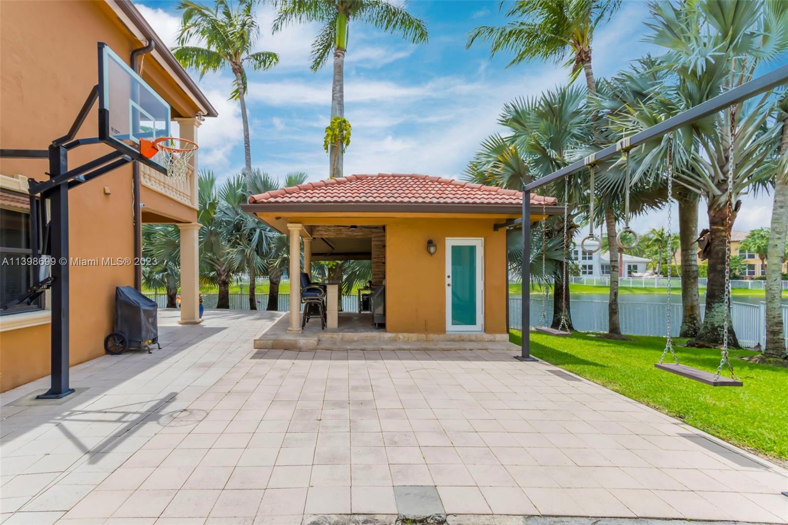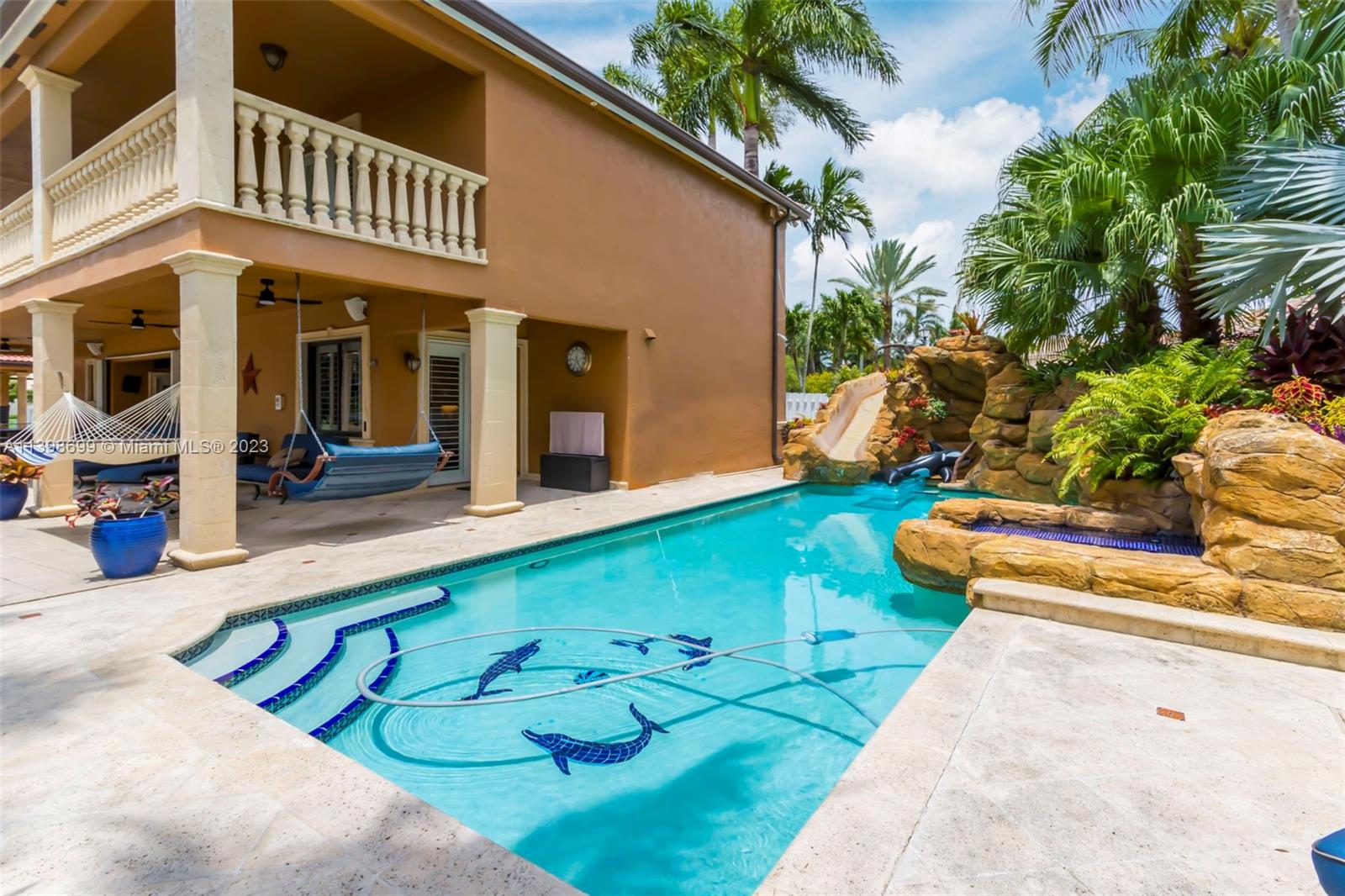 MAGNIFICENT 5 BEDROOM/4.5 BATH HOME located in manned gated community of Windsor Palms combines luxury & entertainment, providing you with the ultimate resort-like experience right at home! ALL NEW IMPACT WINDOWS 2023! FULL HOME GENERATOR! FIRST FLOOR BEDROOM WITH ENSUITE. This home offers a backyard oasis with fully automated gorgeous sparkling pool & spa with slide. Custom outdoor commercial Kitchen & Bar, a culinary enthusiast's dream, with full bath. Inside the Open and airy foyer with volume ceiling. Oversized Chef's Kitchen w/large island & Jenn Aire appliances. Upstairs the large Primary bedroom with ensuite has an expansive covered balcony overlooking the backyard, 3 more Bedrooms and Full Bath. All upstairs bedrooms have custom closet built-ins.