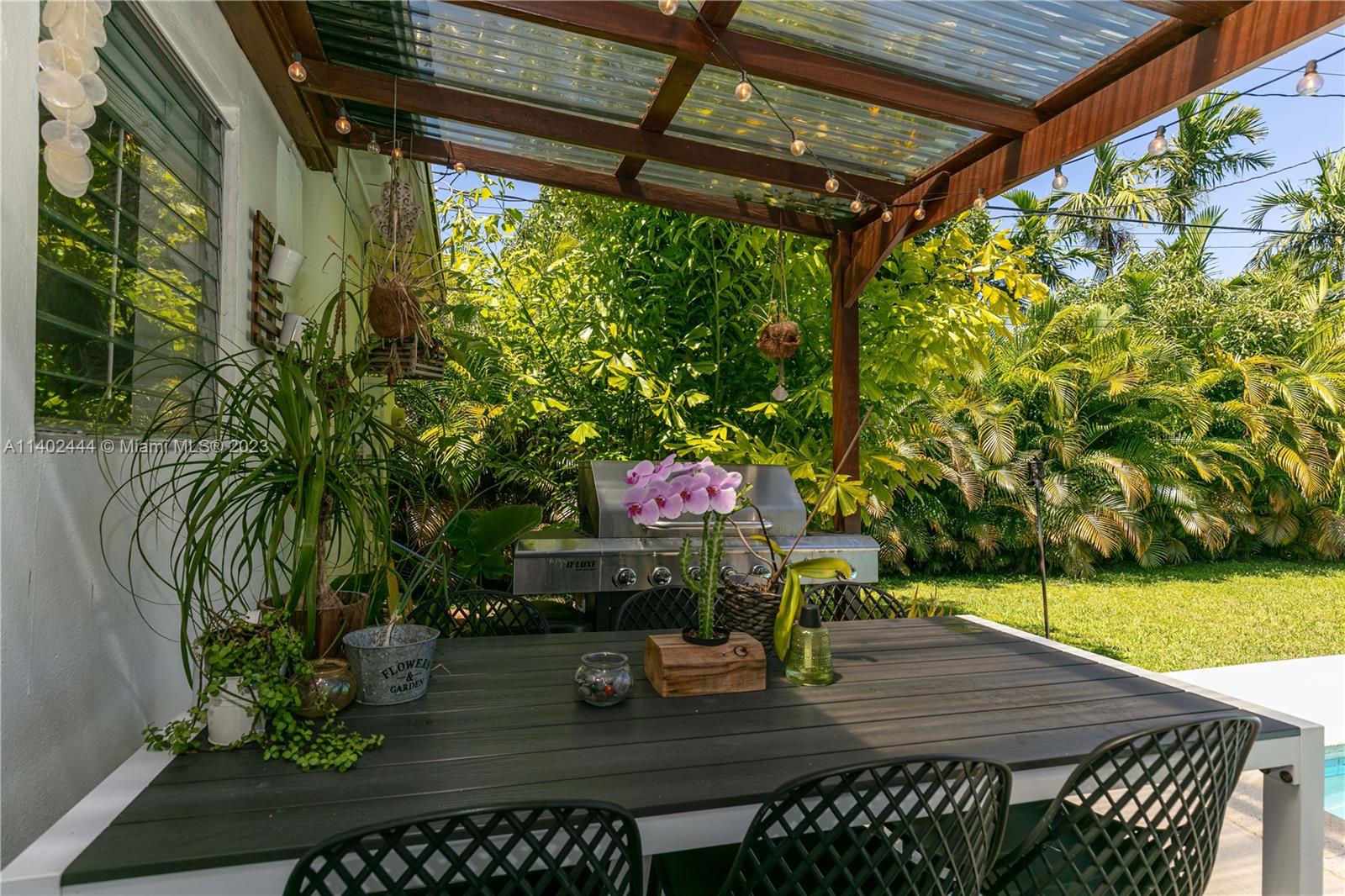 Charming & with lots of character 3/2 home with a pool and a relaxing lounge area. The property is updated and ready to move-in with the furniture if you desire. The house features vinyl floors throughout, living & dining, kitchen & bathroom, master bedroom, laundry room and a carport. This property contain a large fenced backyard with a pool, beautiful trees , plants and a great landscaping.