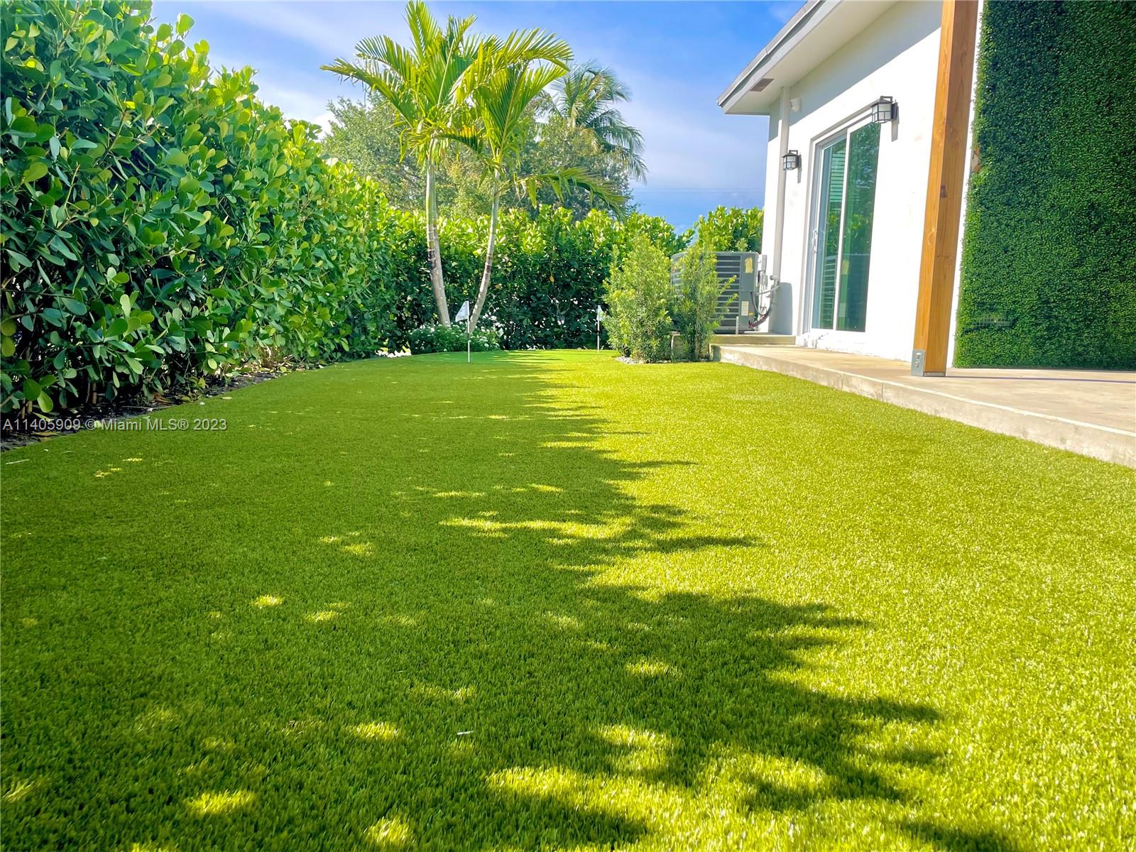Discover a breathtaking newly constructed home from 2022. This stunning residence showcases a modern open kitchen design with custom cabinets, quartz countertops, and Samsung stainless steel appliances. volume ceilings 10ft High, impact windows, and tile flooring with 5-inch baseboards, elegance permeates every room. The primary suite features a walk-in closet, double vanity, and backyard access. Outside, enjoy a revamped backyard with turf and a putting area, surrounded by lush landscaping. Complete with a RING alarm system and an excellent location for easy commuting and access to major highways. Don't miss this must-see home! This property has no flood risk in the Flood Factor™ model