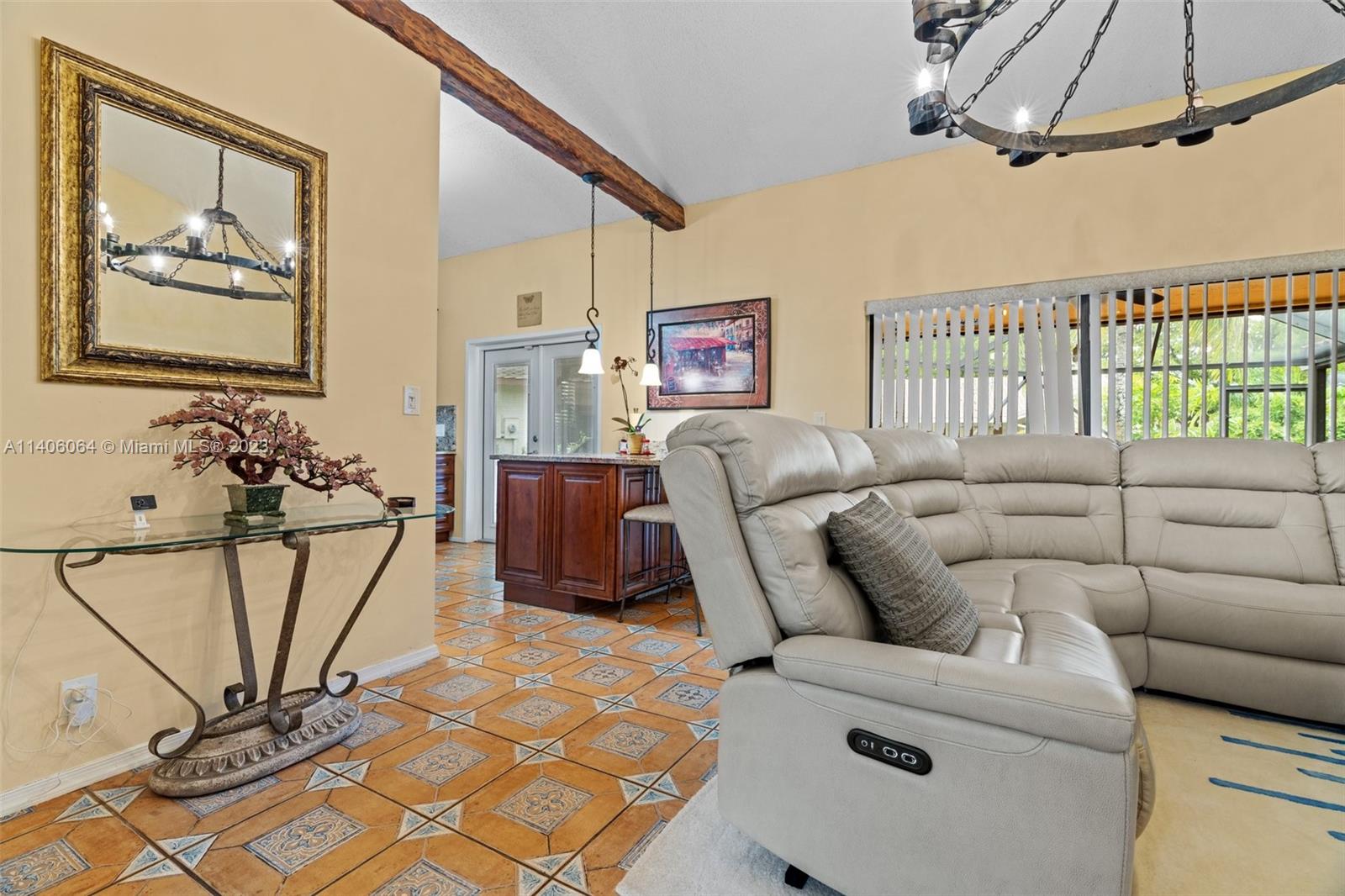 This stunning 4 bedroom, 2 bathroom single story family home is located in the highly desirable neighborhood of The Crossings. The home features beautiful Italian hand painted porcelain tiles throughout, while the kitchen features real wood cabinetry, with 1.25” granite counter tops and full backsplash with 4 year old Samsung appliances. The bathrooms are equally as impressive, with porcelain tile and modern finishes. The roof, AC, and water heater are all relatively new, offering peace of mind to the lucky new owners. In addition, the home comes equipped with Hurricane Panels and a Hurricane proof garage door. The backyard is a tropical oasis, complete with Mango, Coconut, and sugar cane trees. FOR SHOWINGS CONTACT LISTING AGENT!