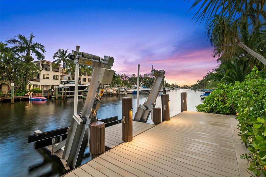 Welcome to your waterfront paradise in the desirable Victoria Park neighborhood! Imagine a lush, private property with two gated entrances situated on a quiet cul-de-sac. Picture views of the canal from your backyard oasis featuring an expansive covered area for dining and travertine pavers surrounding the saltwater pool. Have peace of mind with a newly raised 75' seawall and 50' Aztec dock with state-of-the-art 20,000 boat lift. With no fixed bridges and deep canal access, you can enjoy carefree boating any time. Inside you'll find an open living room with updated lighting, a wet bar, and a contemporary staircase leading up to the primary suite balcony overlooking this tranquil outdoor space. 16kw whole home generator powered by natural gas. Minutes to the beaches & Las Olas Blvd.