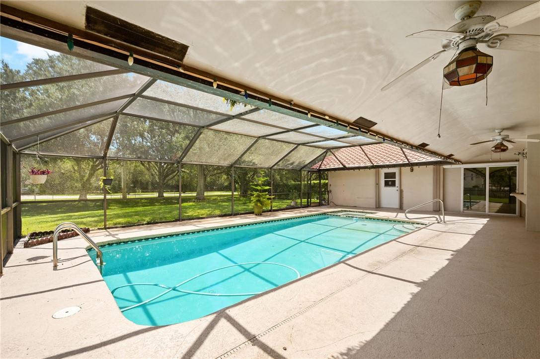 IVANHOE ESTATES IS A SMALL, VERY QUIET 72 HOME FAMILY COMMUNITY WITH NO THROUGH STREETS. THIS HOME HAS A VERY BIG OPEN SPACE YARD FOR KIDS PLAYSETS. 2009 TILE ROOF. 40 KILOWATT WHOLE HOUSE GENERATOR. SOLAR PANELS-ELECTRIC & WATER HEATER. IMPACT-ACCORDION-ROLL DOWN SHUTTERS. 500 GALLON PROPANE GAS TANK 70% FULL. 40KW GENERATOR. SCREENED 45X31 PATIO/POOL/SPA. CARRIER AC 2018. KITCHEN OPEN TO FAMILY ROOM. SPLIT BEDROOM FLOOR PLAN. LAMINATE FLOORING ALL BEDROOMS-FAMILY ROOM. VAULTED WOOD BEAM CEILINGS. 2ND BATHROOM IS CABANA BATH. MASTER, 3RD BATH & FRONT HALLWAY HANDICAPPED ACCESSABLE. 2ND BEDROOM HAS BIG WALKIN CLOSET. KITCHEN WITH REAL WOOD CABINETS AND BIG 8X3.5 COUNTER TO FAMILY ROOM. OVERSIZED 2 CAR GARAGE. SLIDING GLASS DOORS IN MASTER, DINING & FAMILY ROOM TO PATIO AND POOL.
