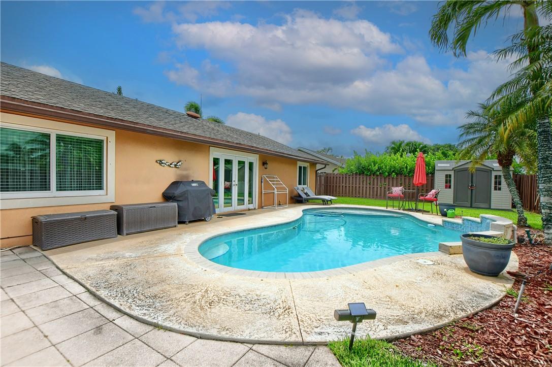 Great opportunity, 3/2 pool and waterfront home with garage in American Homes community. Impact windows, Tiki hut in your private fenced in backyard and with a shed. Community has newly built pool, pickleball/tennis courts, basketball courts, a covered pavilion all on a 3 acre playground with picnic tables. Good school district