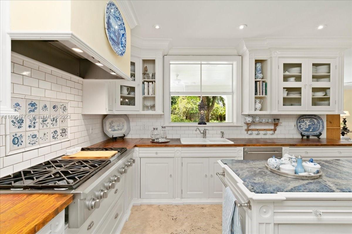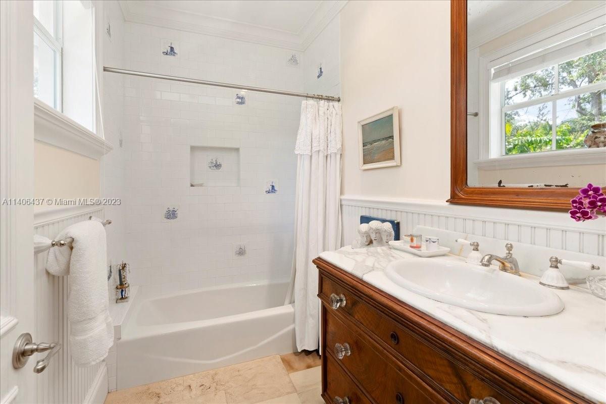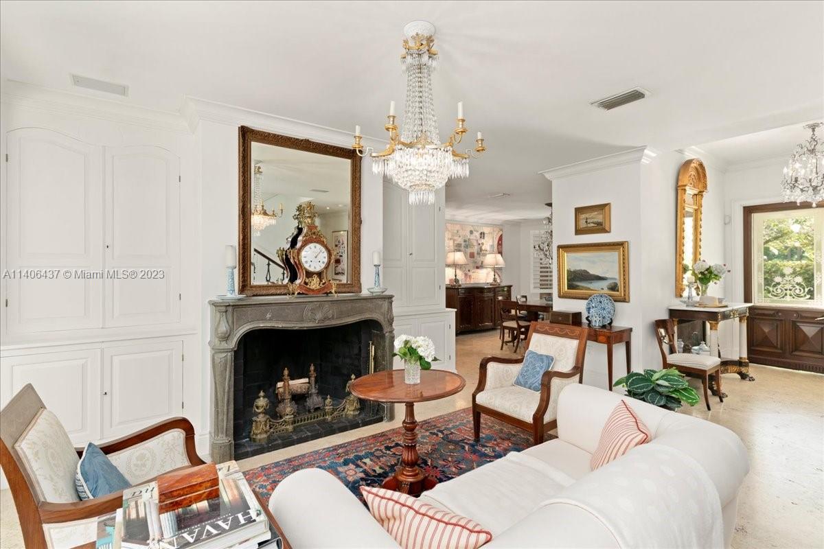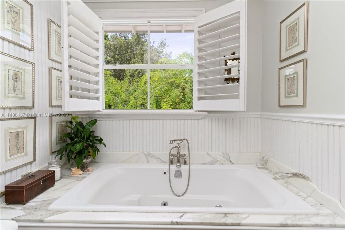 Introducing one-of-a-kind Anglo-Caribbean style, 2-story home in the highly desired High Pines. Nestled in tropical foliage of nearly 10,000 sqft lot, this home offers a timeless style that is both fresh & classic with refined architectural details which are a must see. Ground floor features sizable office, guest room with en-suite bath, living room with fireplace, charming dining room & family room with access to outdoor loggia overlooking pool and garden, offering an idyllic scene for alfresco entertainment. Gourmet kitchen is equipped with top-of-the-line appliances showcasing center island with lapis lazuli marble top. Upstairs Primary suite features private balcony overlooking pool and spa-like en-suite bathroom. Additional bedrooms are oversized with balconies overlooking the garden.