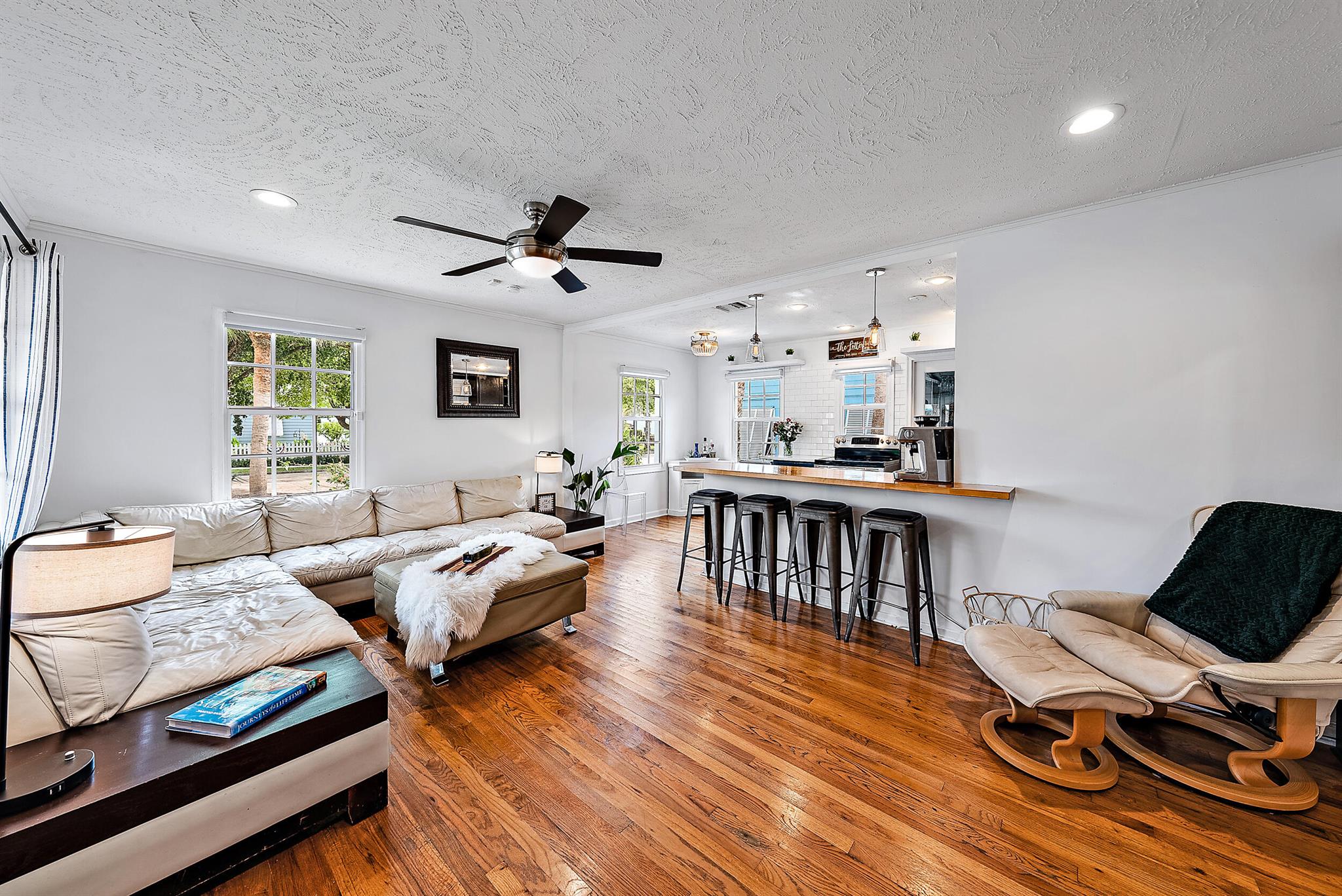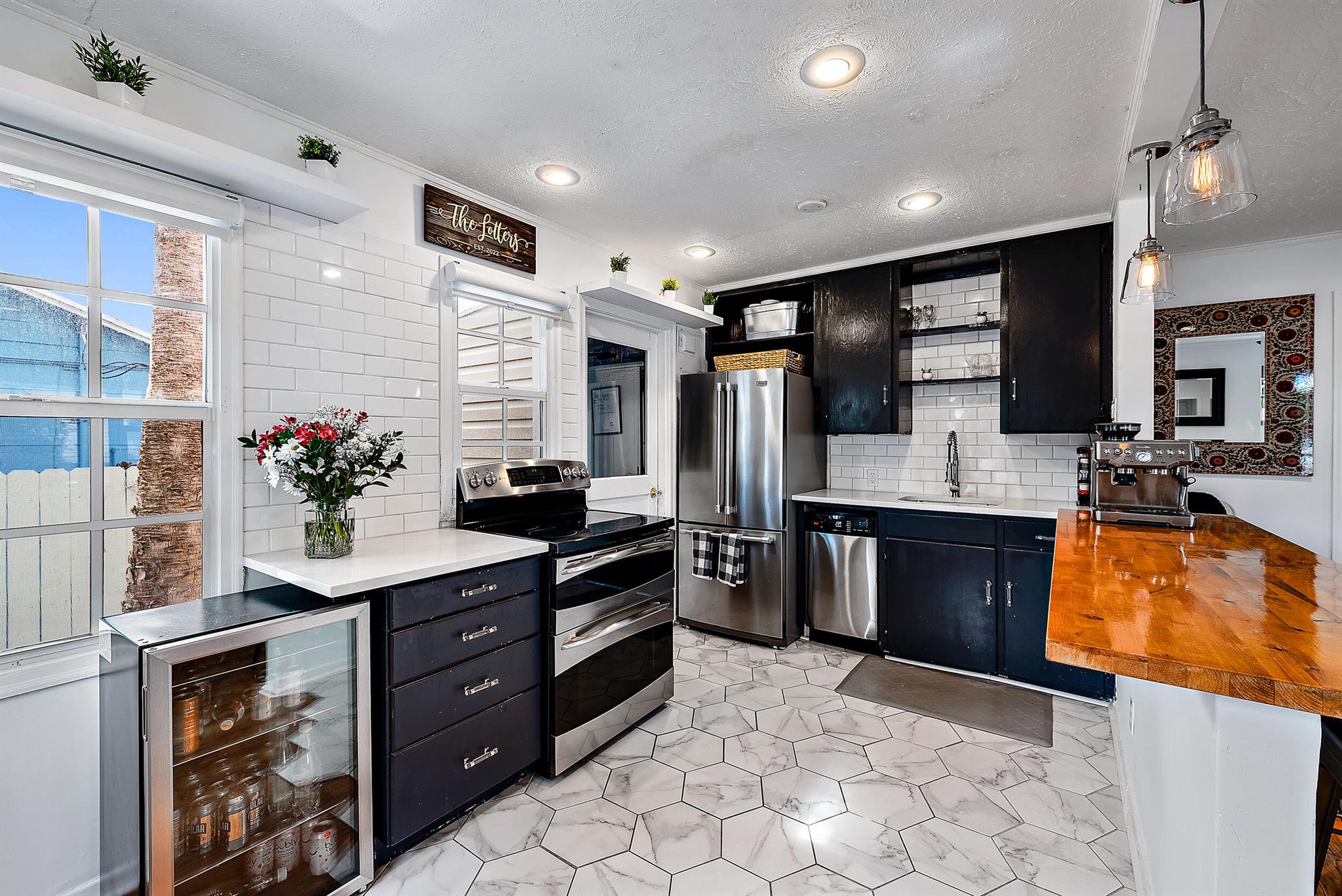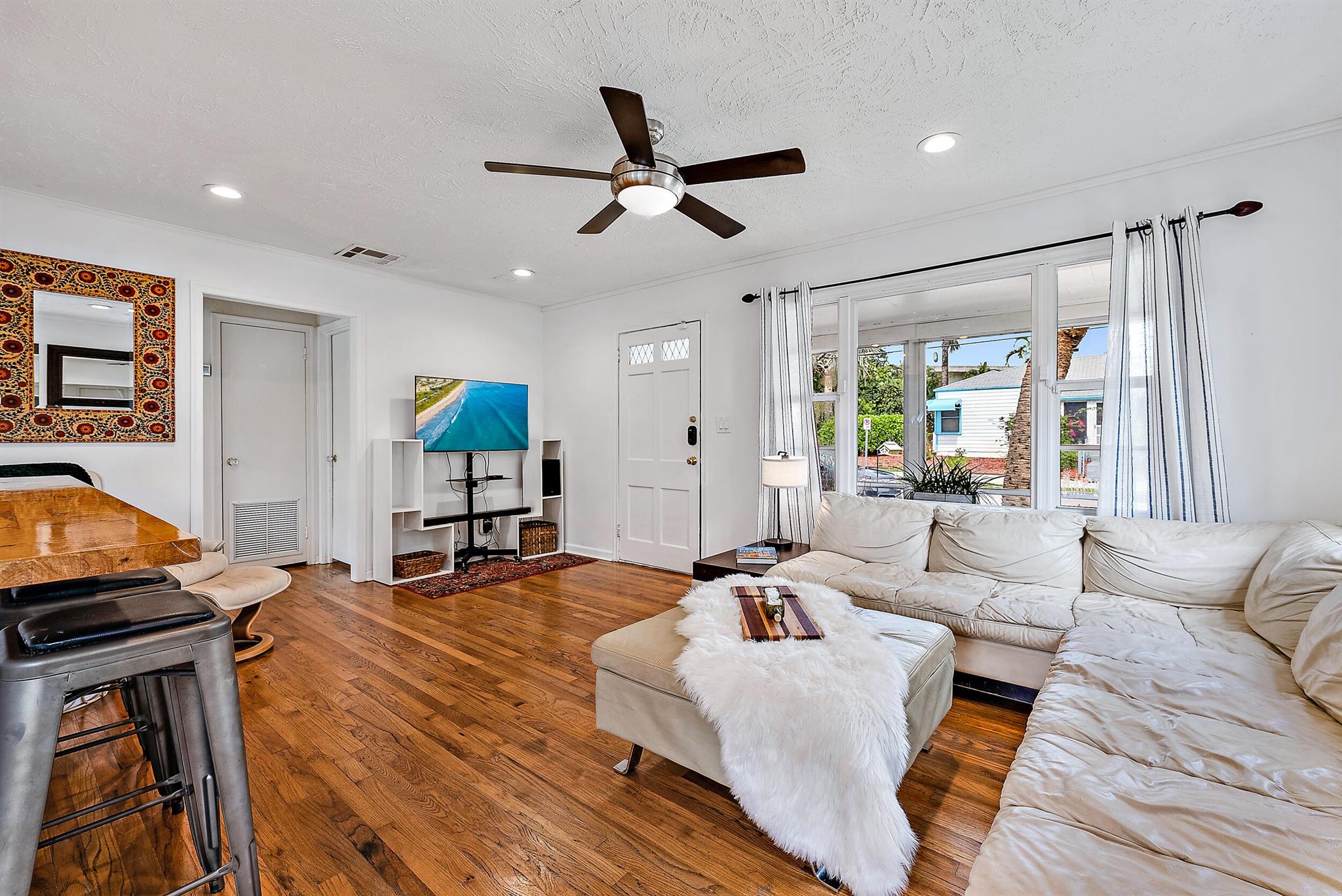 This charming home located in Pineapple Park is a rare find. Brand New AC 2023 and roof (November 2022). The home has an open floor plan with two bedrooms one bathroom. The kitchen is recently updated with pendant lighting, wine fridge, quartz & large butcher block island. Tons of original Old Florida charm with Dade Co. pine hardwood floors and beautiful tropical landscaping. The fenced in back yard is expansive and private, perfect for entertaining.This location is less than a mile from Rosemary Square and PBI airport. Its a short walk to Grandview Market, numerous restaurants, Howard Park, and all that Rosemary Square has to offer. Zoned for Palm Beach Elementary School District.