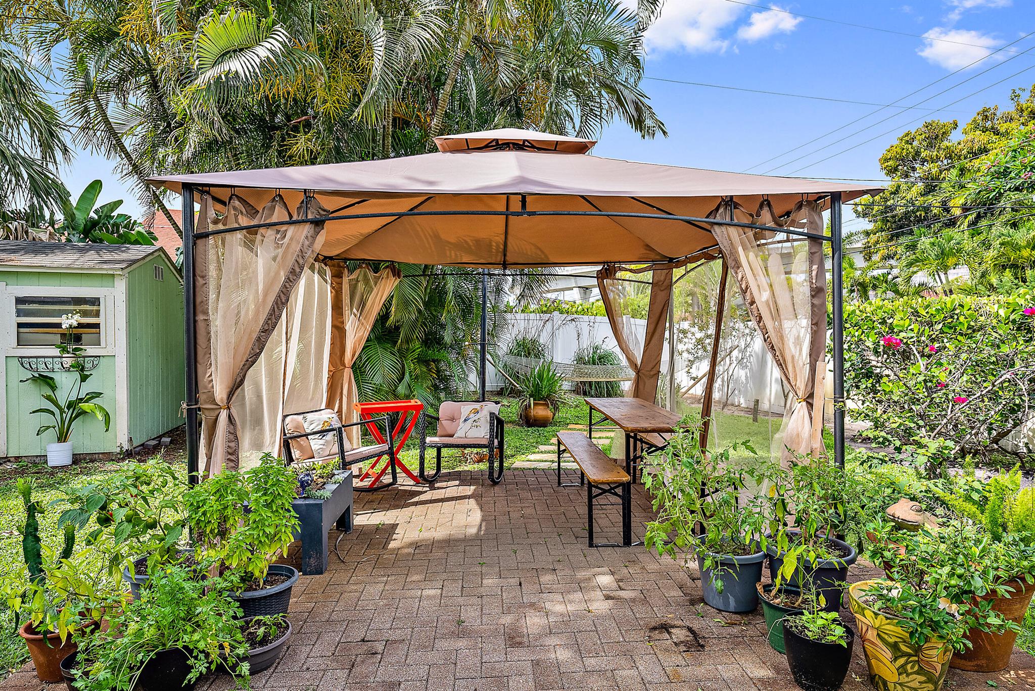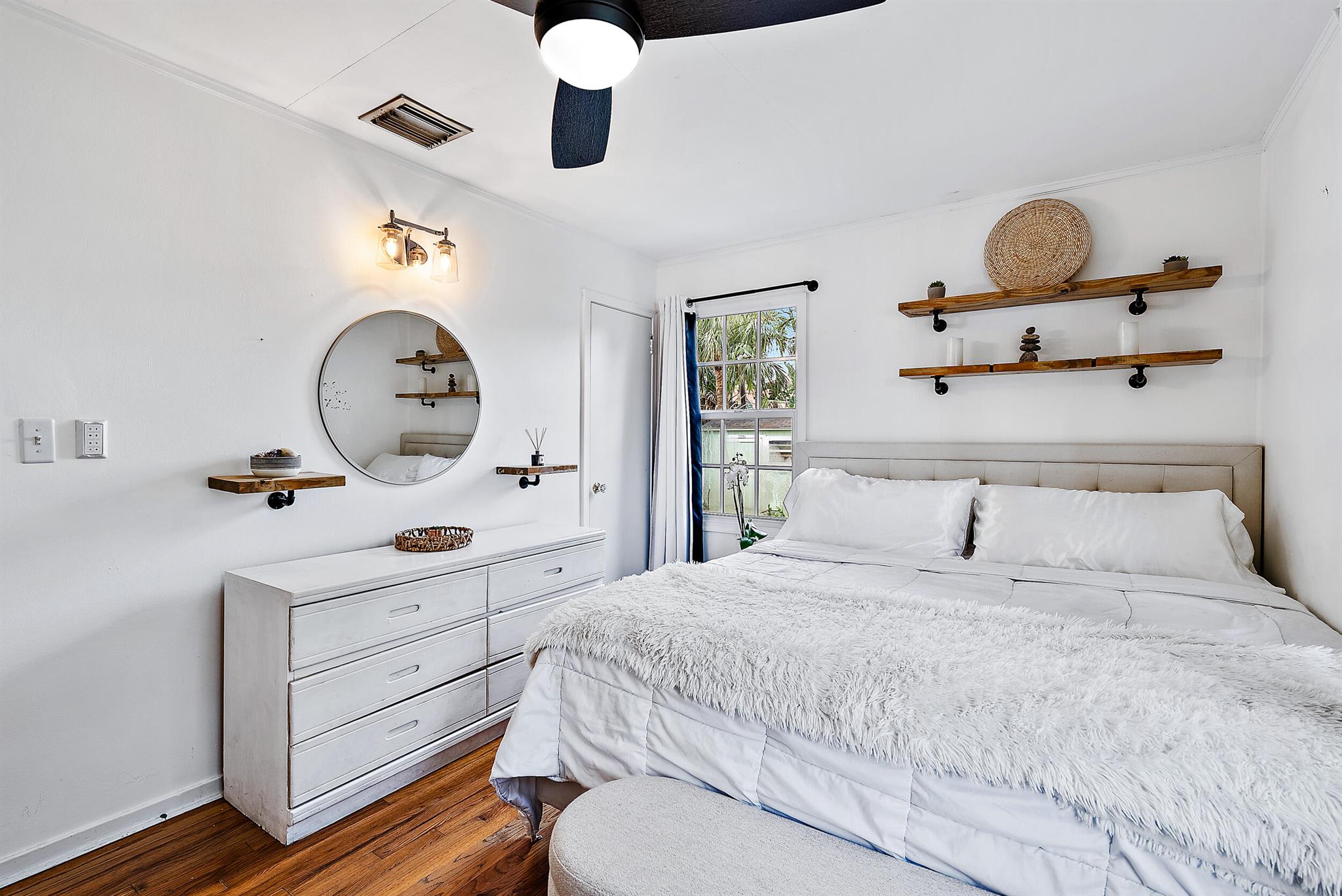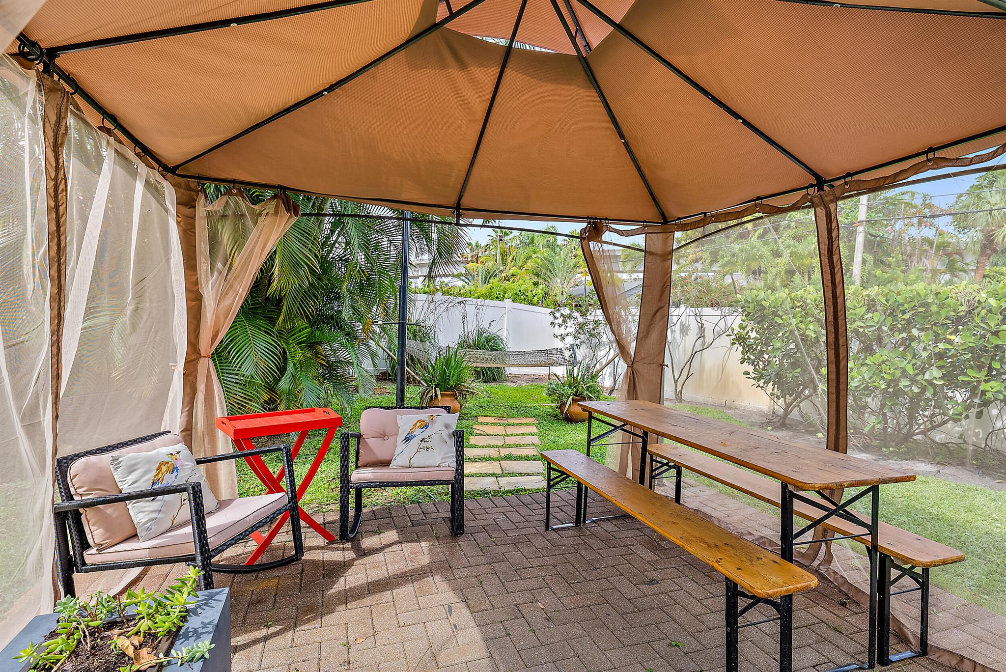 This charming home located in Pineapple Park is a rare find. Brand New AC 2023 and roof (November 2022). The home has an open floor plan with two bedrooms one bathroom. The kitchen is recently updated with pendant lighting, wine fridge, quartz & large butcher block island. Tons of original Old Florida charm with Dade Co. pine hardwood floors and beautiful tropical landscaping. The fenced in back yard is expansive and private, perfect for entertaining.This location is less than a mile from Rosemary Square and PBI airport. Its a short walk to Grandview Market, numerous restaurants, Howard Park, and all that Rosemary Square has to offer. Zoned for Palm Beach Elementary School District.