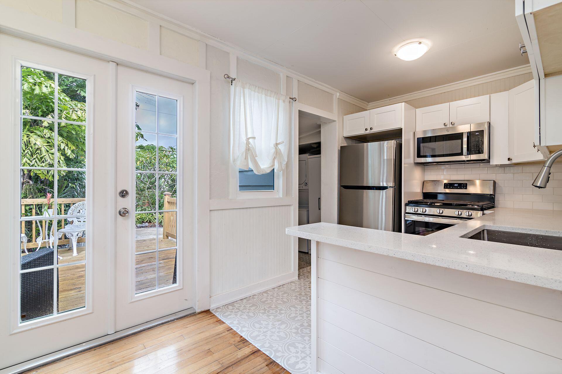 1940's Key West Bungalow. Welcome to 845 Sunset Road, a sweet little charmer perched high on one of the best blocks in the heart of Flamingo Park. With a 2 bedroom, 1 bath main house and a delightful guest cottage featuring a kitchenette and full bath, this cutie incorporates a cozy screened in sitting porch, original 1940's hardwood floors, a new metal roof, impact glass, a brand-new kitchen and sits on a 125 ft extra deep lot with plenty of room for pool or expansion. Walk or bicycle to Grandview Market, Rosemary Square and all booming West Palm Beach has to offer. Per historic department 1596 square feet can be added to this property.