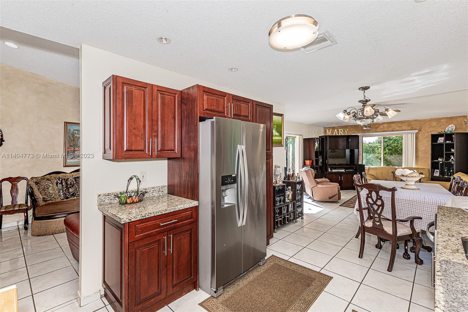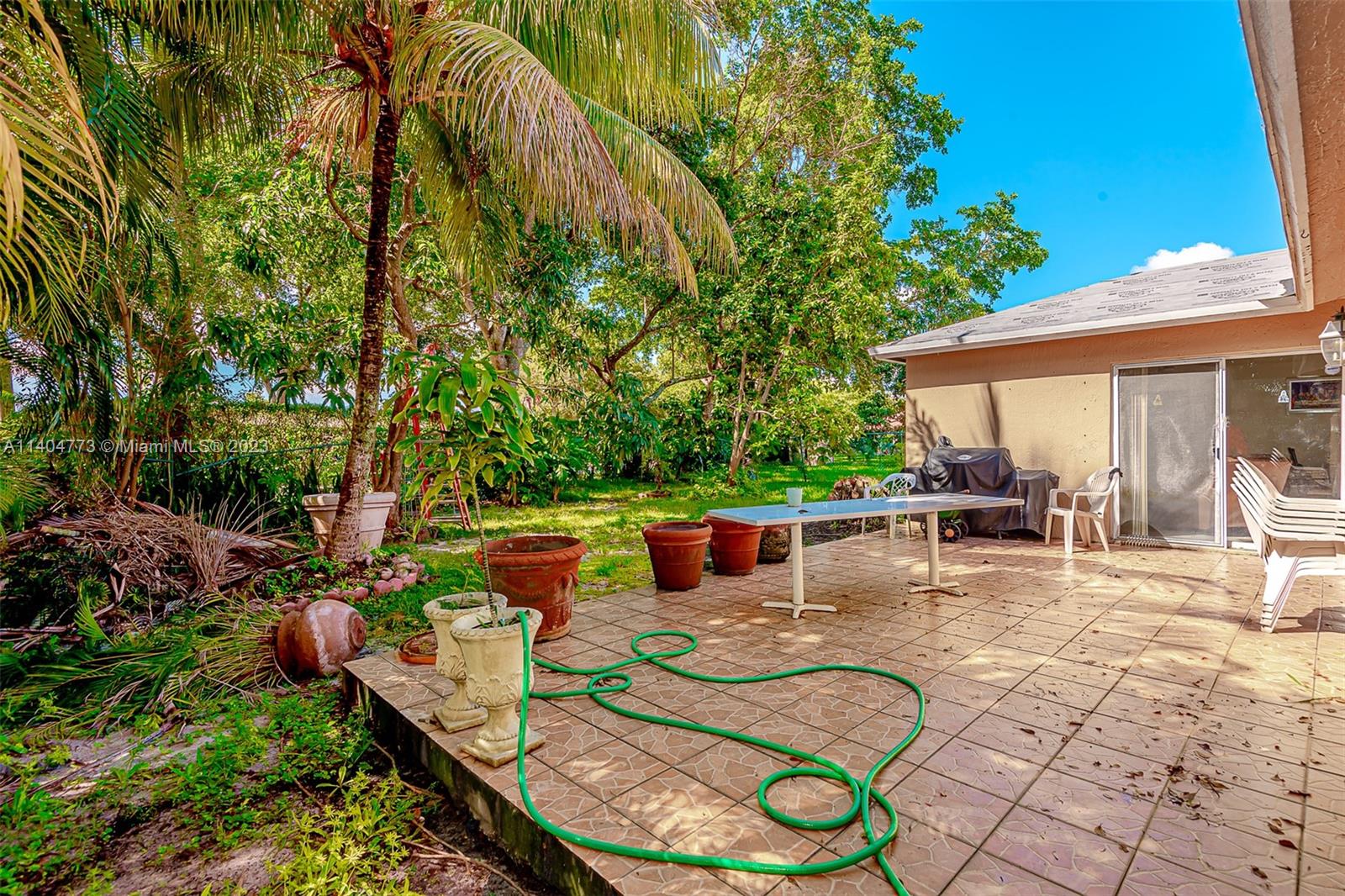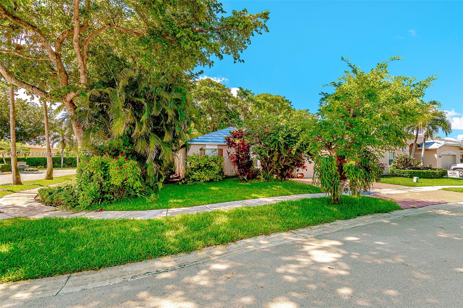 Welcome to this beautiful home seats on a large and private corner lot with fruit trees and space for a pool, featuring a formal living space, three bedrooms, two bathrooms, renovated kitchen with stainless steel appliances open to a family room with plenty of light, and an outdoor terrace gives just an excuse to host parties and family celebrations, in addition, a one car garage and a Brand New Tile Roof. Very low HOA. Easy commute to I75 and Turnpike.