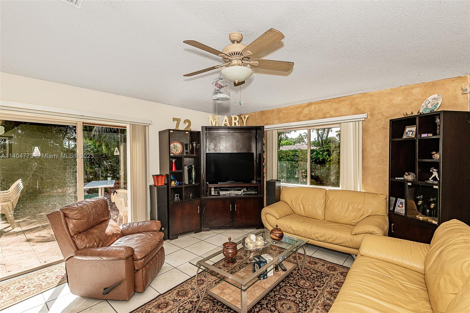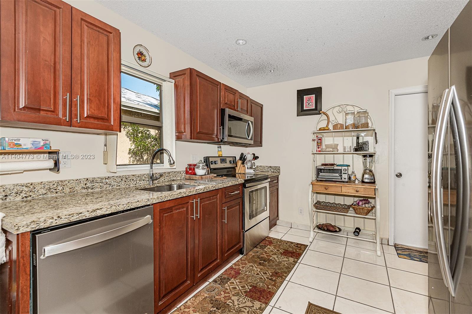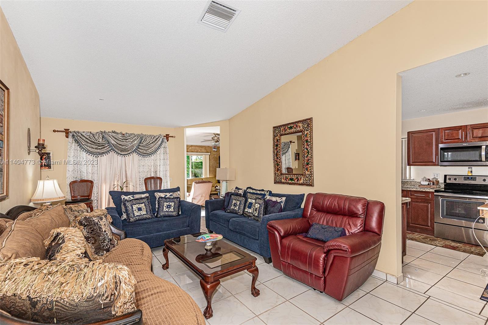 Welcome to this beautiful home seats on a large and private corner lot with fruit trees and space for a pool, featuring a formal living space, three bedrooms, two bathrooms, renovated kitchen with stainless steel appliances open to a family room with plenty of light, and an outdoor terrace gives just an excuse to host parties and family celebrations, in addition, a one car garage and a Brand New Tile Roof. Very low HOA. Easy commute to I75 and Turnpike.