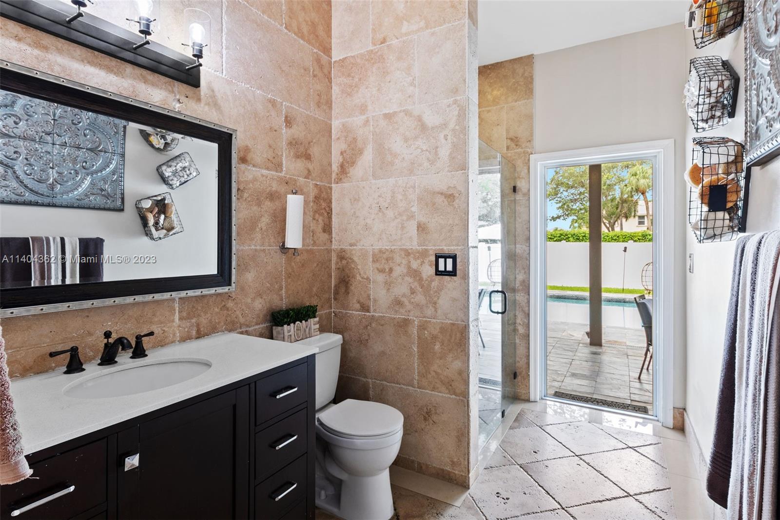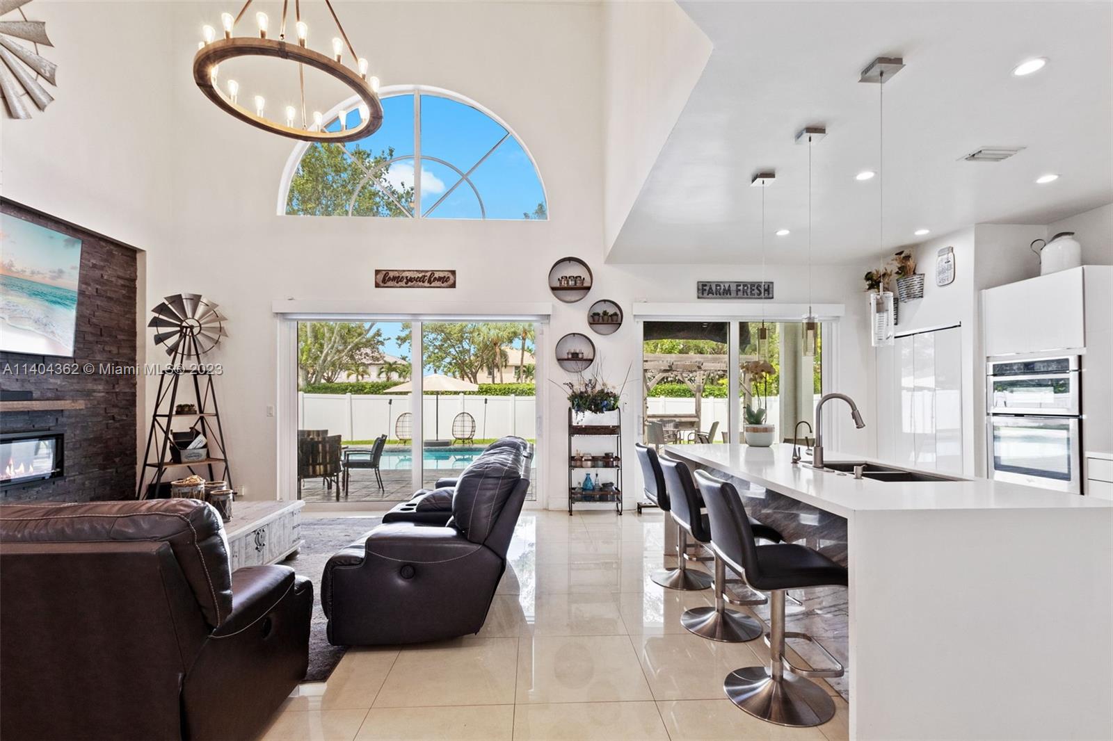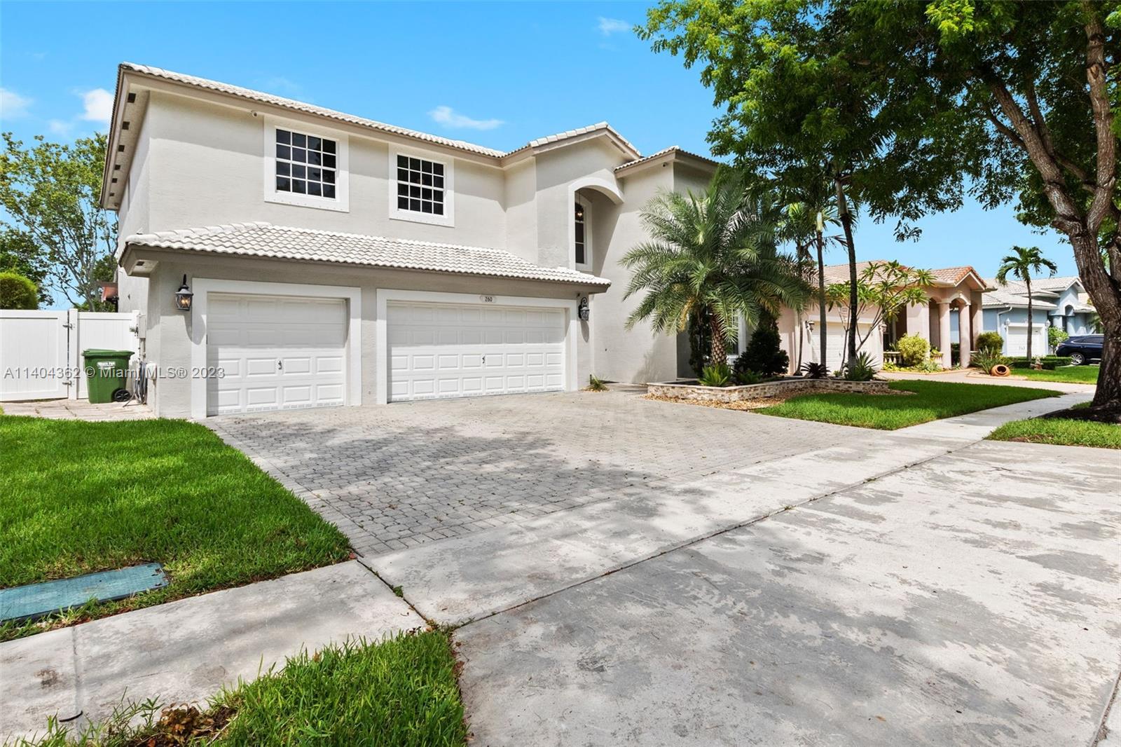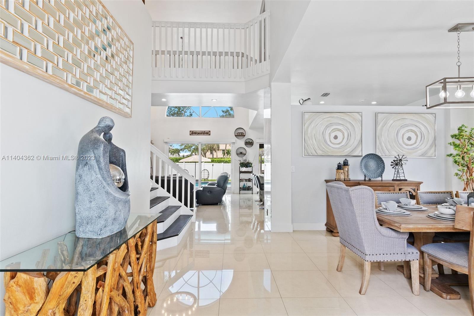 Spectacular 2 story home in Exclusive, Gated Pembroke Shores community. It features 5 bedrooms, 3 updated bathrooms, updated kitchen and beautiful ceramic tiles and wood floors. Up the elegant stairs boost 4 bedrooms, 2 Bathrooms and cosy, relaxing patio off Master Bedroom. There are built in closets and updated Master Bathroom with separate shower and tub. Downstairs shows off its ceramic floors throughout; a full Bedroom, a full cabana bathroom and Laundry Room. Then there are the formal living and dining rooms; the modern, white, updated kitchen that opens up to the family room with the view of the pool and the spacious backyard with the extended, covered patio for entertaining. The home is elegantly finished with stylish Chandeliers and spot lighting.
