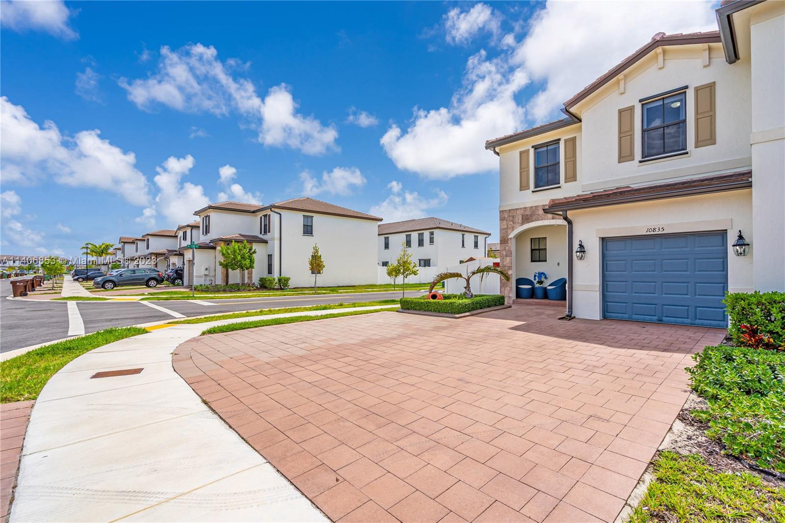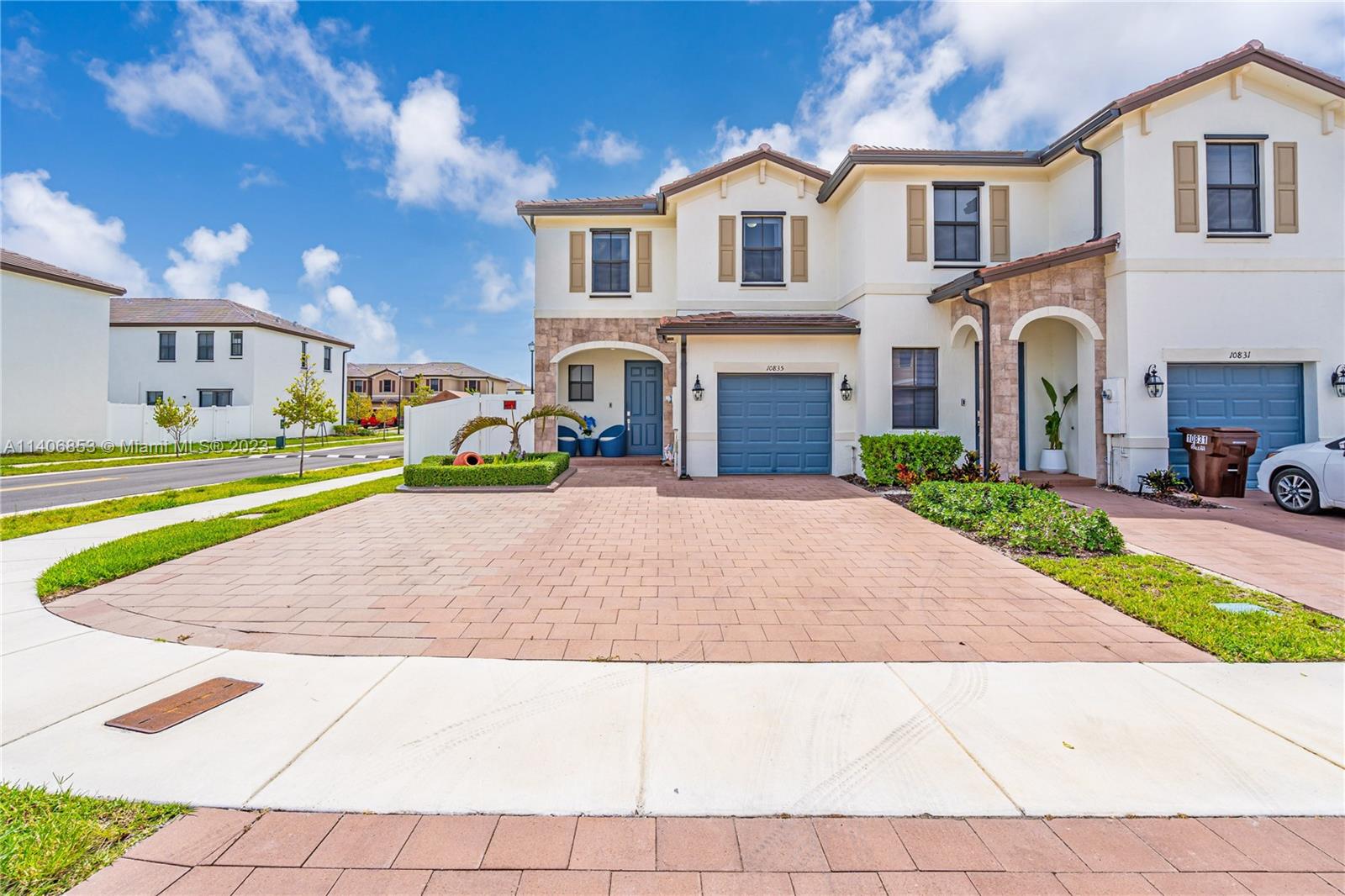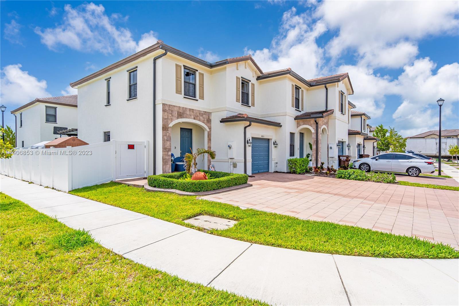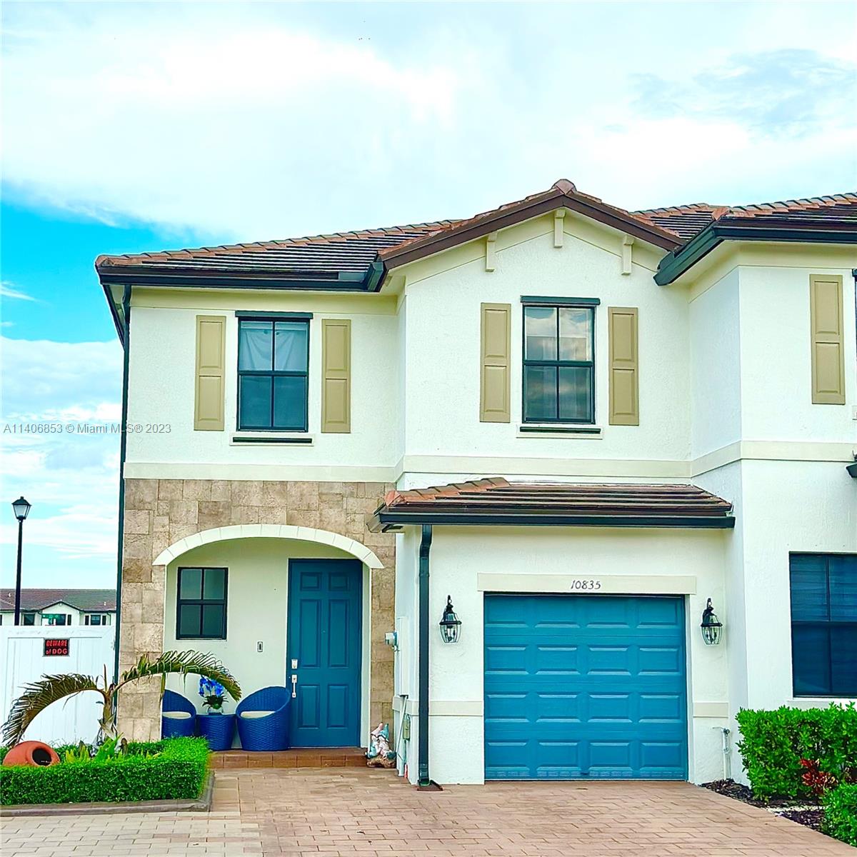 Welcome to this stunning Corner Home located in the vibrant city of Hialeah Gardens designed to cater to families at any stage of life. Step inside and be greeted by a seamlessly flowing first floor that combines an open dining room, modern kitchen, comfortable family room. The sliding glass doors open up to a delightful patio adorned with a modern aluminum Pergola set up for entertaining guests. On the second floor, you'll find three well-appointed bedrooms, including a luxurious suite with a coffered ceiling. Enjoy the peace of mind provided by this exclusive Luxury Community of Aquabella: Two resort style clubhouses,24/7 security, ample parking for visitor, children’s and pet parks and more. Take a dip in the pool, work out at the gym, or let your children have a blast on the slides.