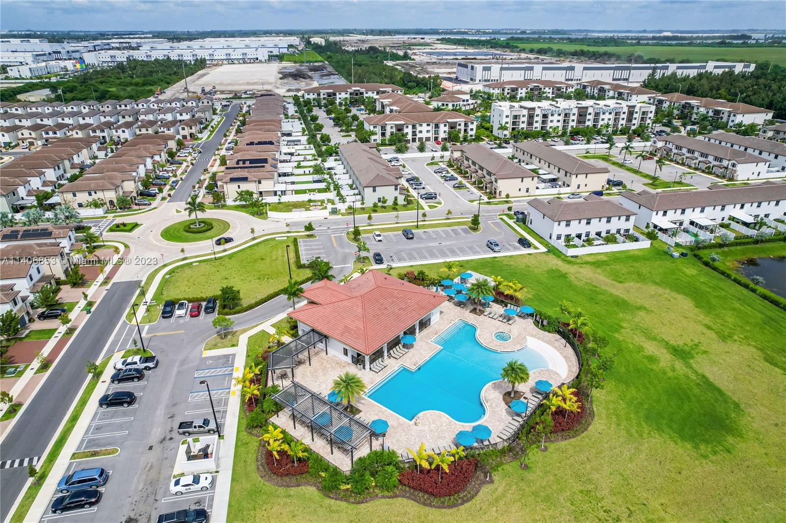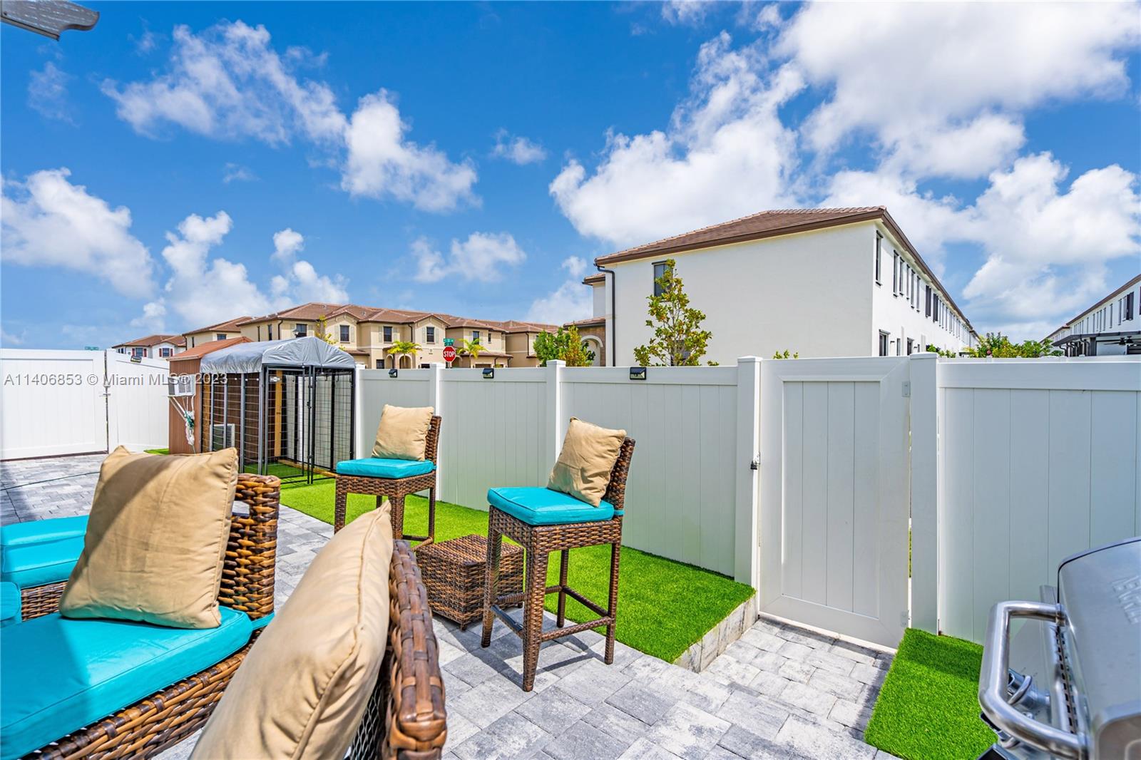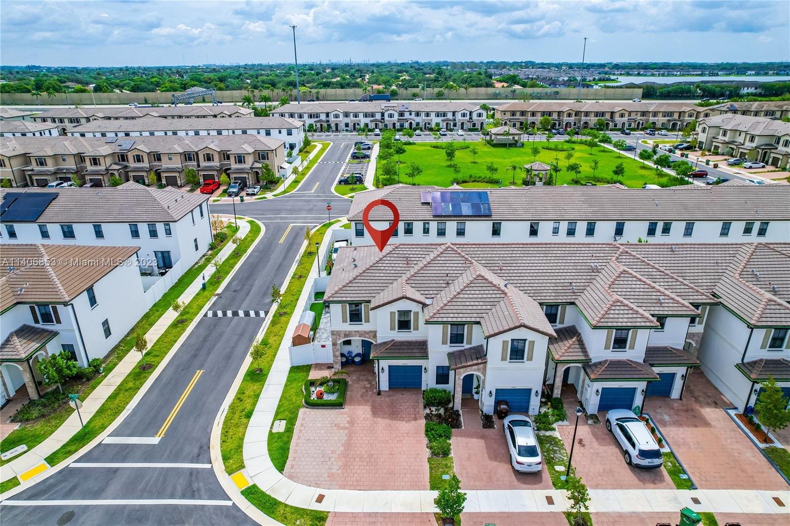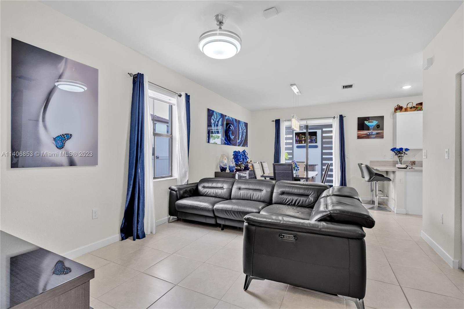 Welcome to this stunning Corner Home located in the vibrant city of Hialeah Gardens designed to cater to families at any stage of life. Step inside and be greeted by a seamlessly flowing first floor that combines an open dining room, modern kitchen, comfortable family room. The sliding glass doors open up to a delightful patio adorned with a modern aluminum Pergola set up for entertaining guests. On the second floor, you'll find three well-appointed bedrooms, including a luxurious suite with a coffered ceiling. Enjoy the peace of mind provided by this exclusive Luxury Community of Aquabella: Two resort style clubhouses,24/7 security, ample parking for visitor, children’s and pet parks and more. Take a dip in the pool, work out at the gym, or let your children have a blast on the slides.