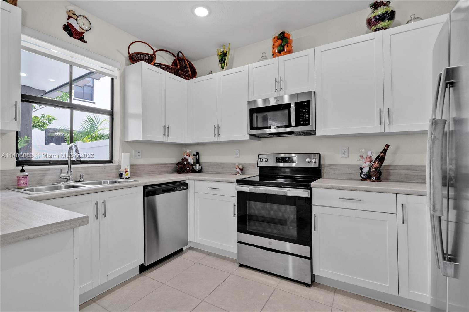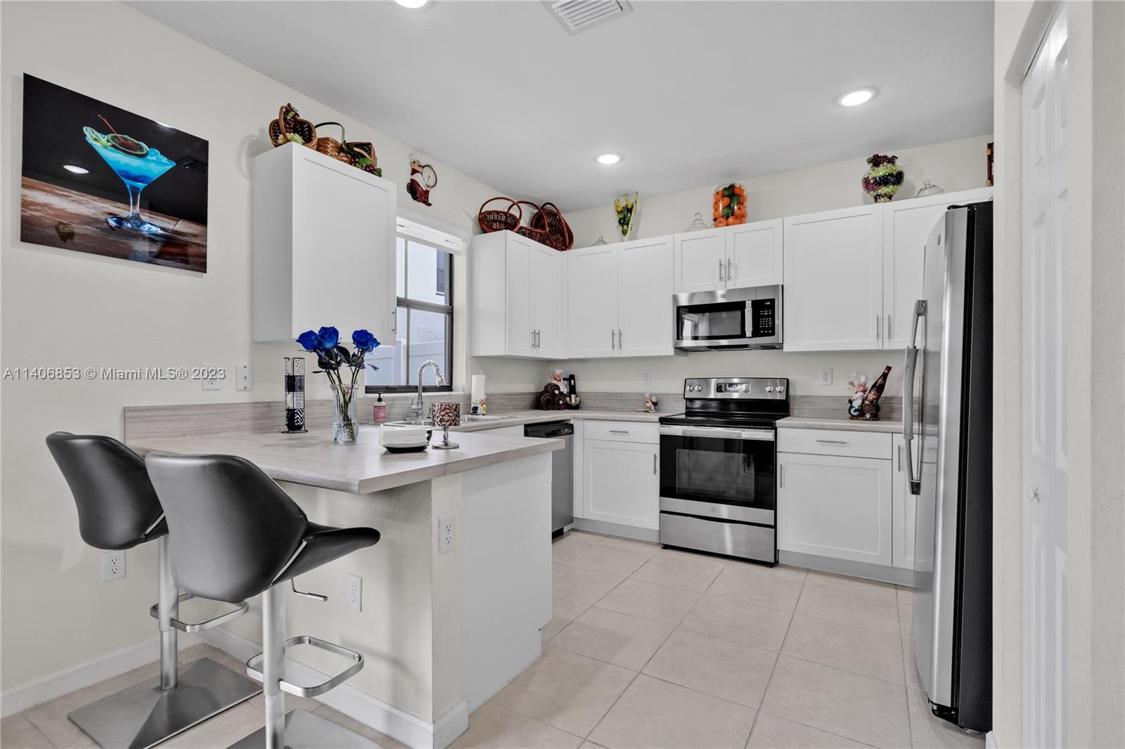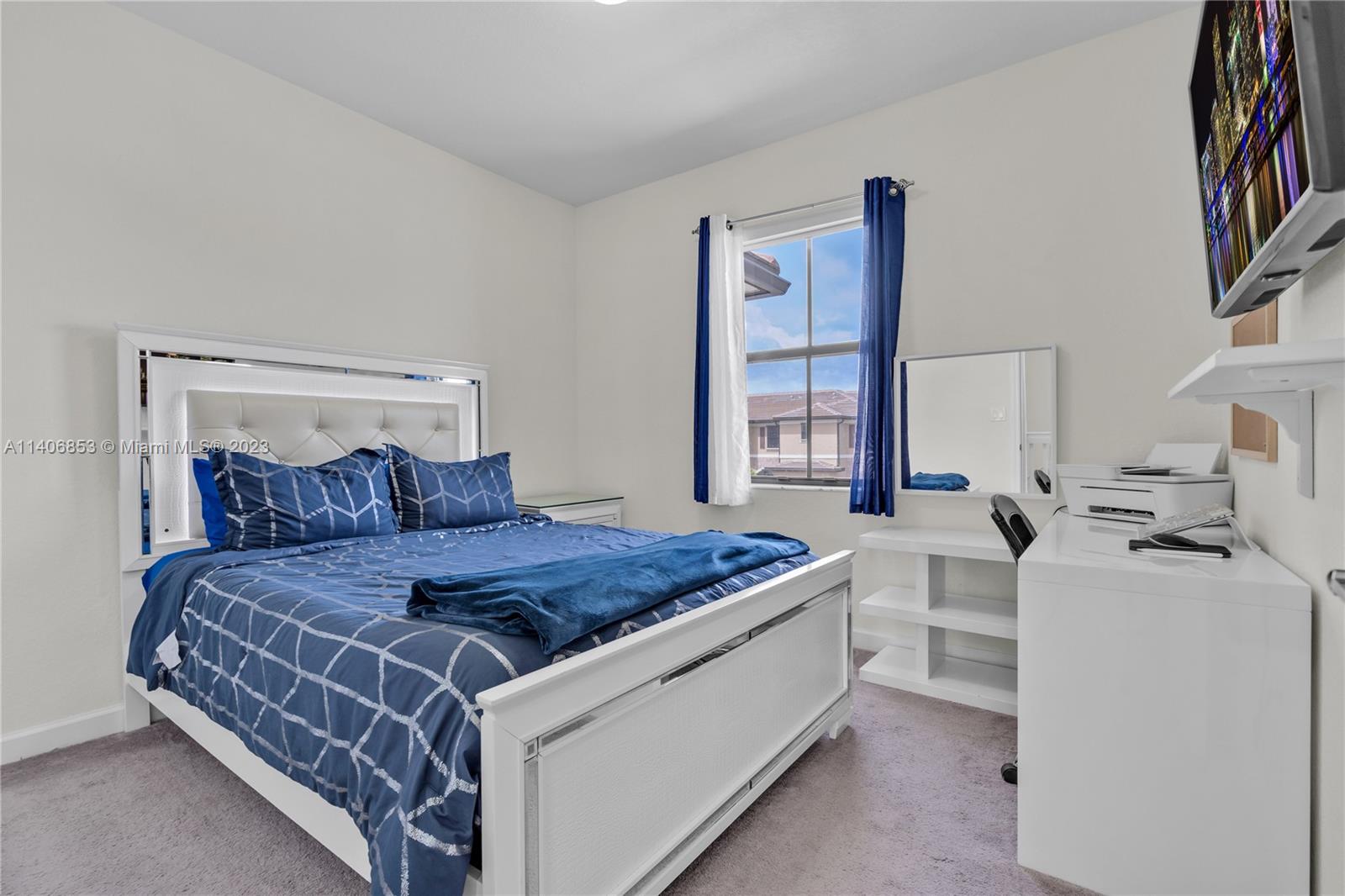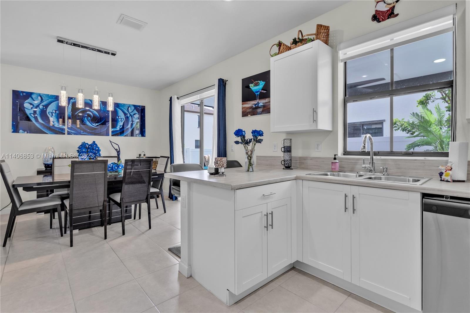 Welcome to this stunning Corner Home located in the vibrant city of Hialeah Gardens designed to cater to families at any stage of life. Step inside and be greeted by a seamlessly flowing first floor that combines an open dining room, modern kitchen, comfortable family room. The sliding glass doors open up to a delightful patio adorned with a modern aluminum Pergola set up for entertaining guests. On the second floor, you'll find three well-appointed bedrooms, including a luxurious suite with a coffered ceiling. Enjoy the peace of mind provided by this exclusive Luxury Community of Aquabella: Two resort style clubhouses,24/7 security, ample parking for visitor, children’s and pet parks and more. Take a dip in the pool, work out at the gym, or let your children have a blast on the slides.