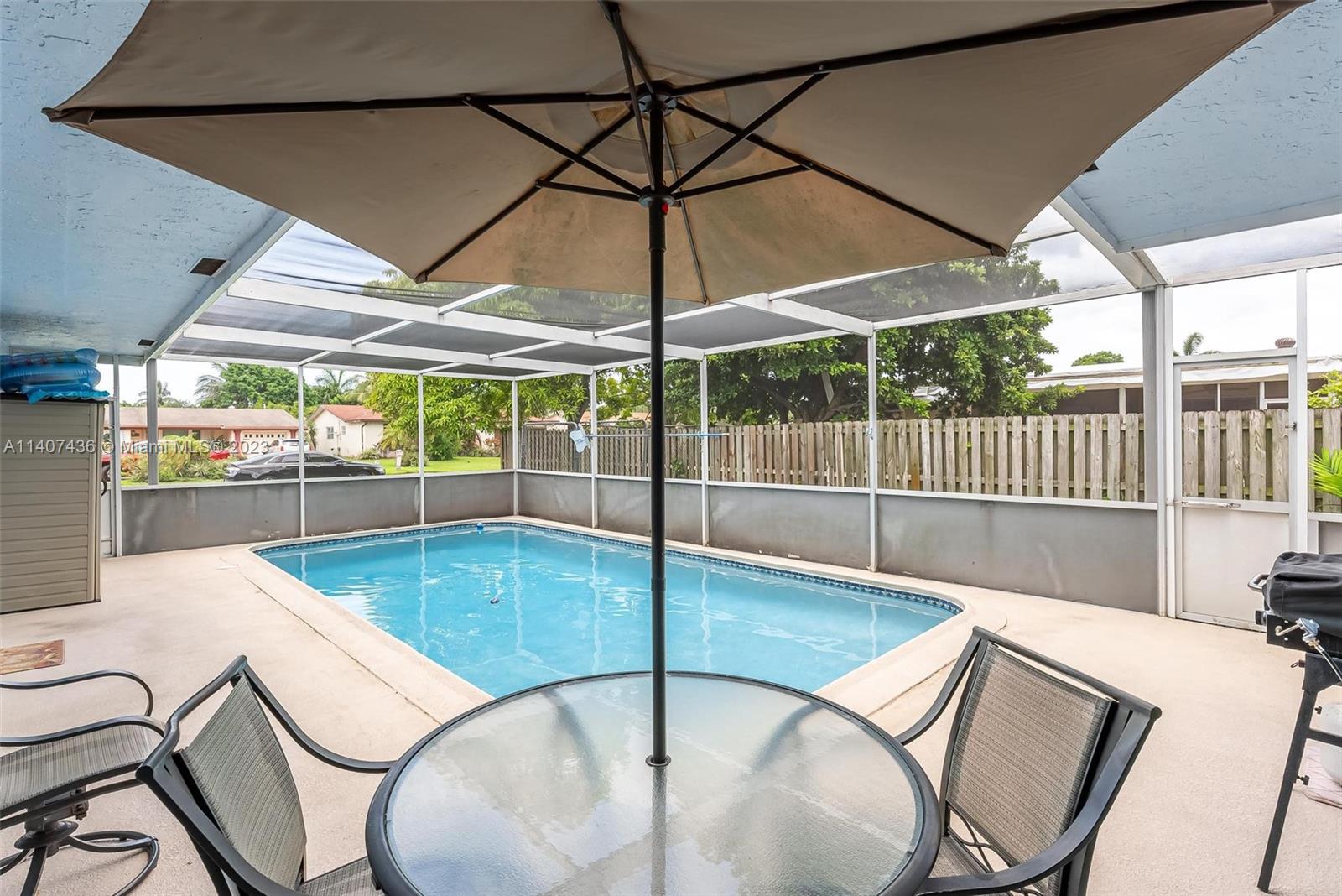 This terrific home has it all!! Three bedrooms, two baths, screened pool/patio, garage, and a large utility shed! Great kitchen with lots of cabinets, new quartz counter tops, gas stove, eat in kitchen, pass through to the pool area, and a family room! Split bedroom plan. Cabana bathroom and French door from dining room and family room to the pool. Fenced back yard. Electrical hookup on side of house for recreational vehicles. The home sits on an oversized corner lot with fruit trees. The owners have taken great care of the property...and it shows! Conveniently located close to lots of shops and restaurants.