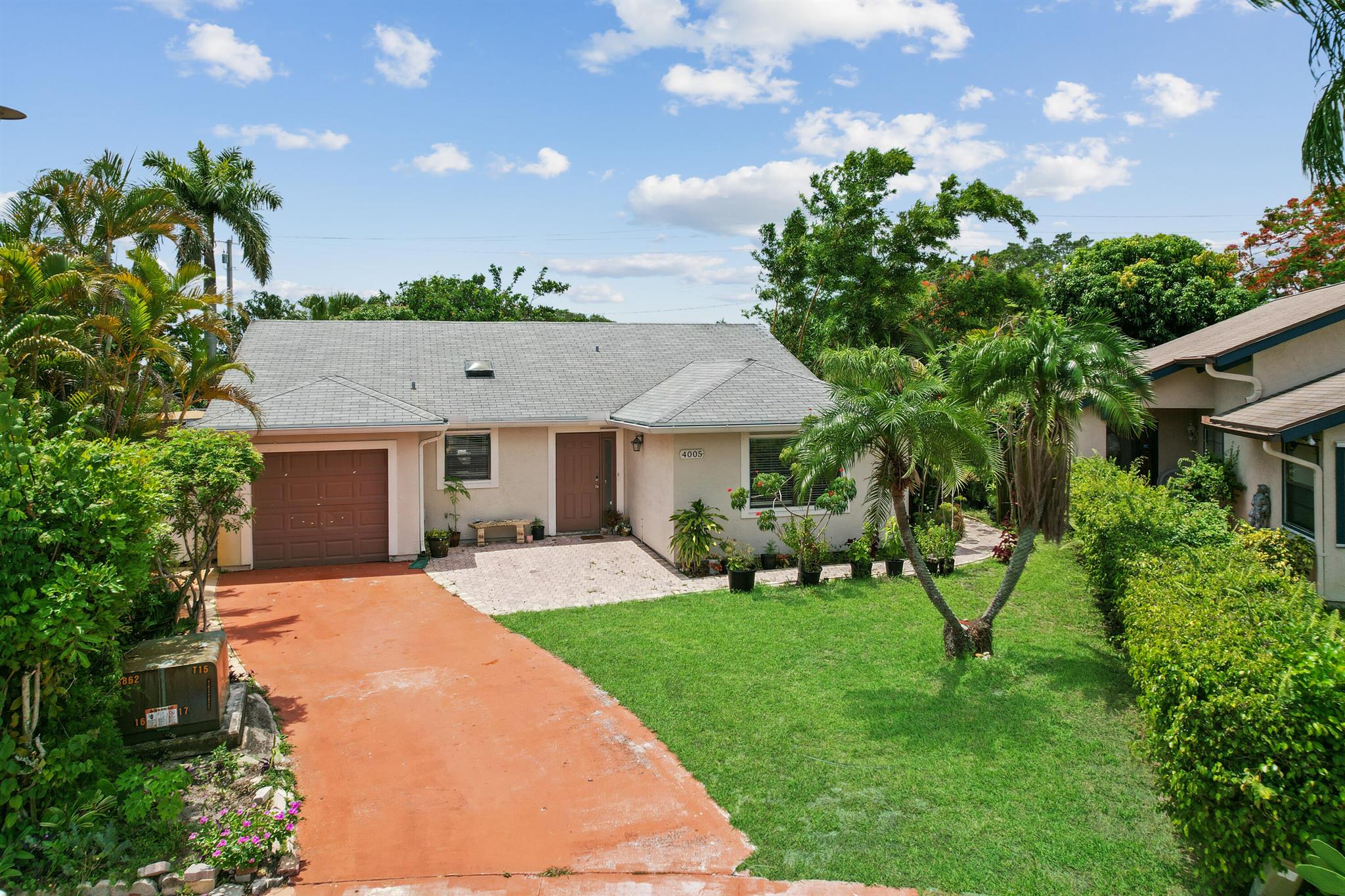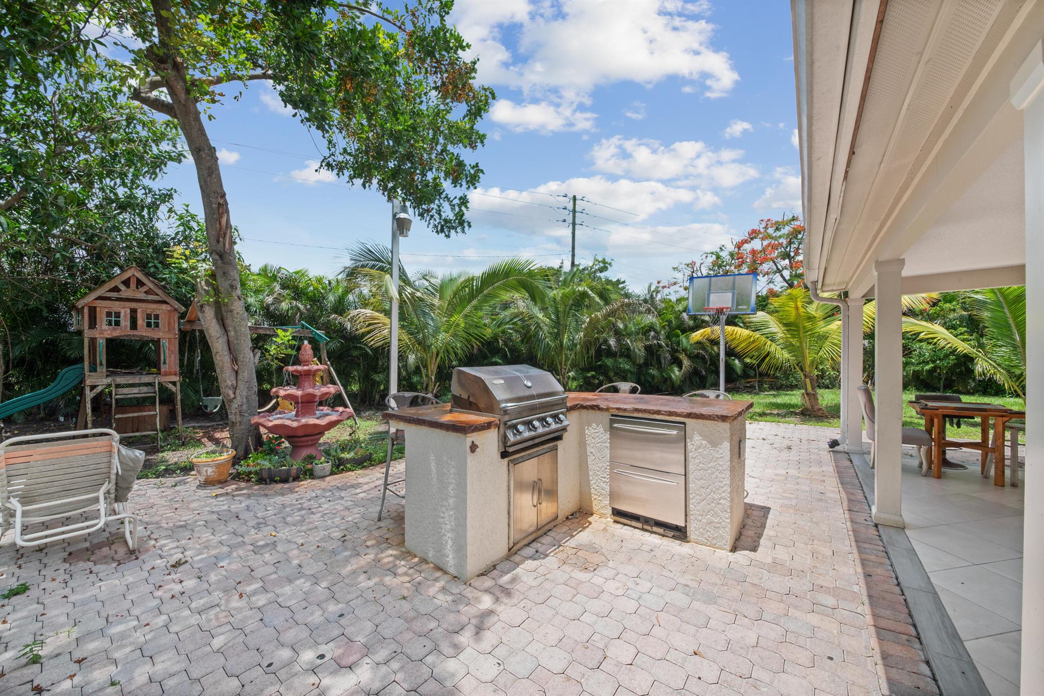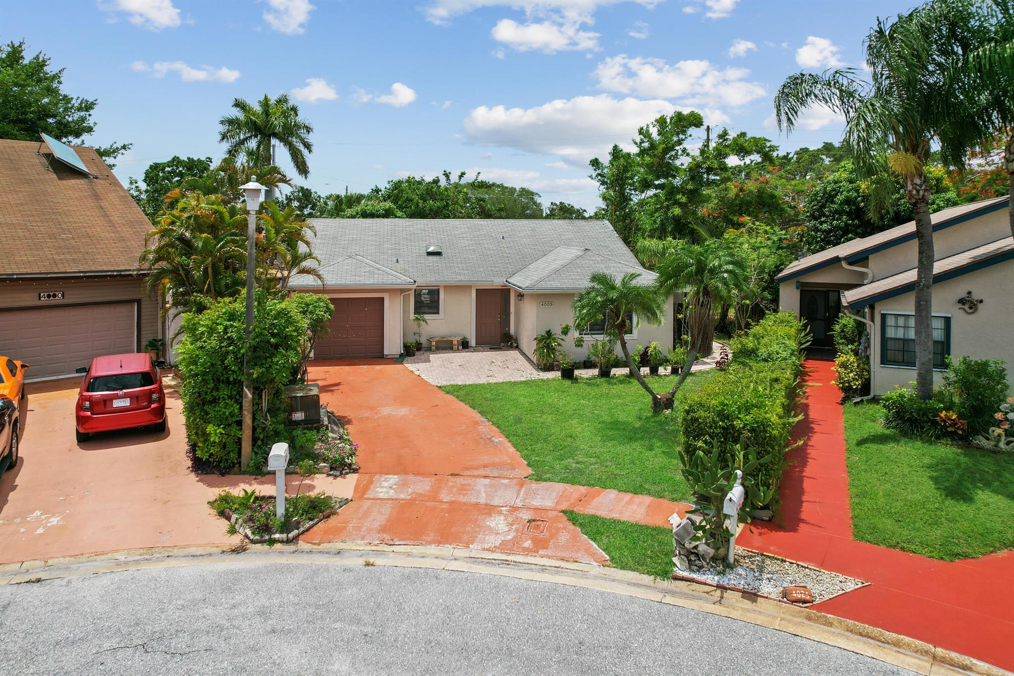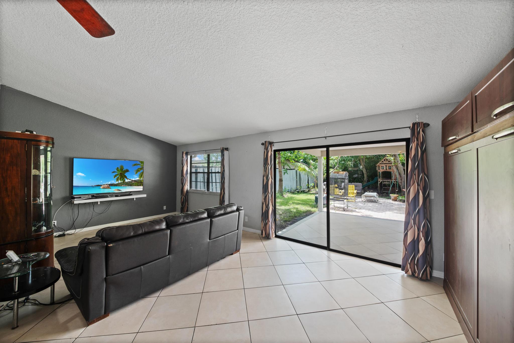 Single family home in Palm Beach County with a large private backyard, great for fun, entertaining & relaxing, 3 bedrooms 2 baths, split bedrooms & custom closets & storage, granite countertops, high ceilings, garage, hurricane shutters, fruit trees, cul-de-sac, pavers, tile flooring, attic, shed, barbecue & exterior fridge. Clubhouse has gym & pool, located near an elementary and middle schools, restaurants & shopping. All measurements are estimated.