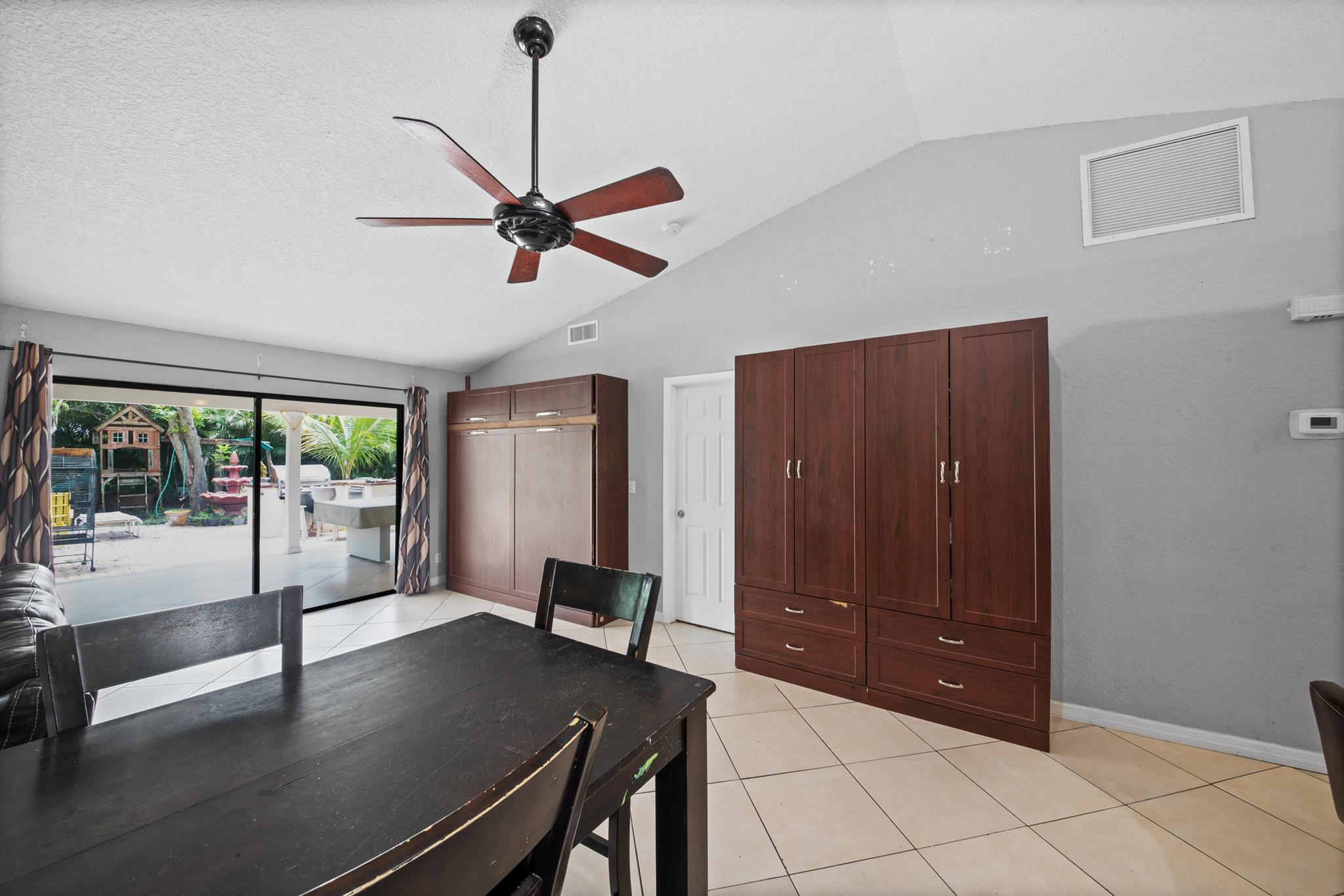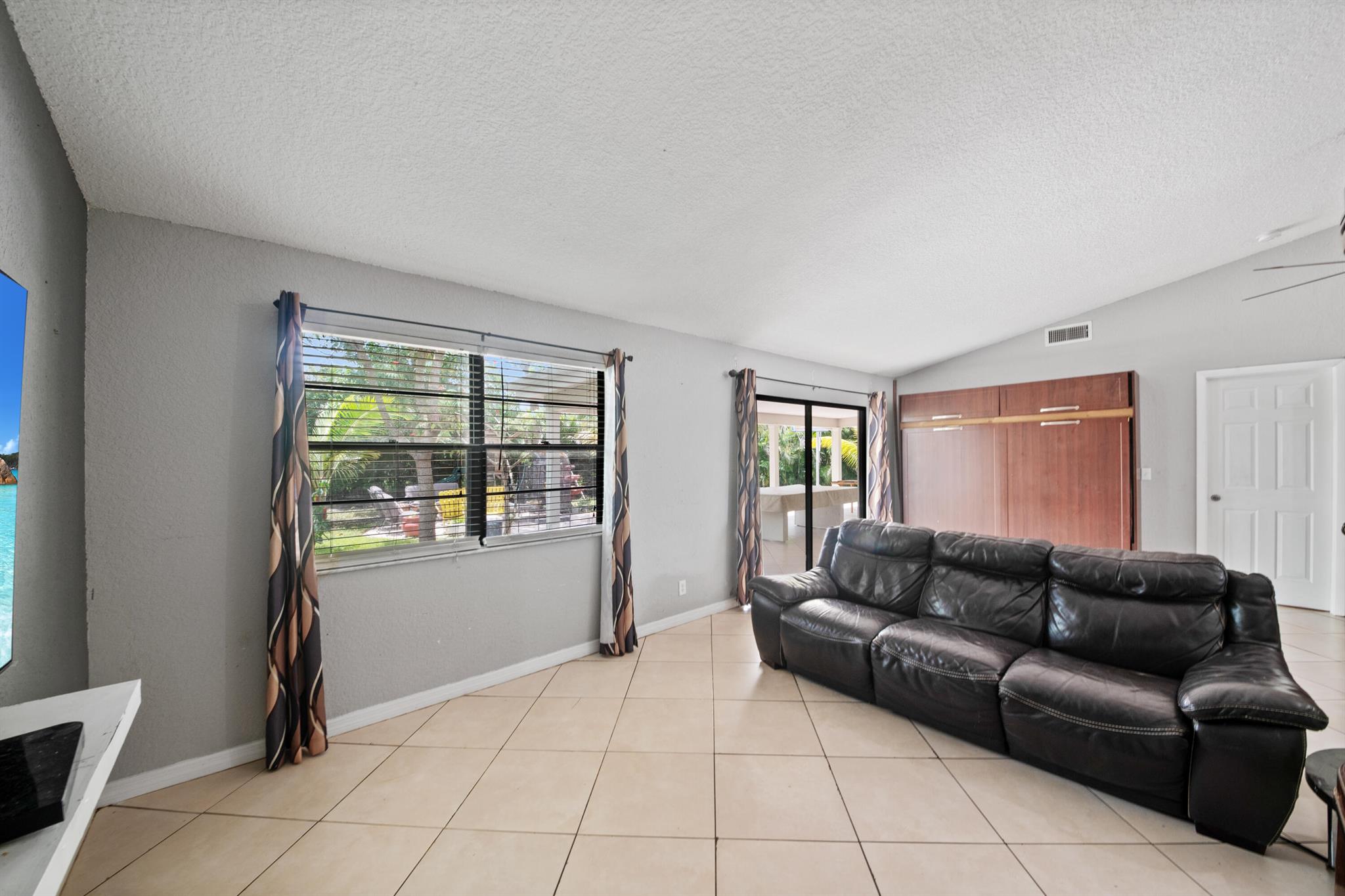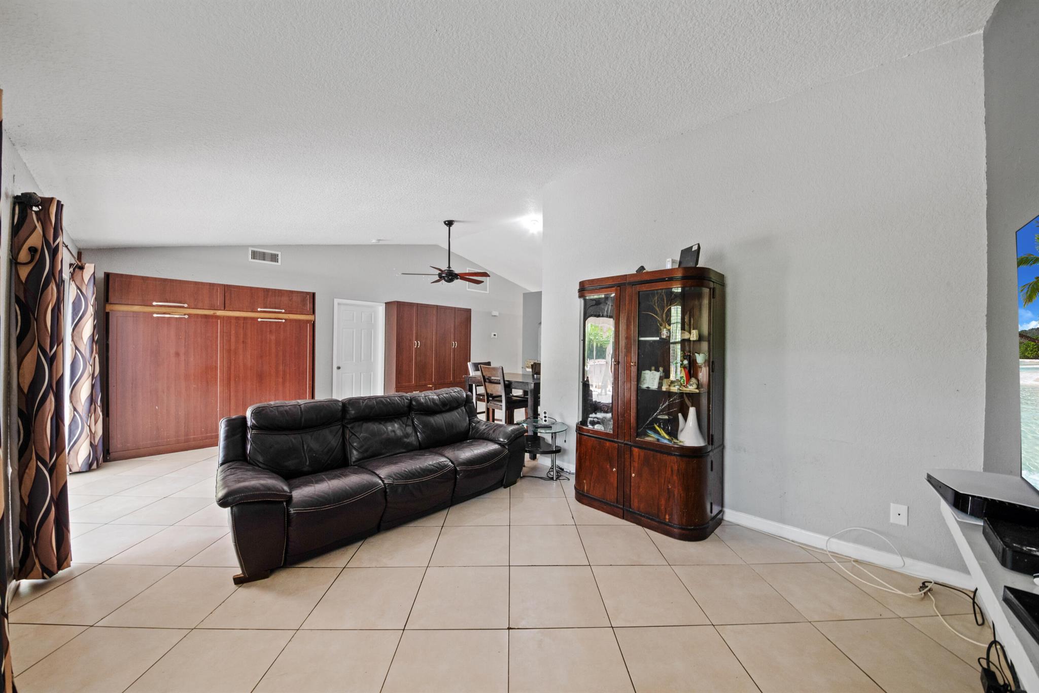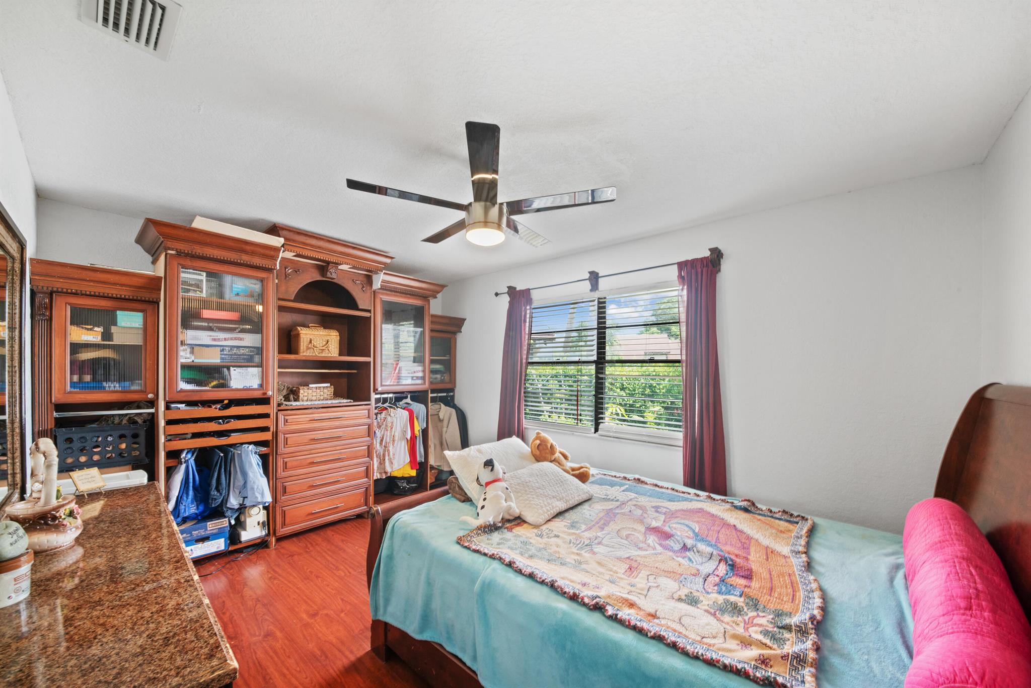 Single family home in Palm Beach County with a large private backyard, great for fun, entertaining & relaxing, 3 bedrooms 2 baths, split bedrooms & custom closets & storage, granite countertops, high ceilings, garage, hurricane shutters, fruit trees, cul-de-sac, pavers, tile flooring, attic, shed, barbecue & exterior fridge. Clubhouse has gym & pool, located near an elementary and middle schools, restaurants & shopping. All measurements are estimated.